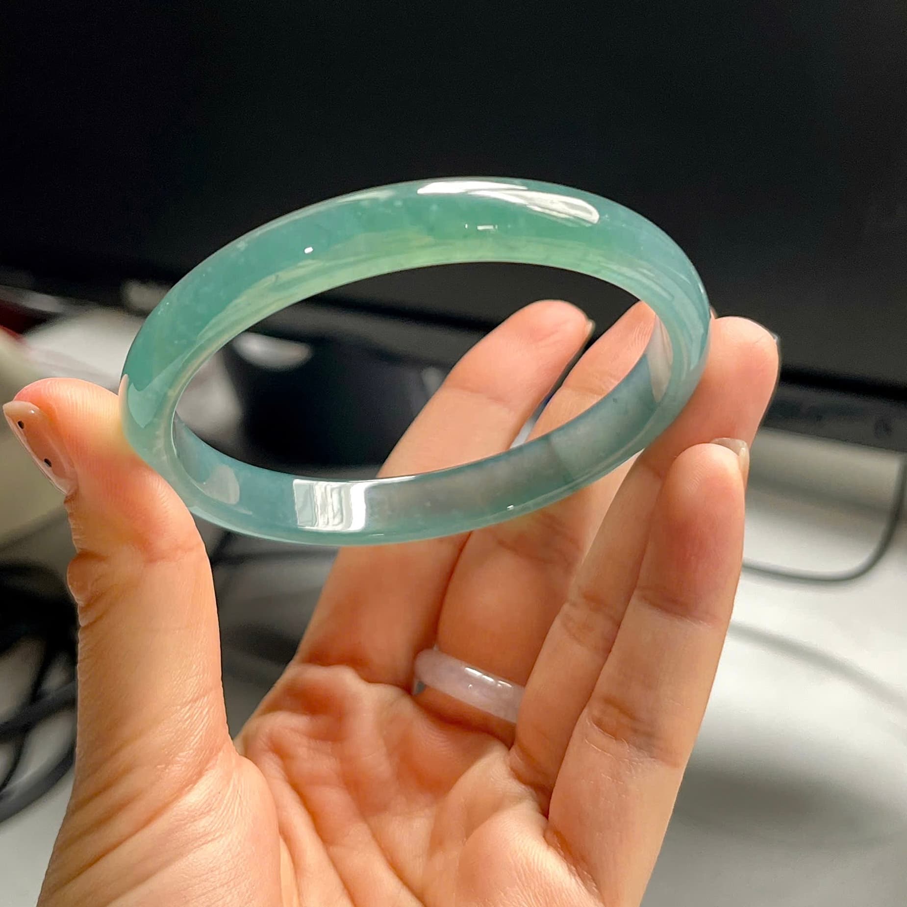(Guatemala) Sky Blue Jadeite Bangle with Soft Green Hue