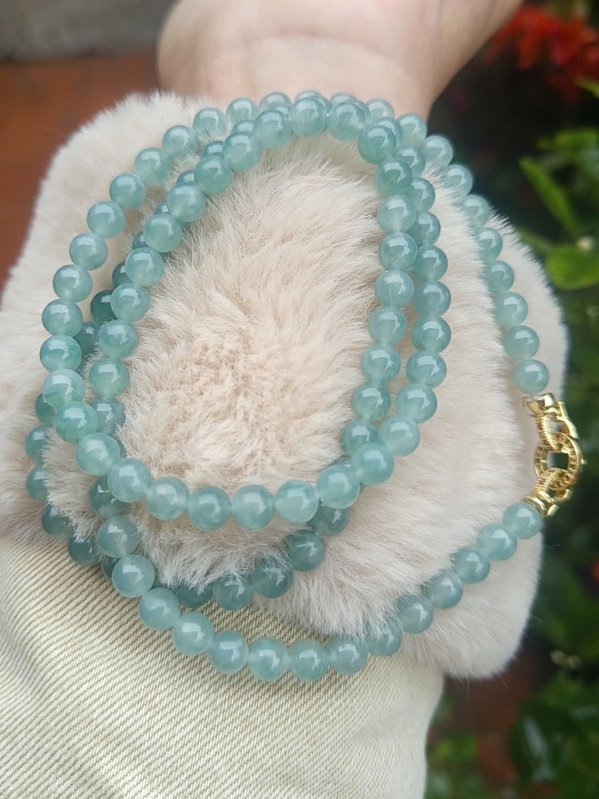 (Myanmar) Celestial Sky-Blue Jadeite Bead Necklace 6.3mm