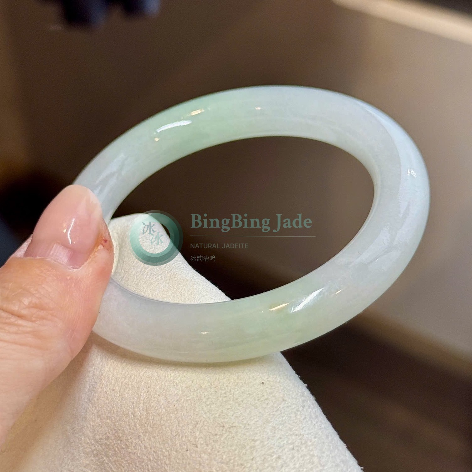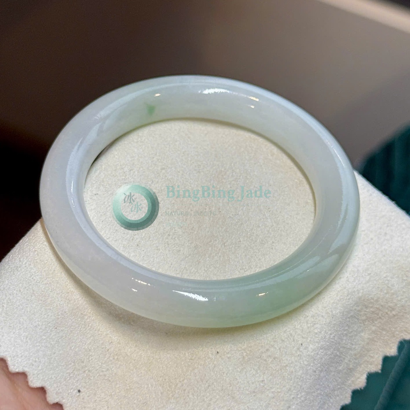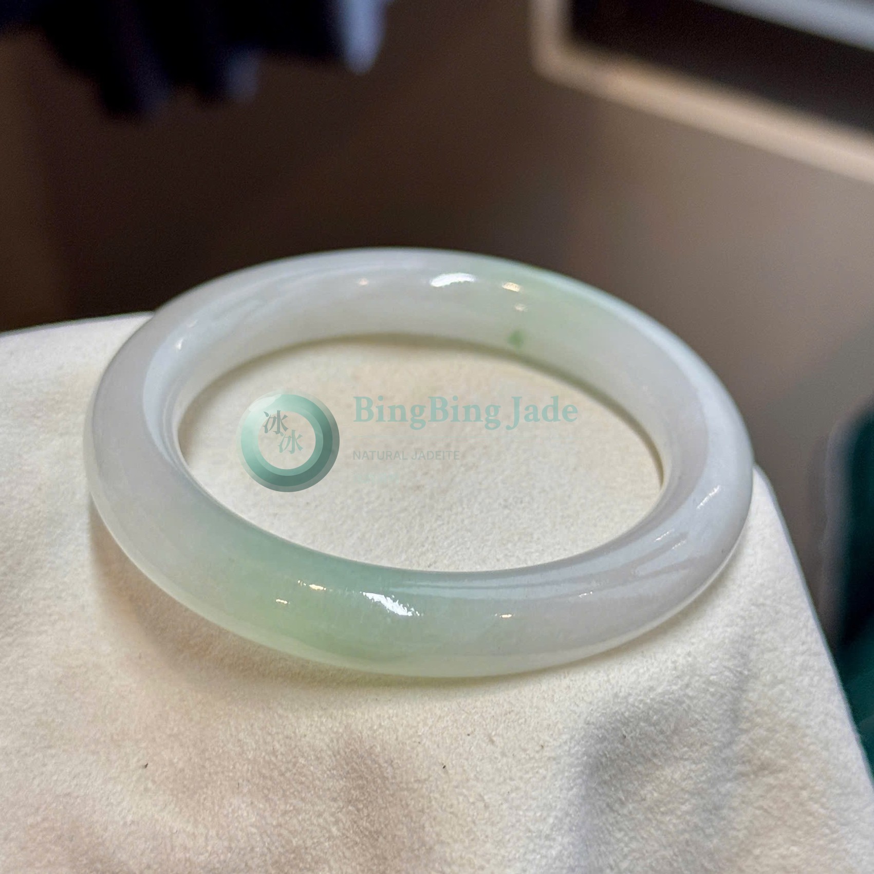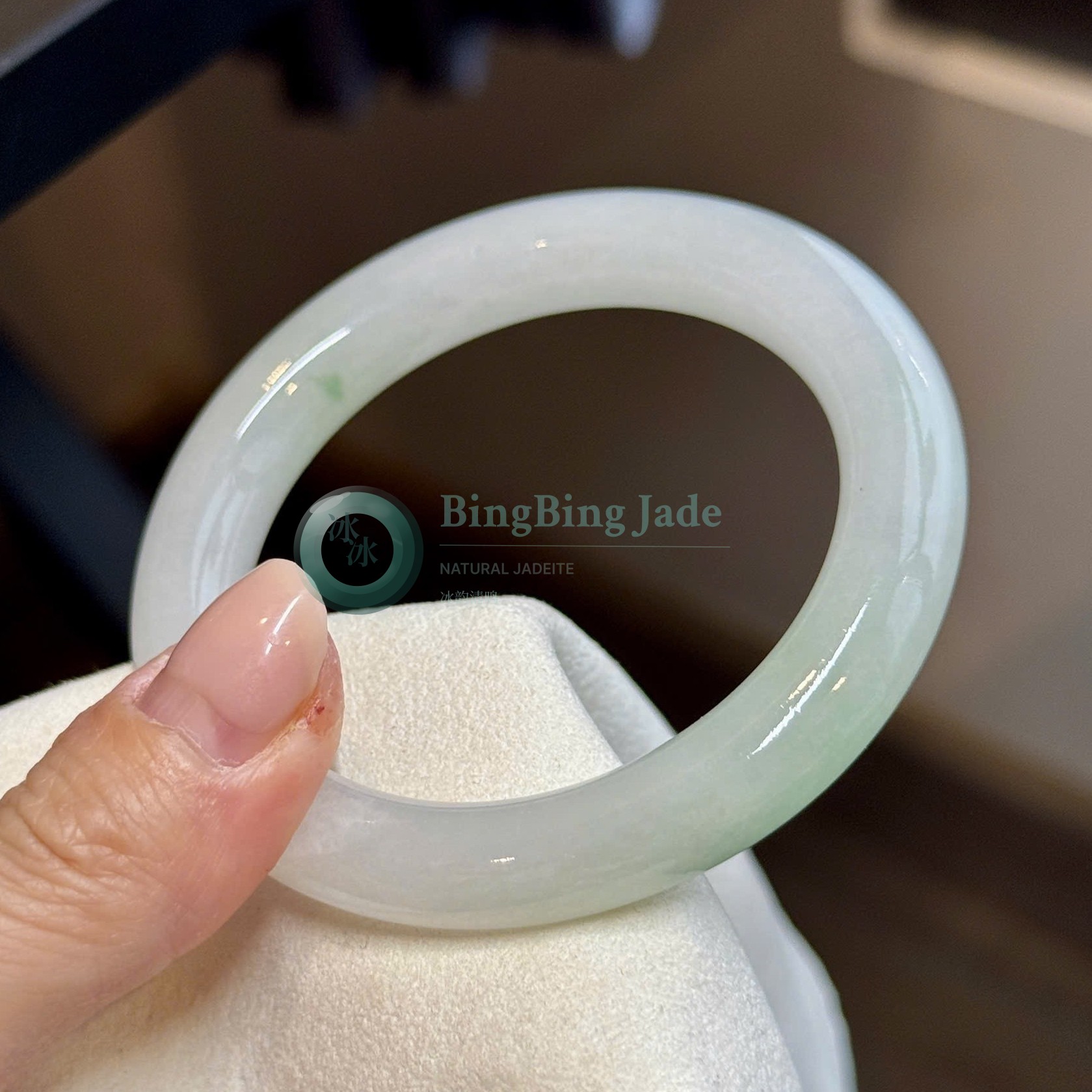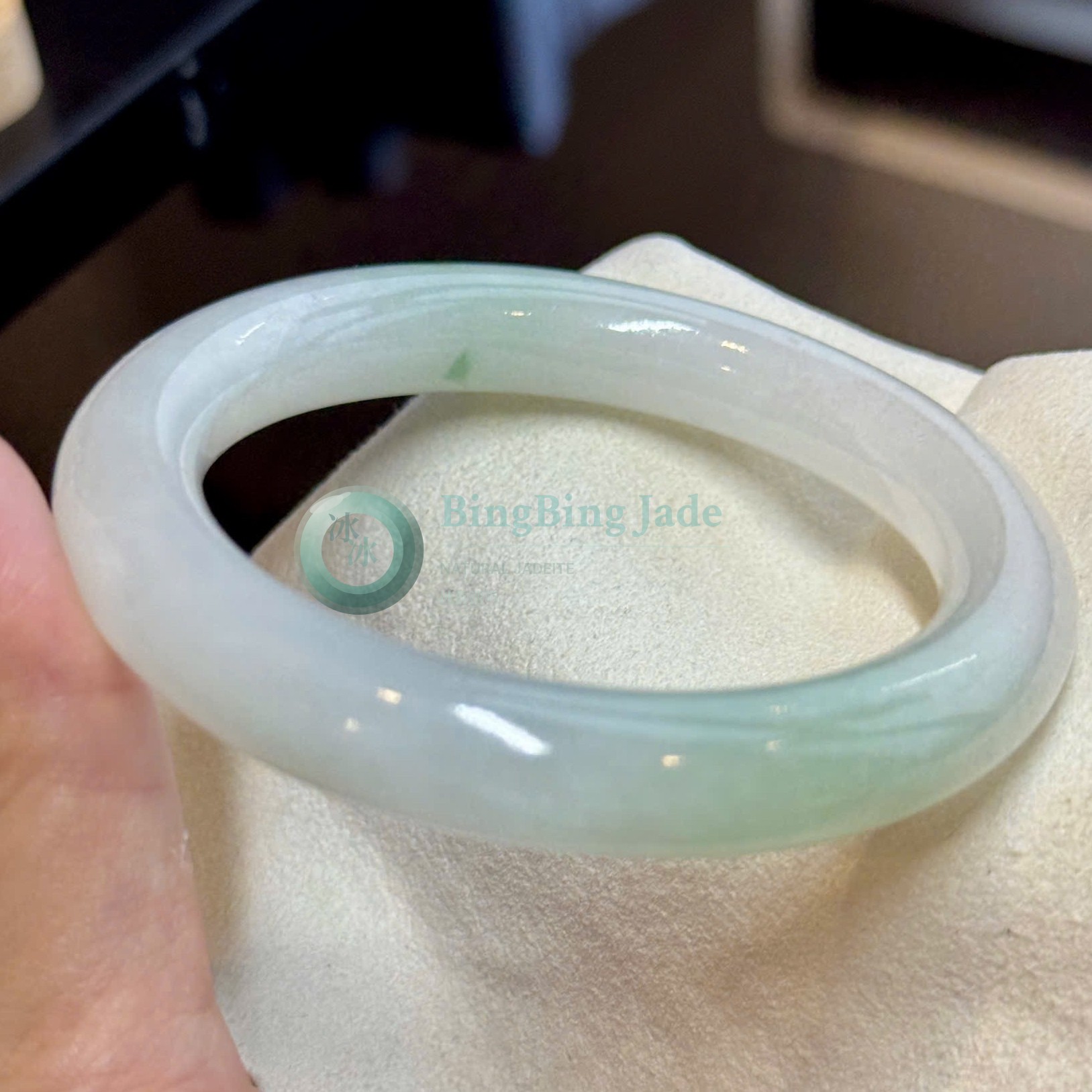 Lavender Mist with Floating Green Kiss — Jadeite Bangle 56.5mm