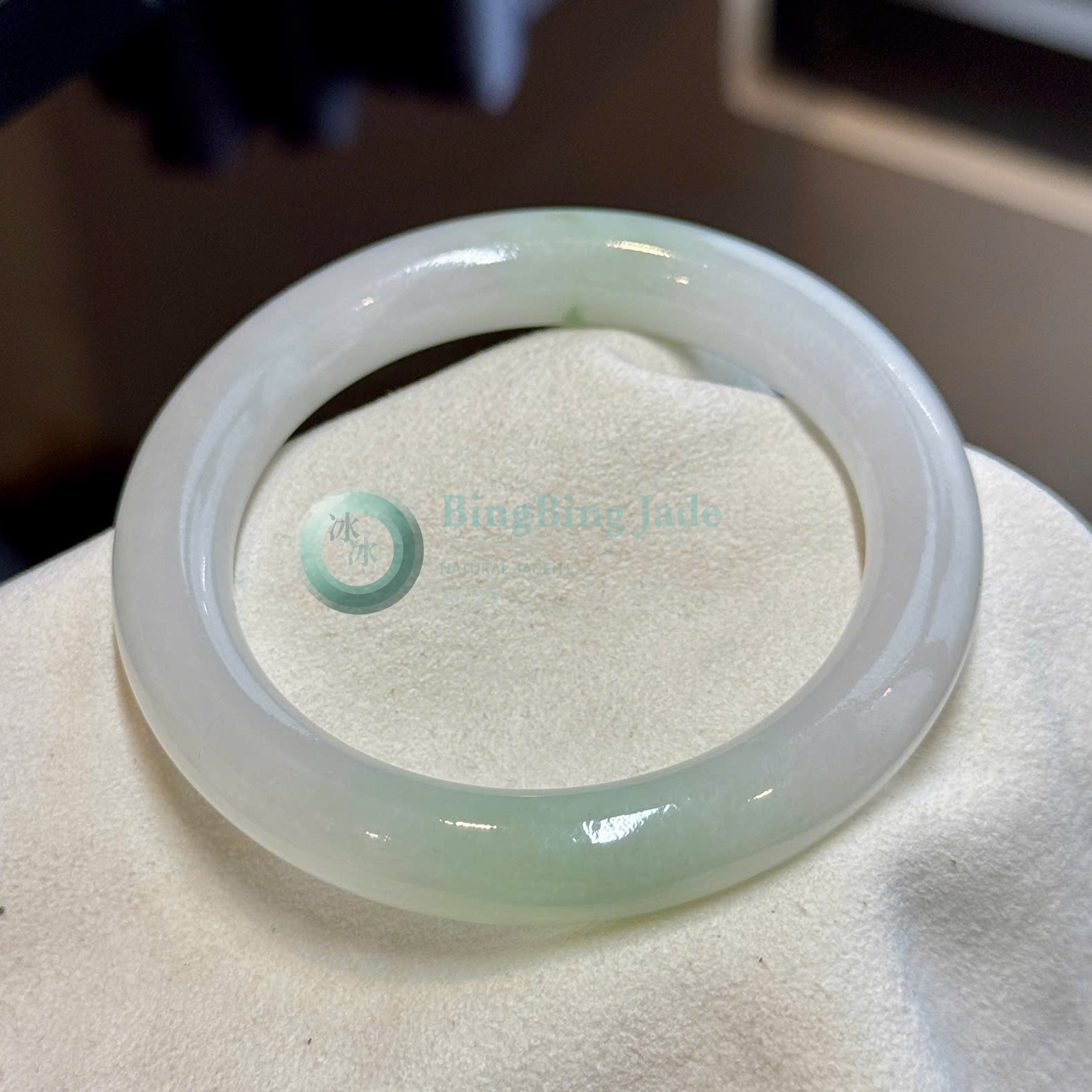 Floating Spring Green Icy Bangle 54mm — Cloud-Washed Emerald on Pristine Glass