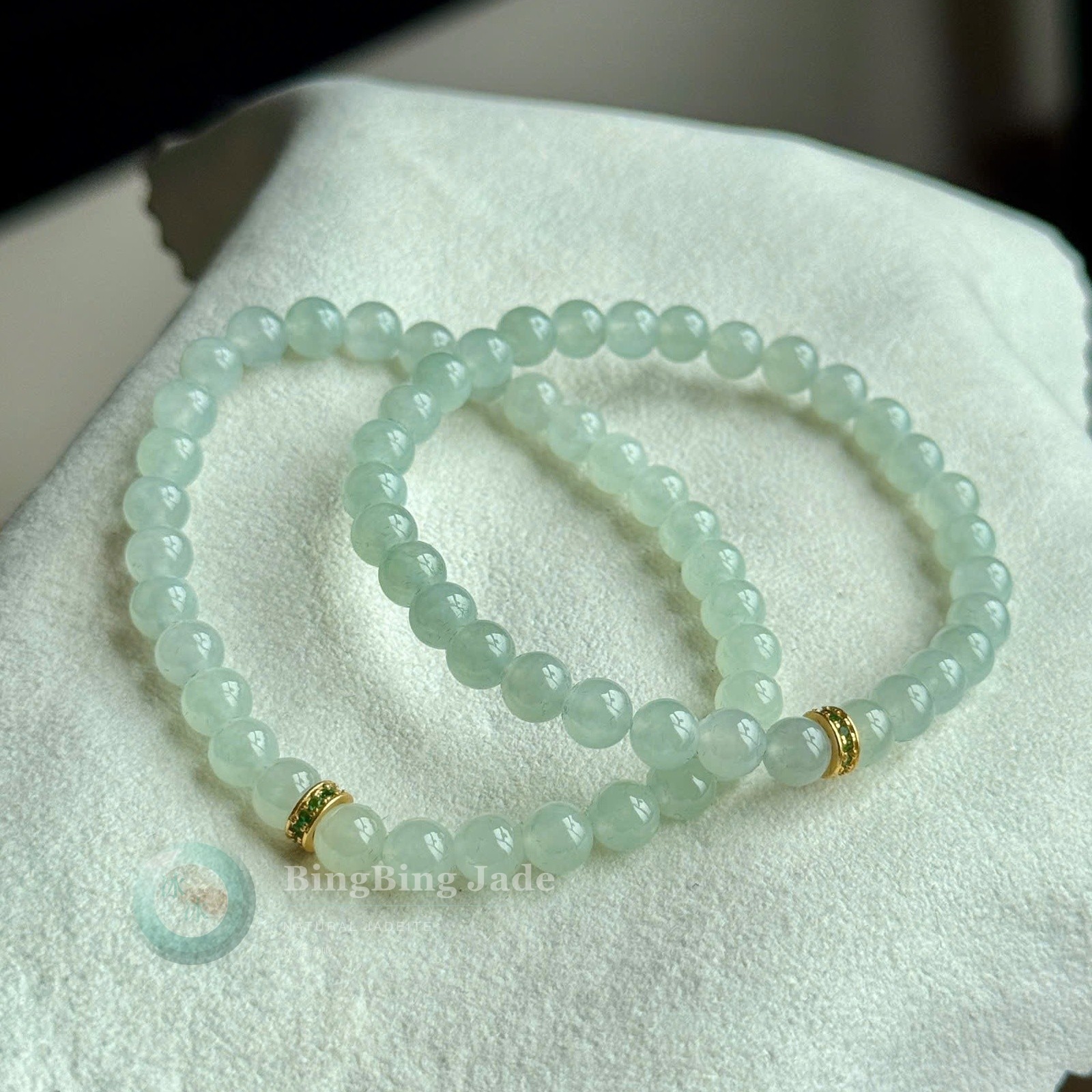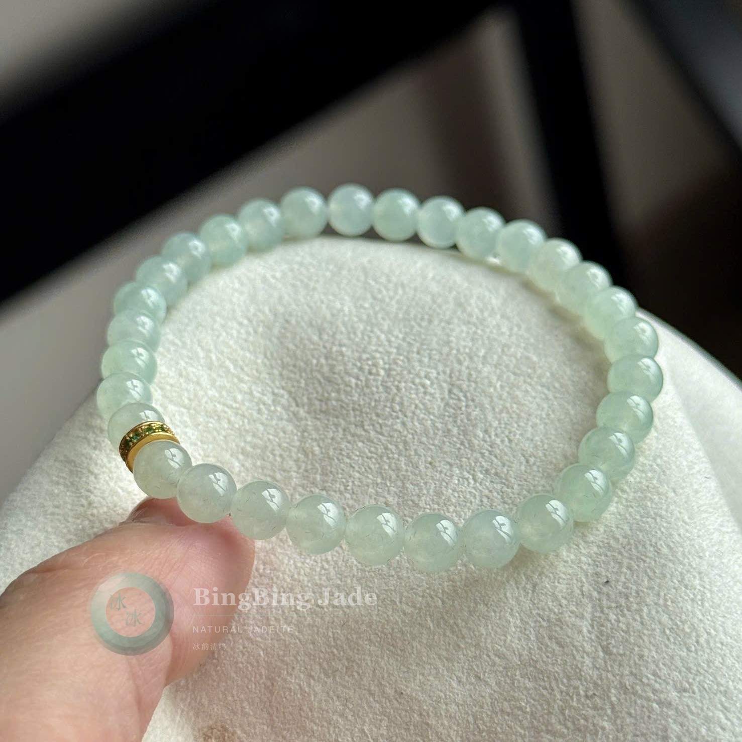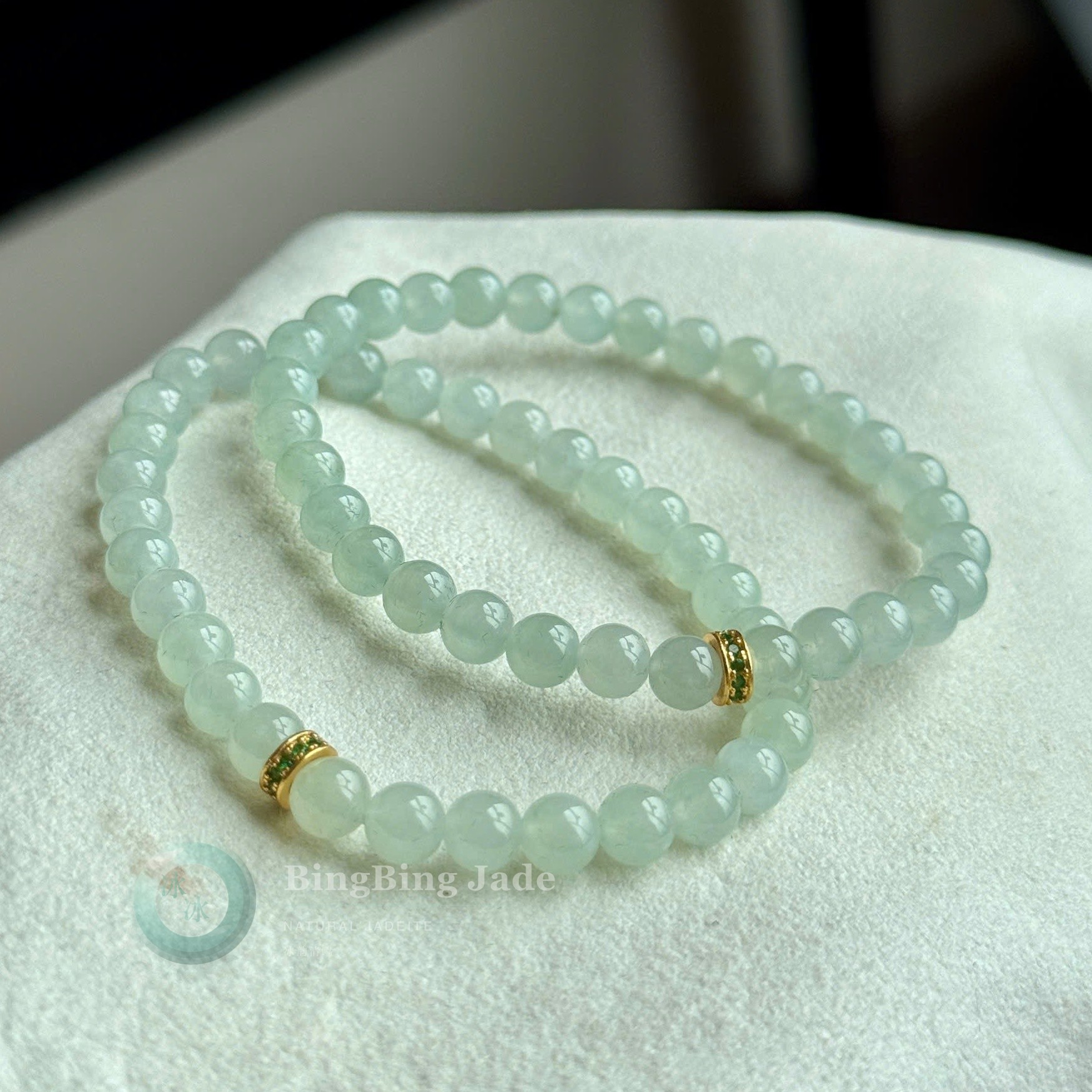 Icy Floating Blossom Jadeite Bead Bracelet 6mm — Moss Veils in Glacial Glass