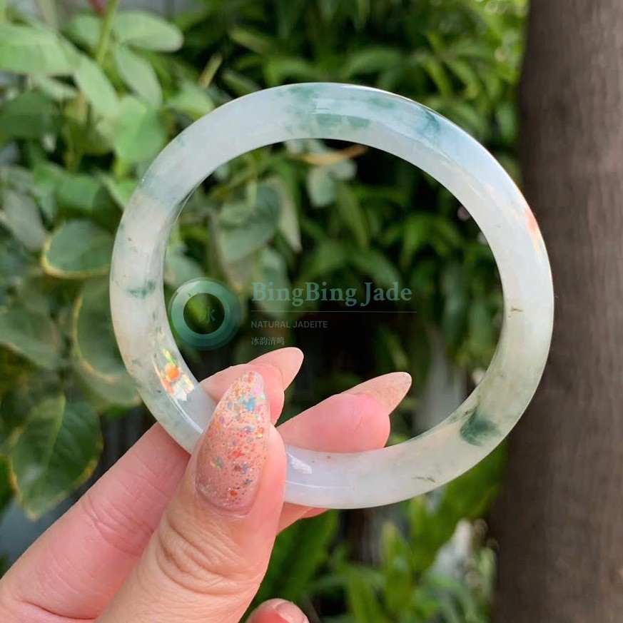 Lavender Mist with Floating Green Kiss — Jadeite Bangle 56.5mm