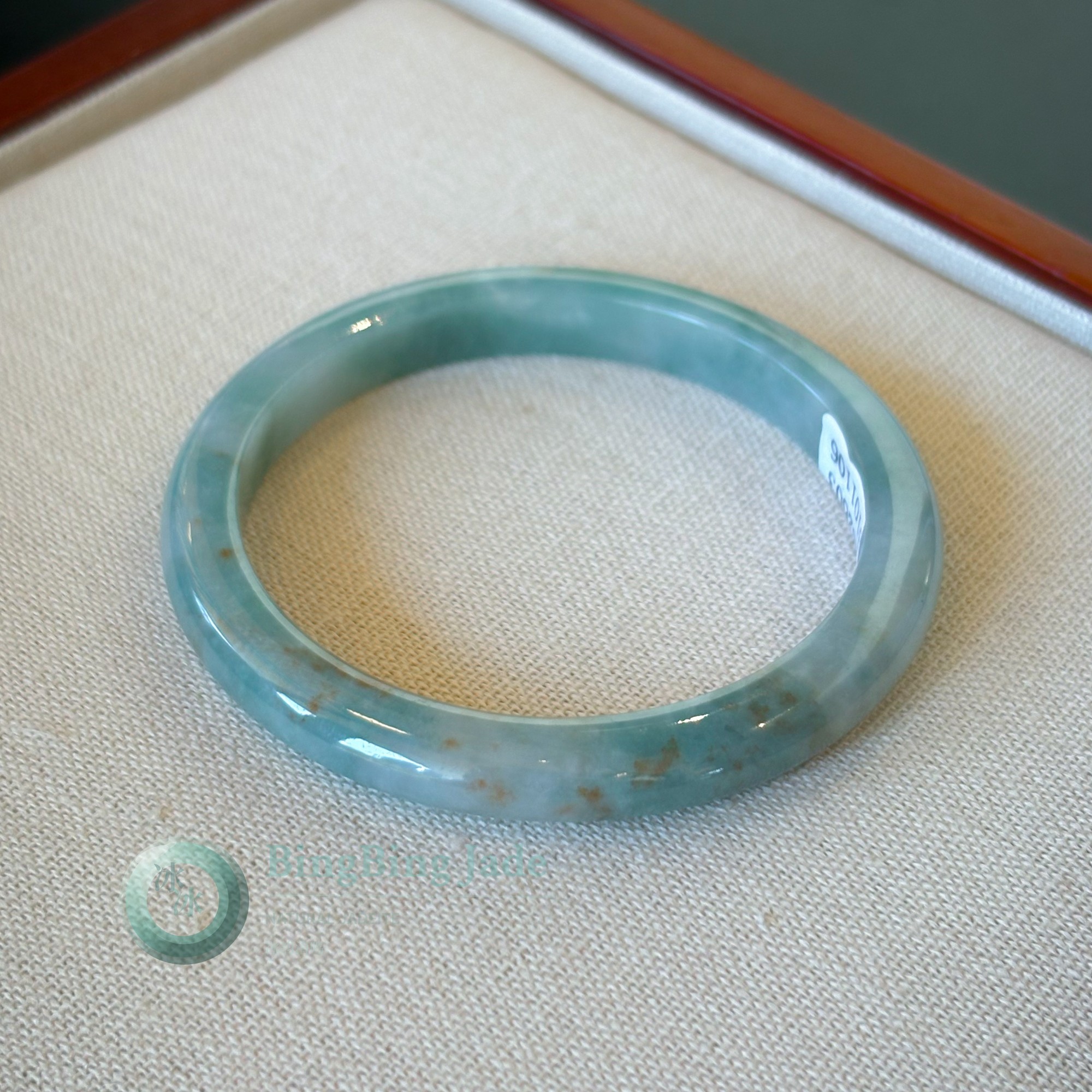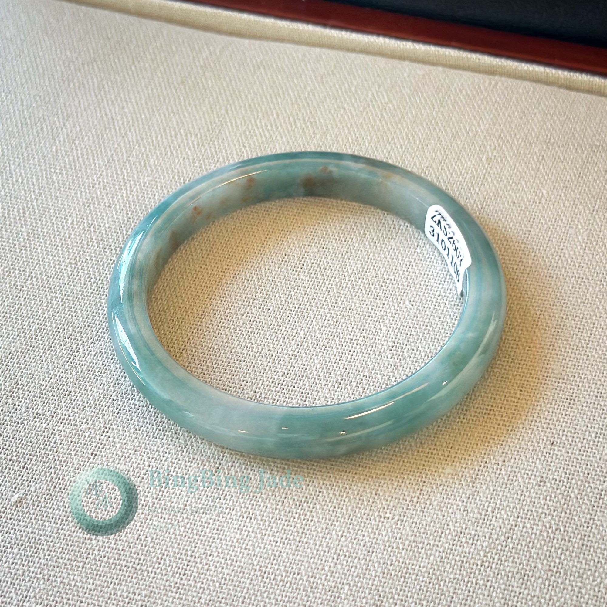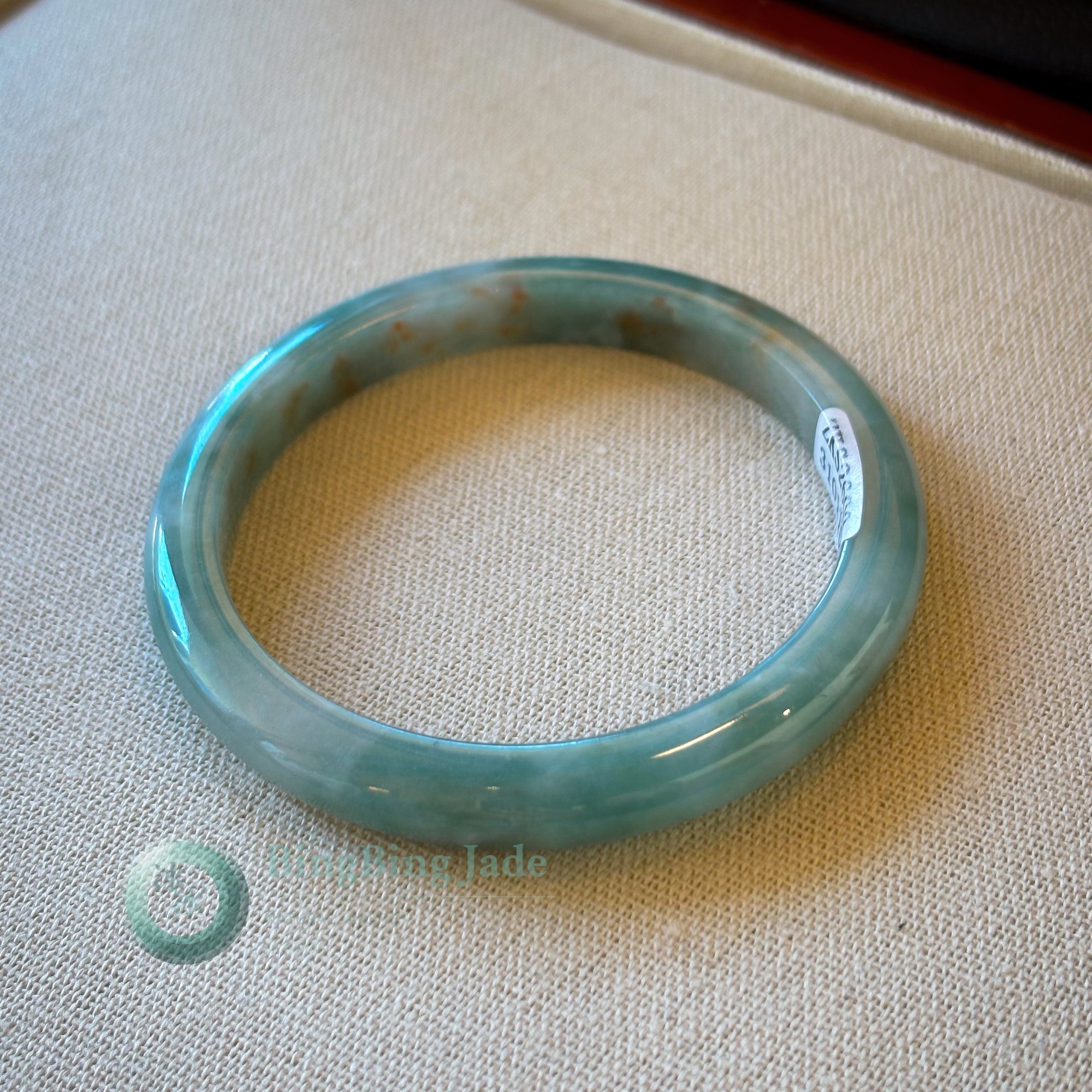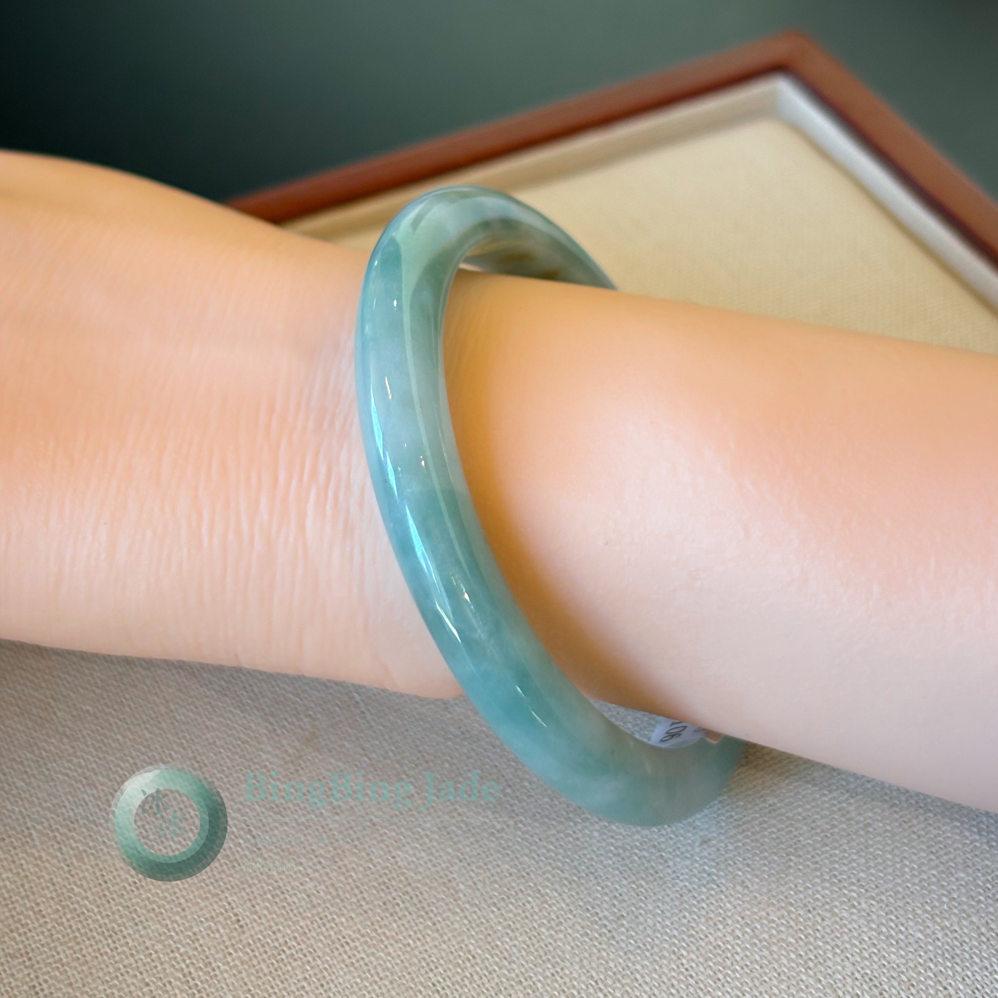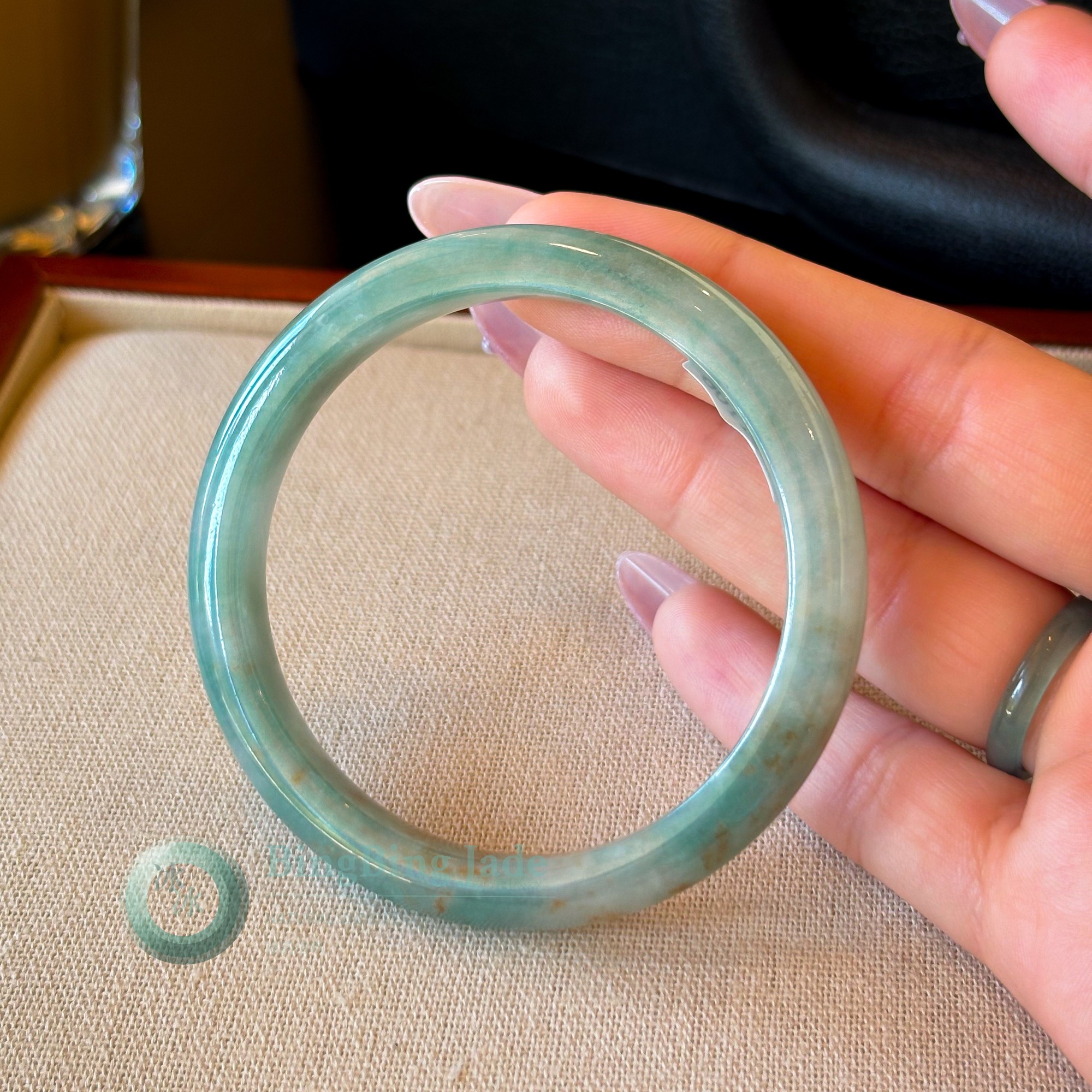 Blue-Green with Koi Kiss Accents — Jadeite Bangle 54.2mm