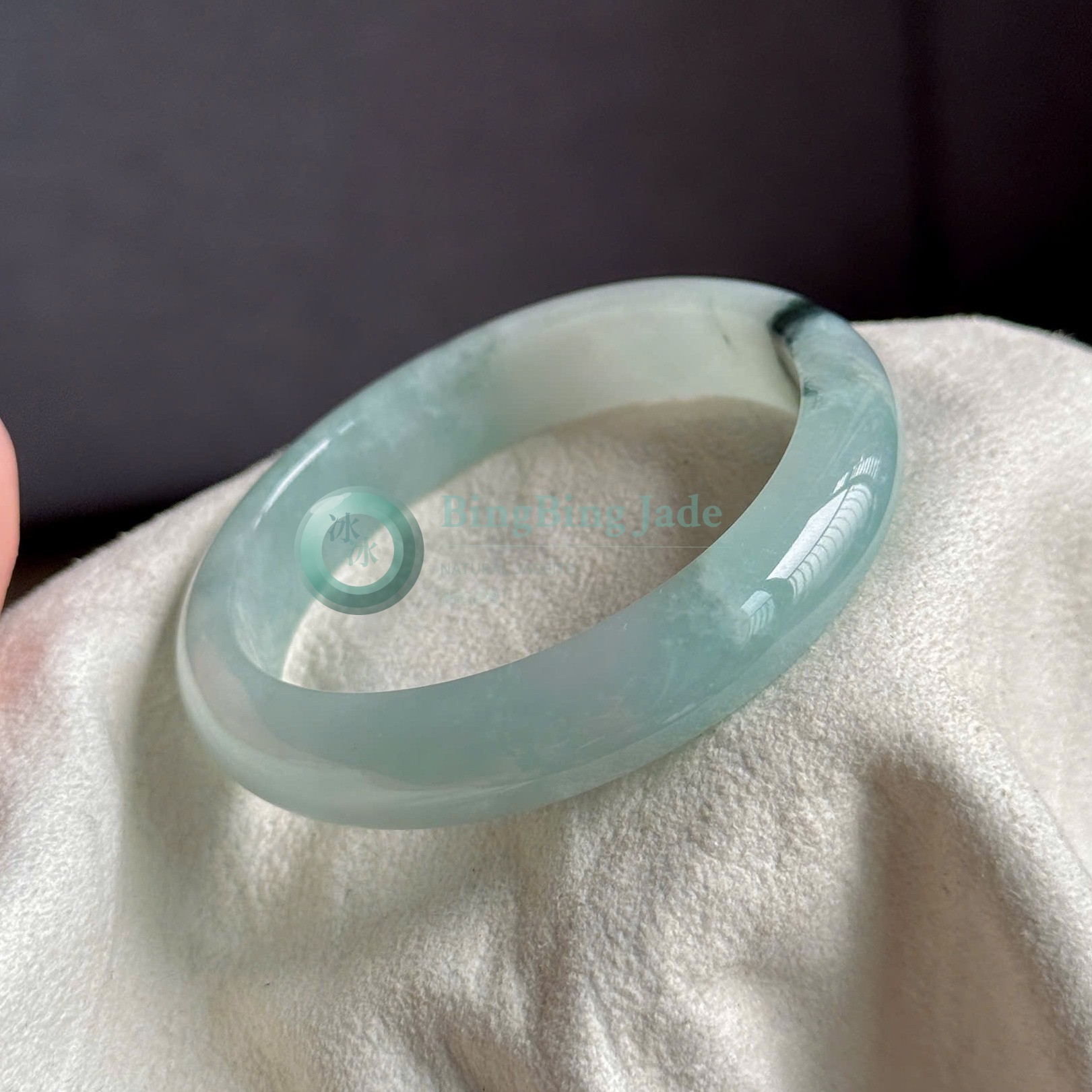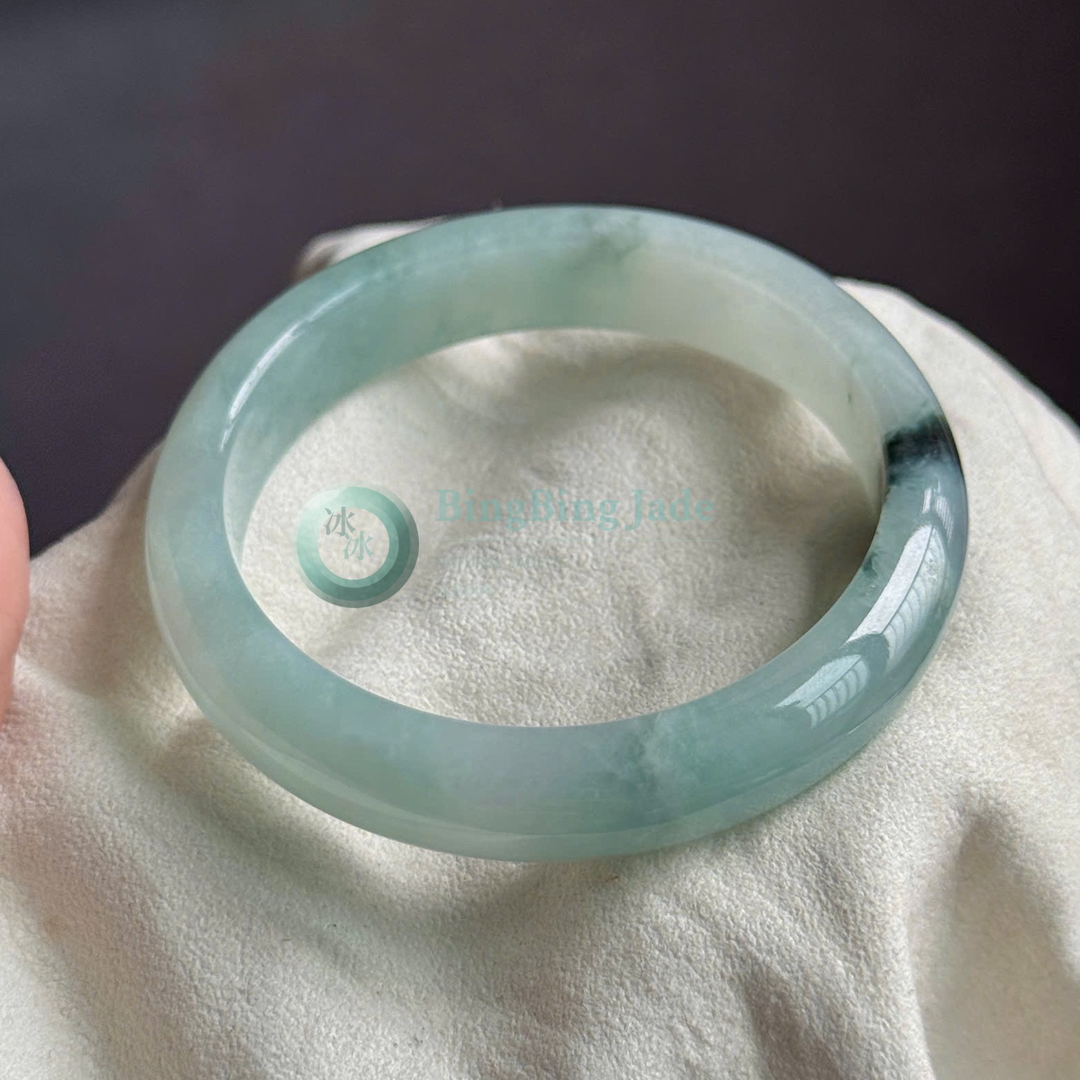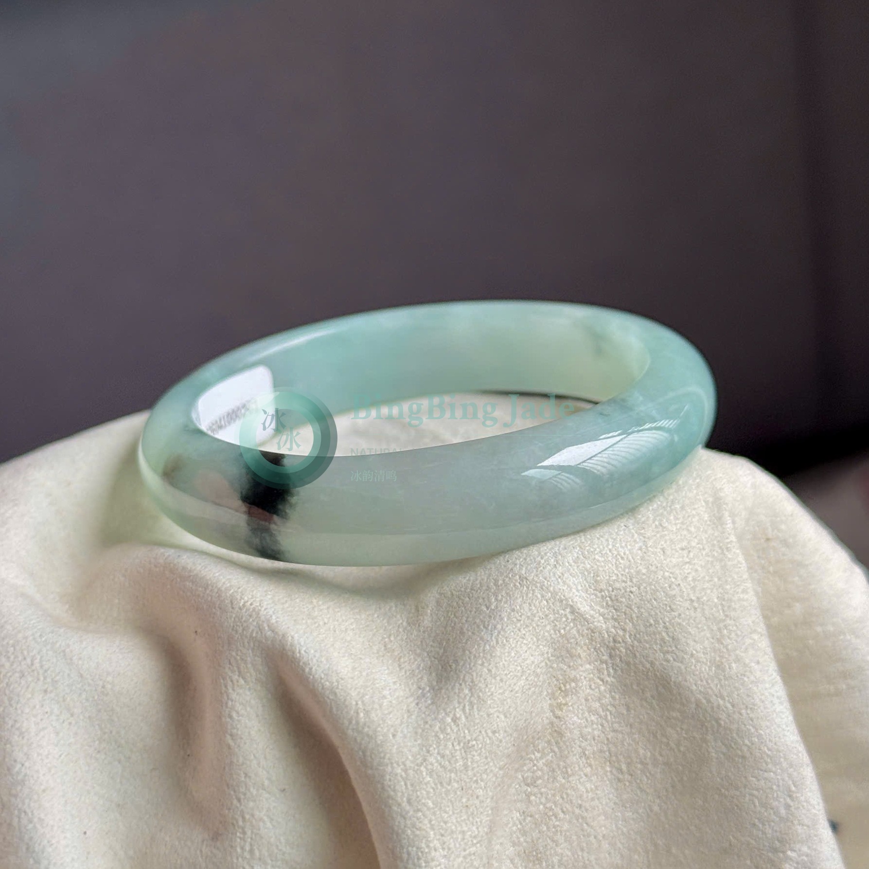 Celadon with Dark Moss Kiss — Jadeite Bangle 54mm