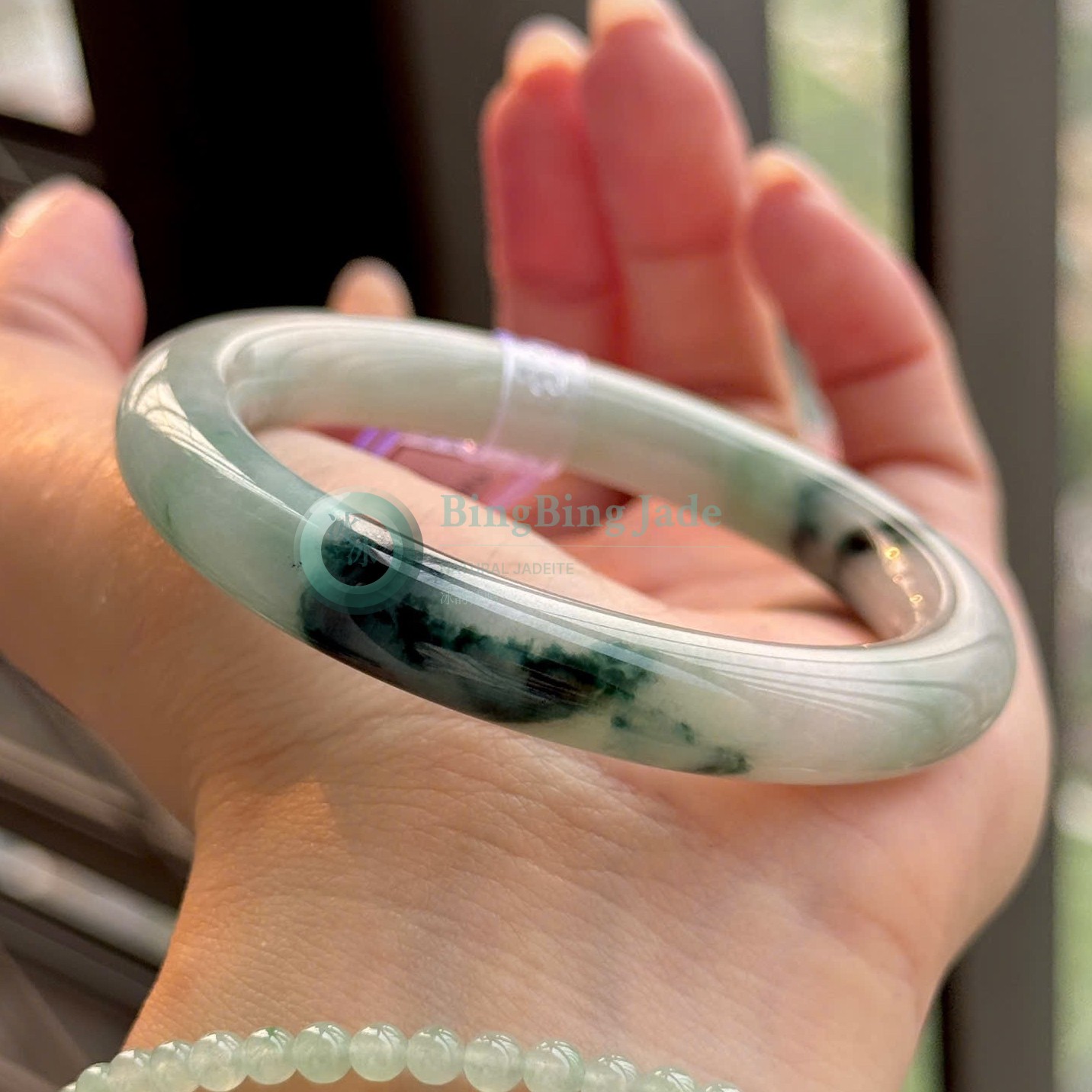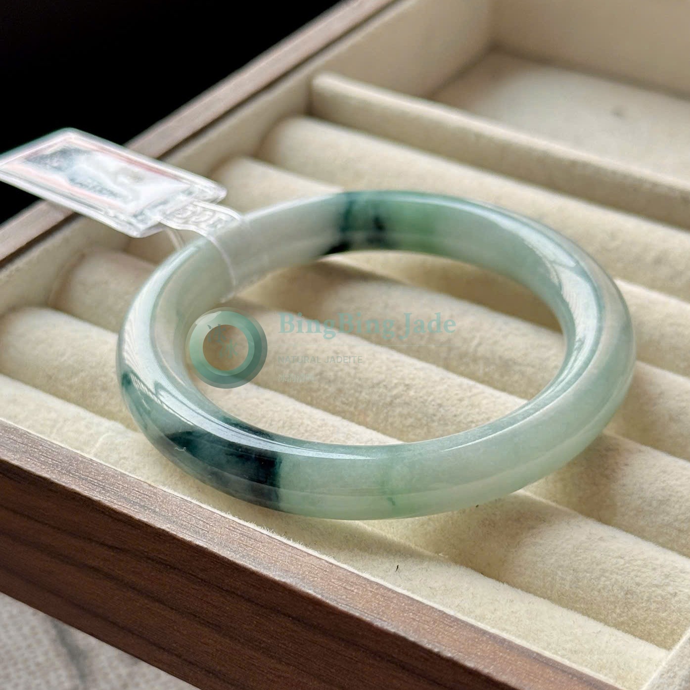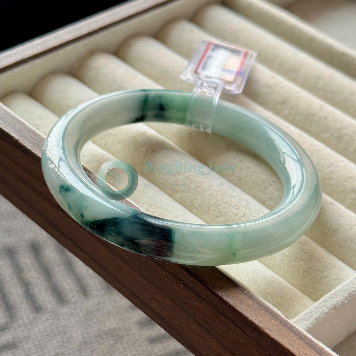 Celadon with Ink Bloom Accents — Round Bangle 52.6mm