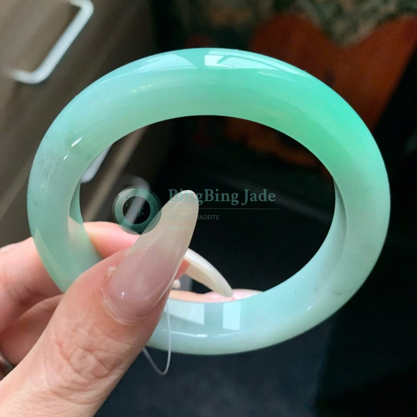 Floating Spring Green Icy Bangle 54mm — Cloud-Washed Emerald on Pristine Glass