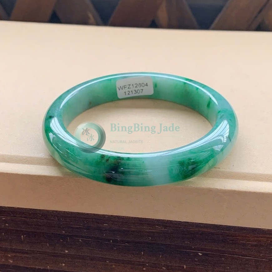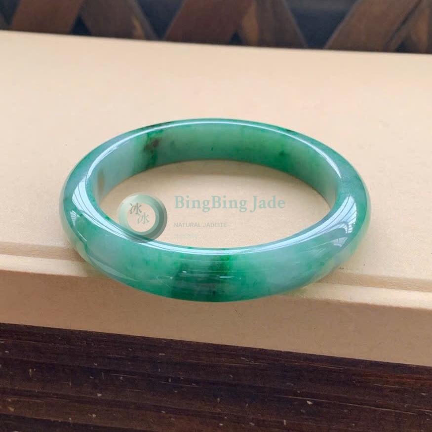 Emerald Drift on Pale Mint — Jadeite Bangle 58mm