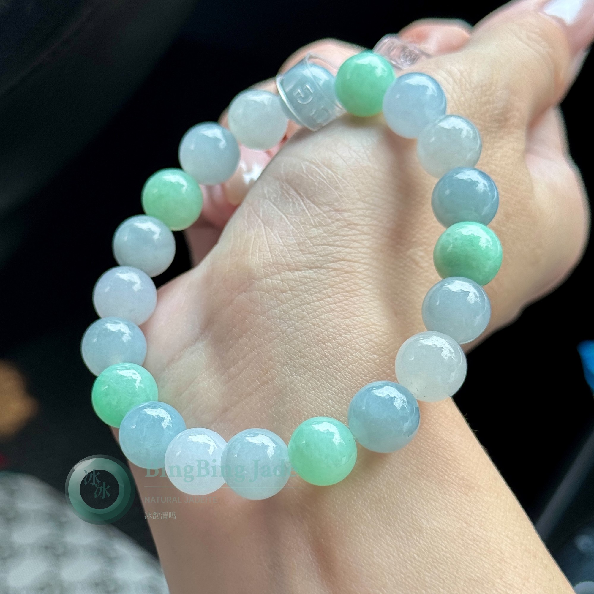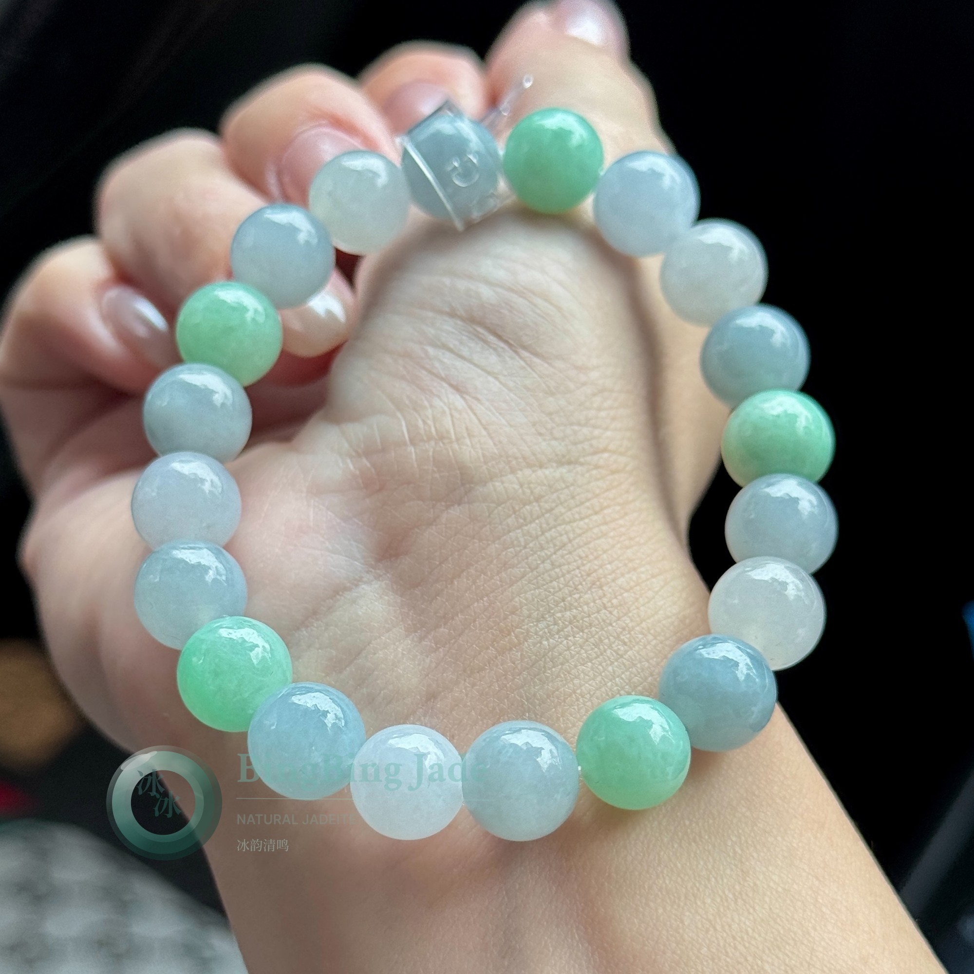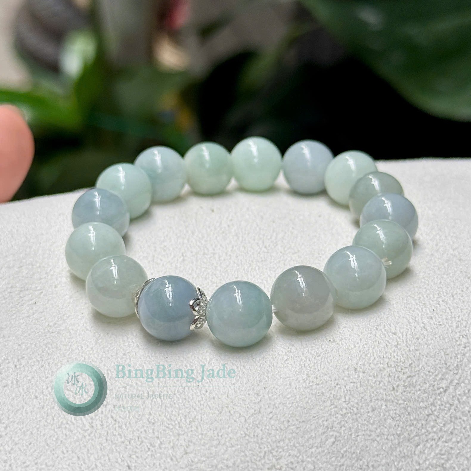 Icy Floating Bloom Jadeite Bead Bracelet — 10mm