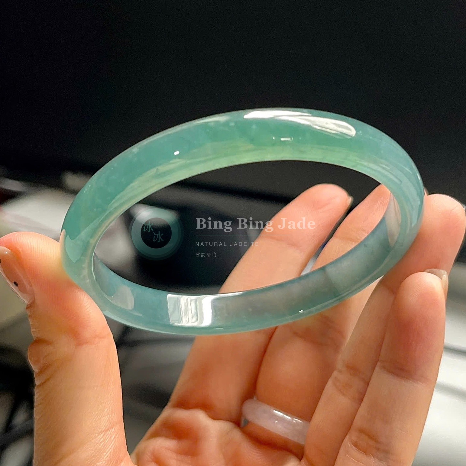Sky Blue Jadeite Bangle with Soft Green Hue