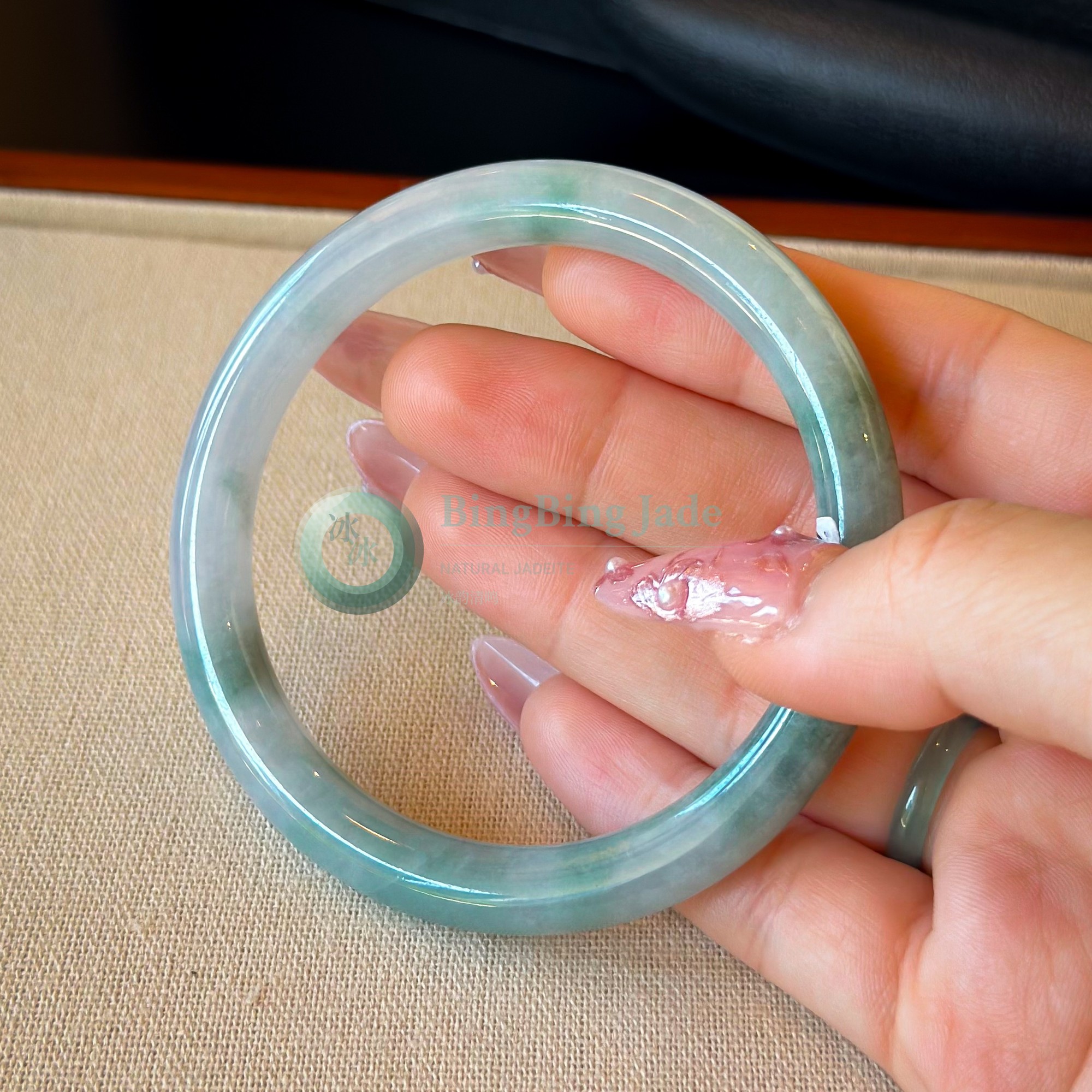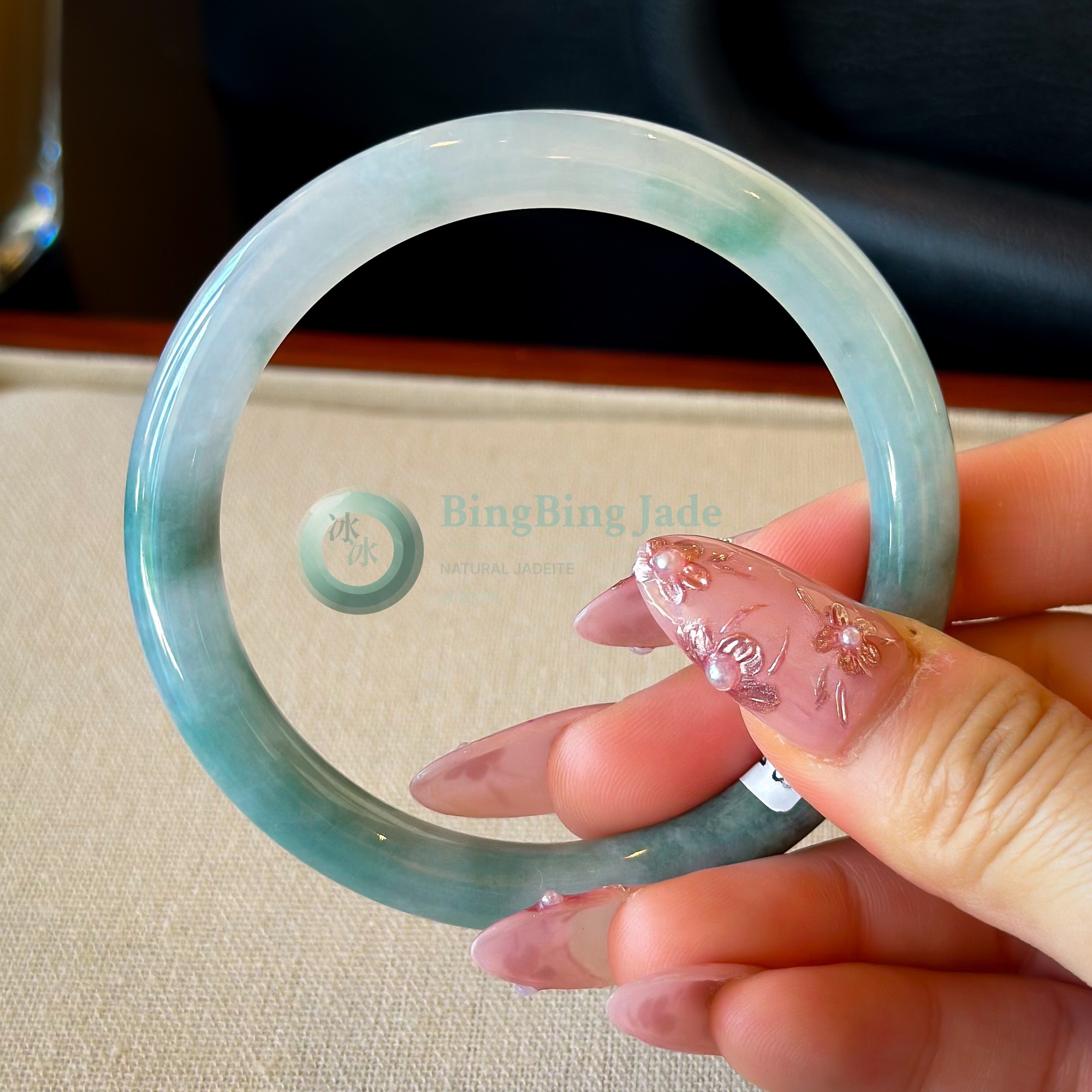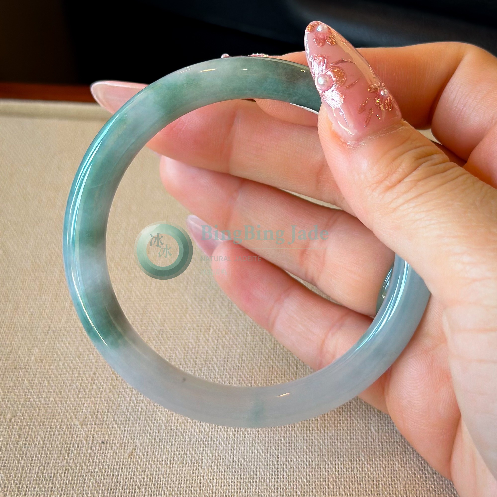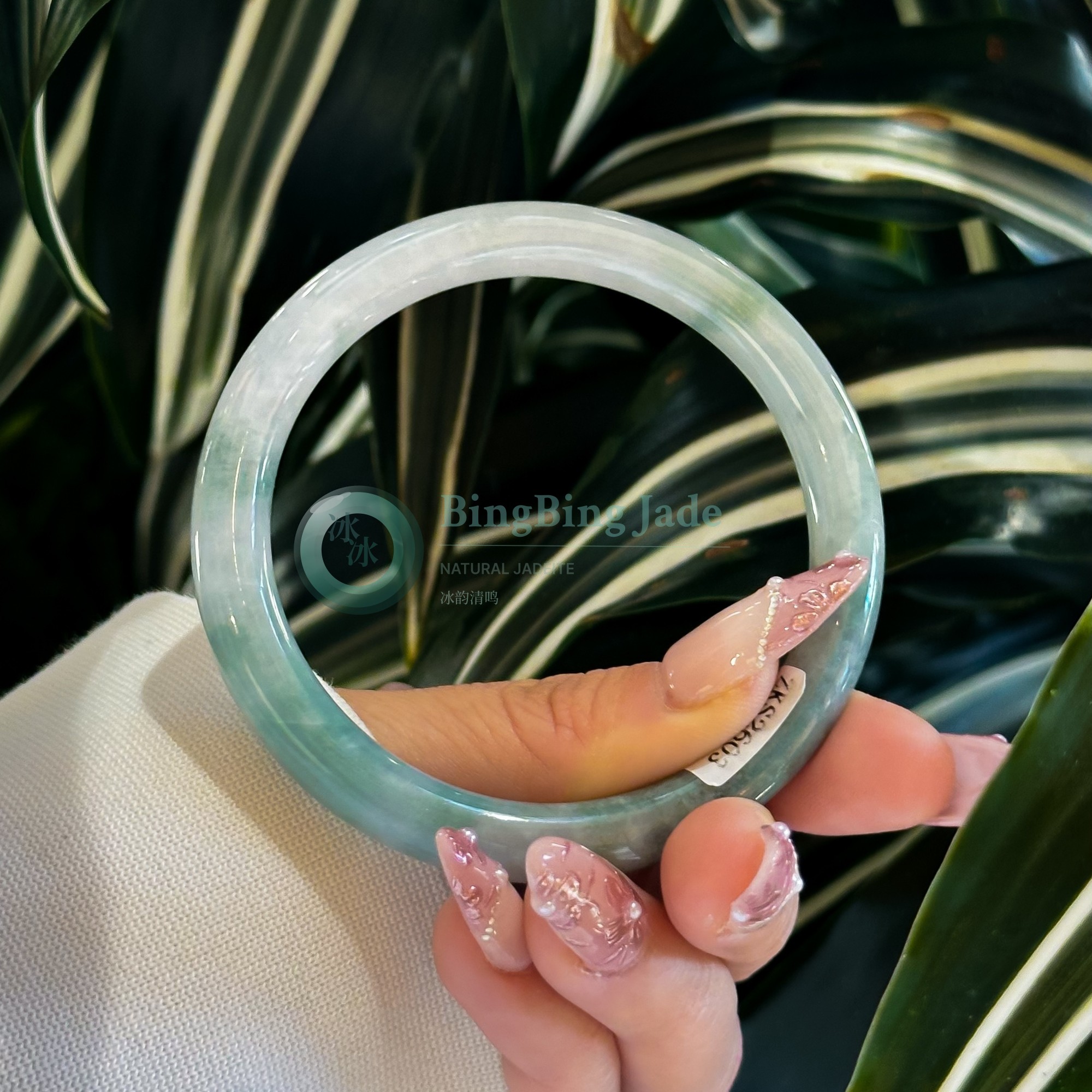 Half-Mountain Half-Water Jadeite Bangle 57.3mm — Seafoam Drift with Glacial Translucency