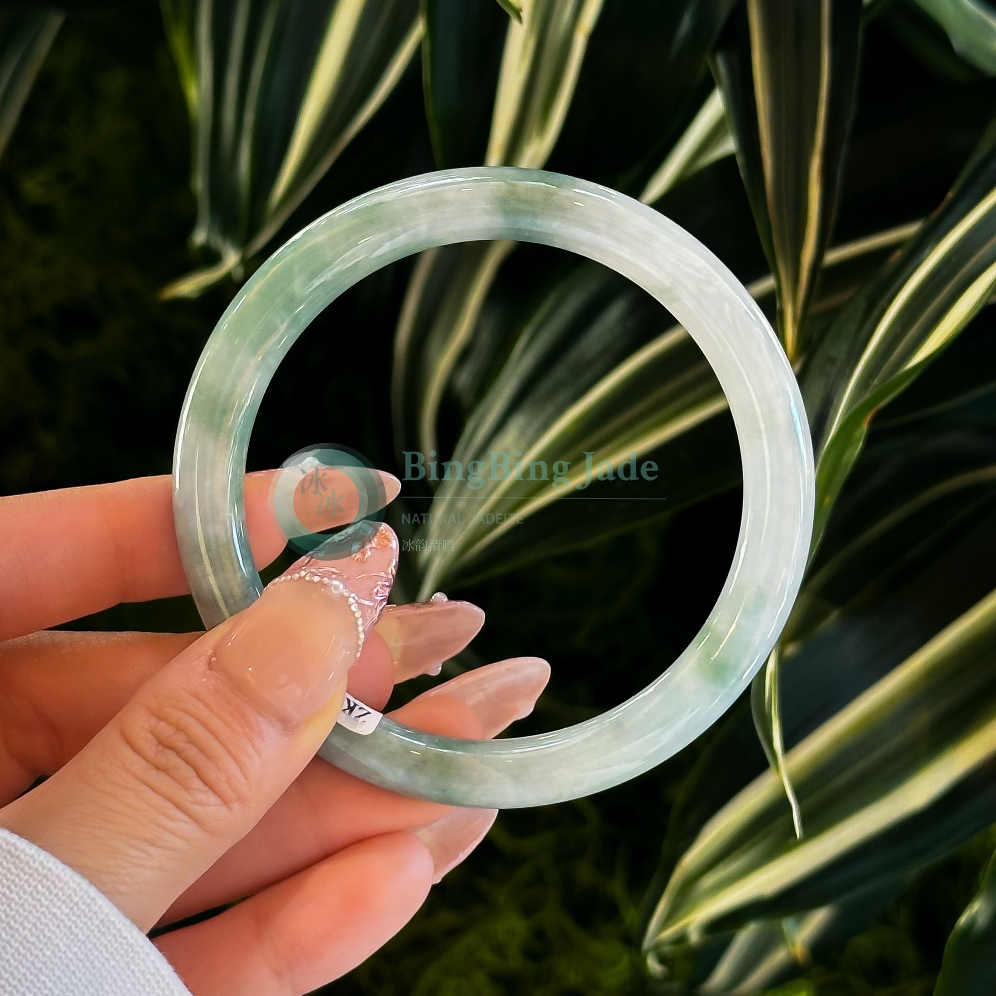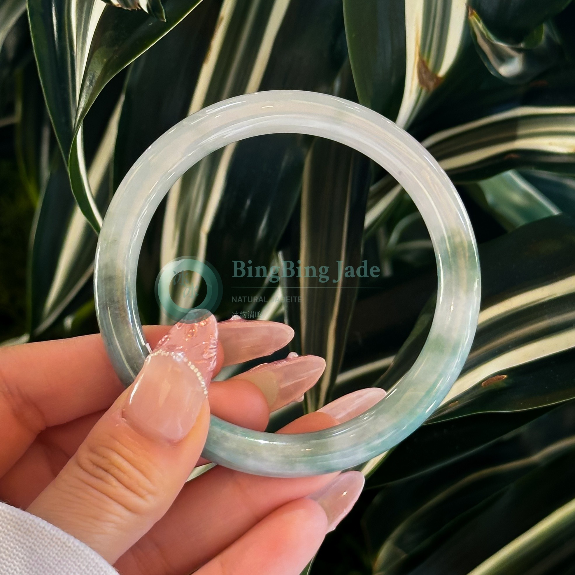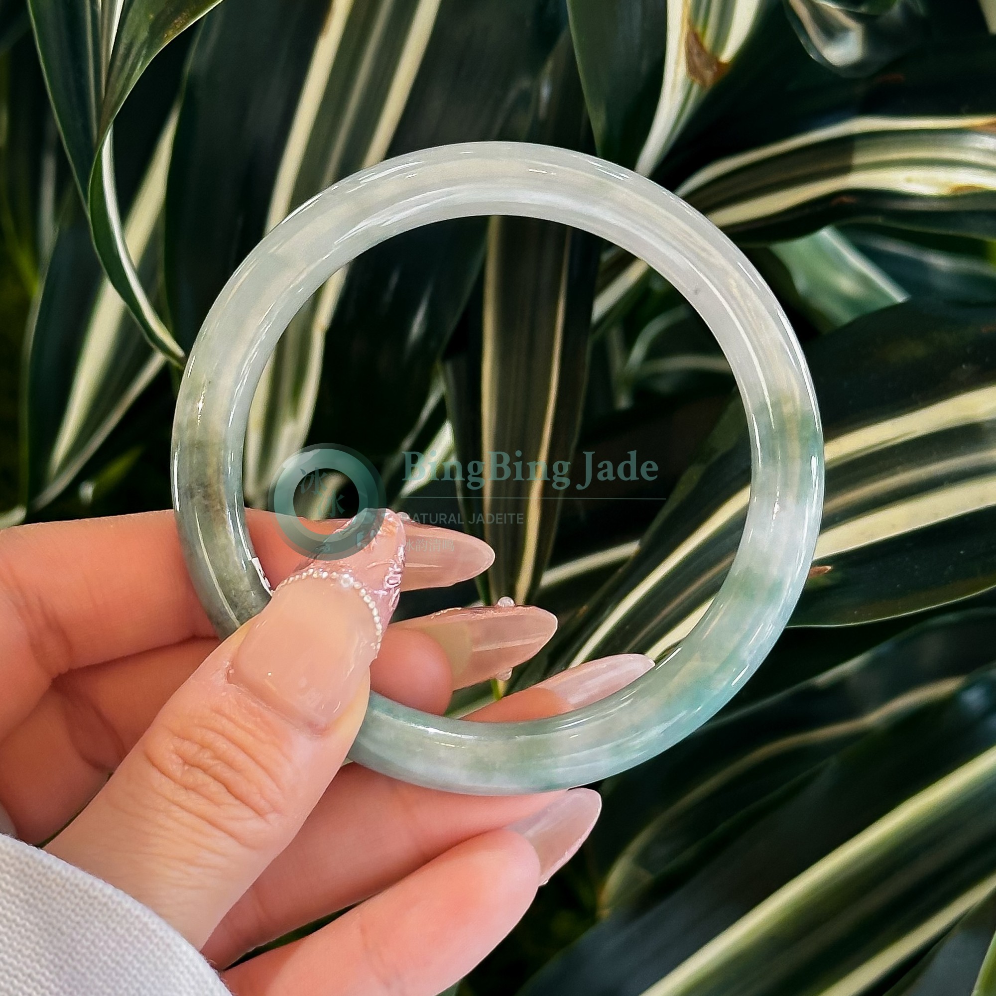 Half-Mountain Half-Water Jadeite Bangle 57.3mm — Seafoam Drift with Glacial Translucency