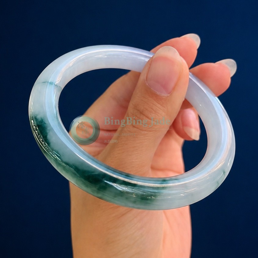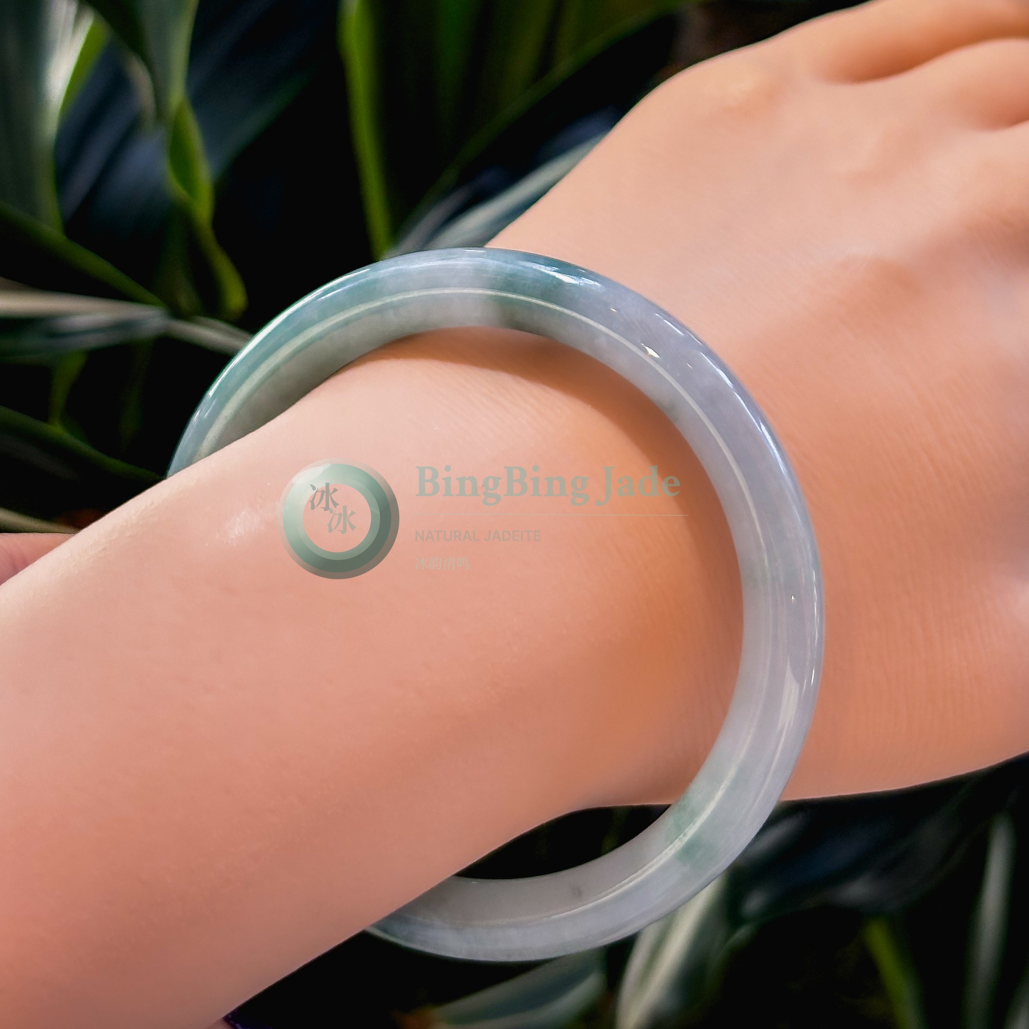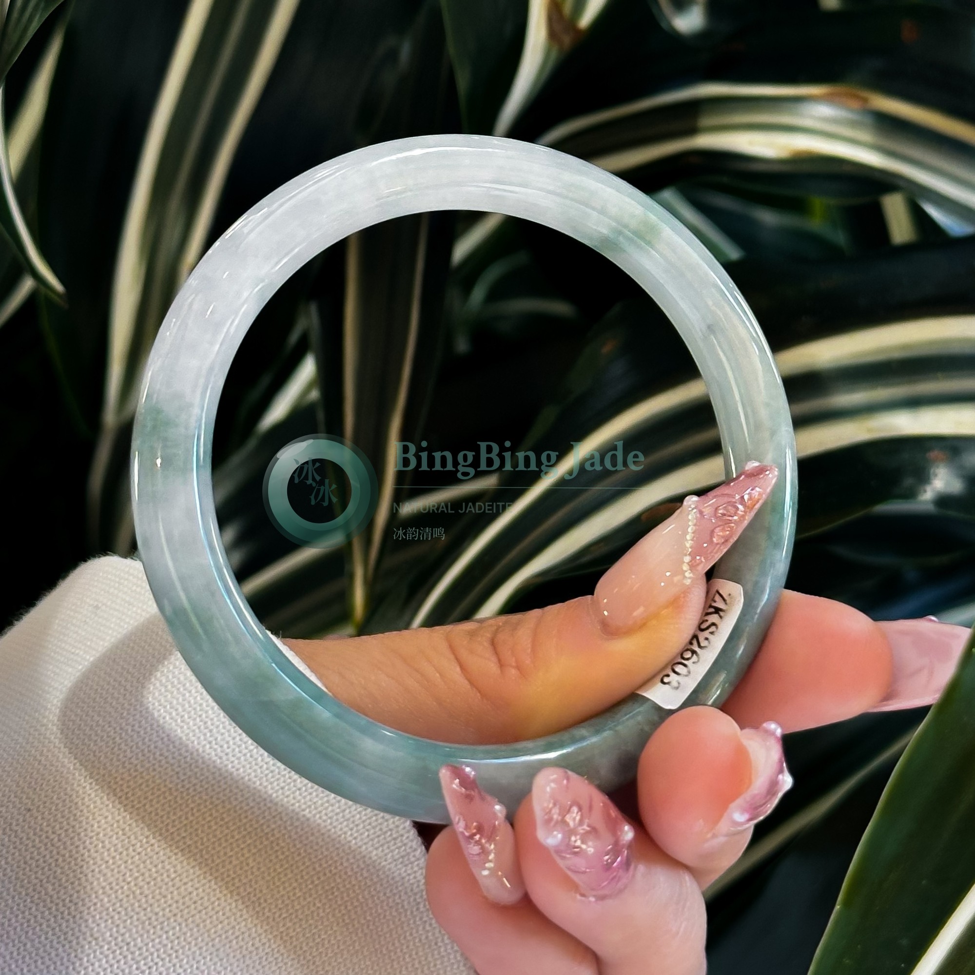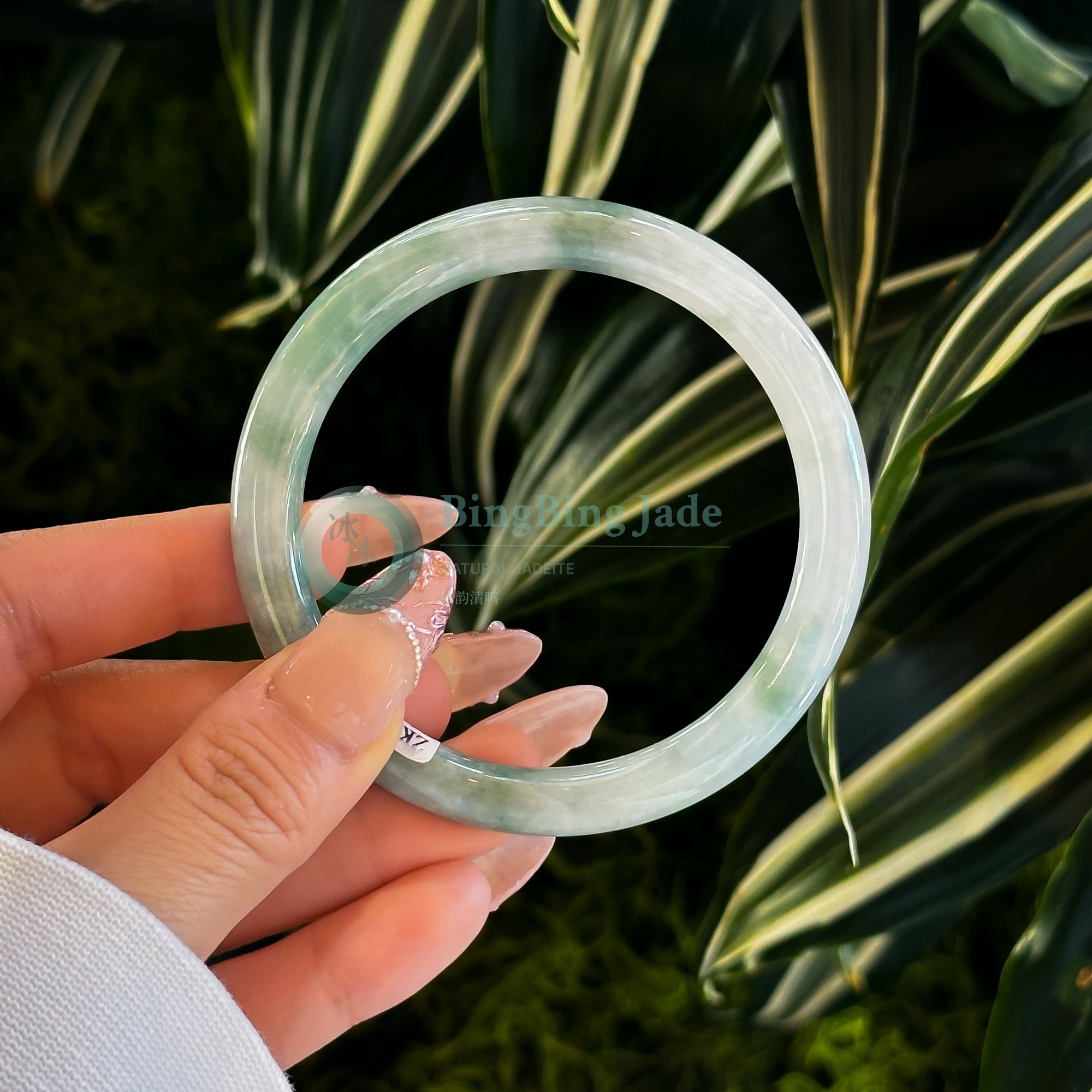 Half-Mountain Half-Water Jadeite Bangle 57.3mm — Seafoam Drift with Glacial Translucency