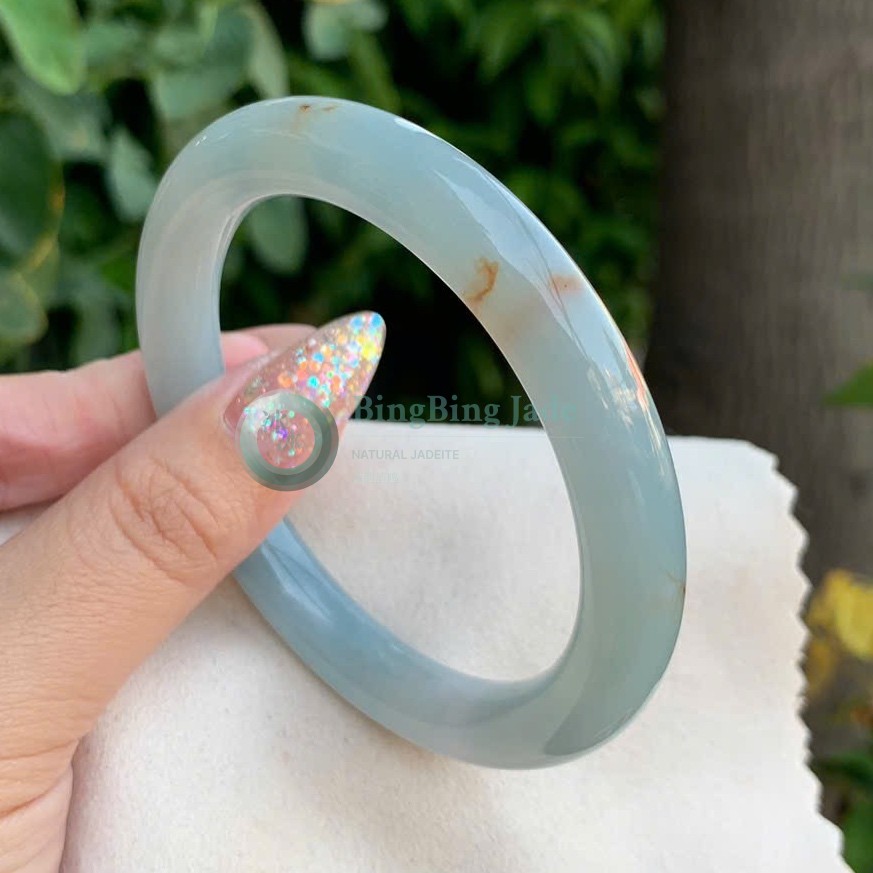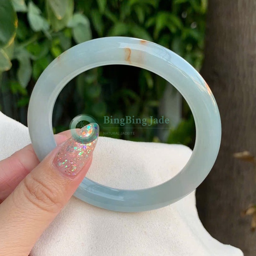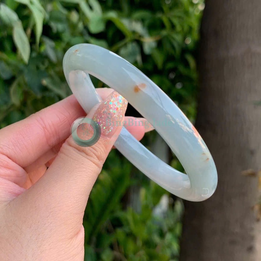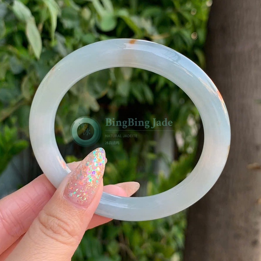Icy White with Amber Kiss Jadeite Bangle 54.8mm (Fit Size 51-52)