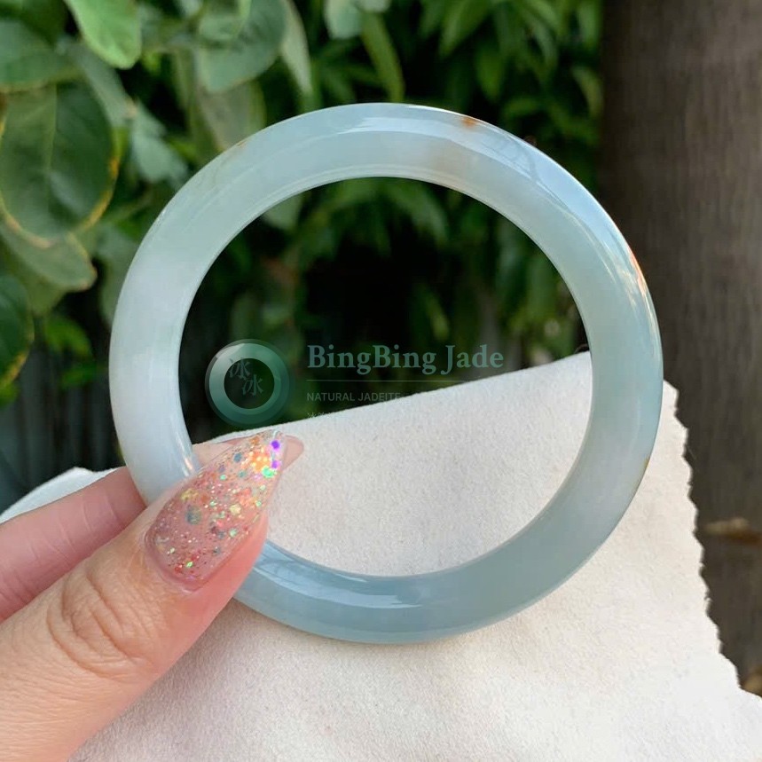 Lavender Mist with Floating Green Kiss — Jadeite Bangle 56.5mm