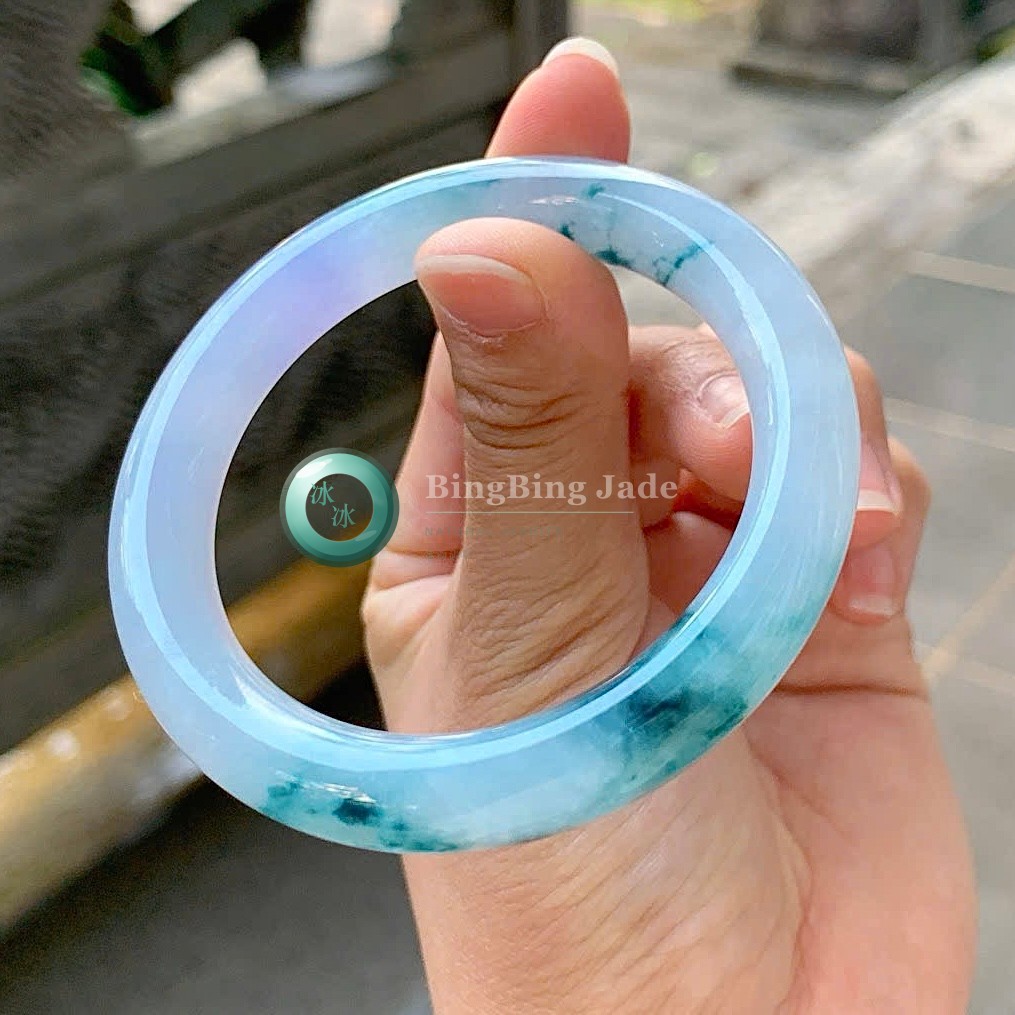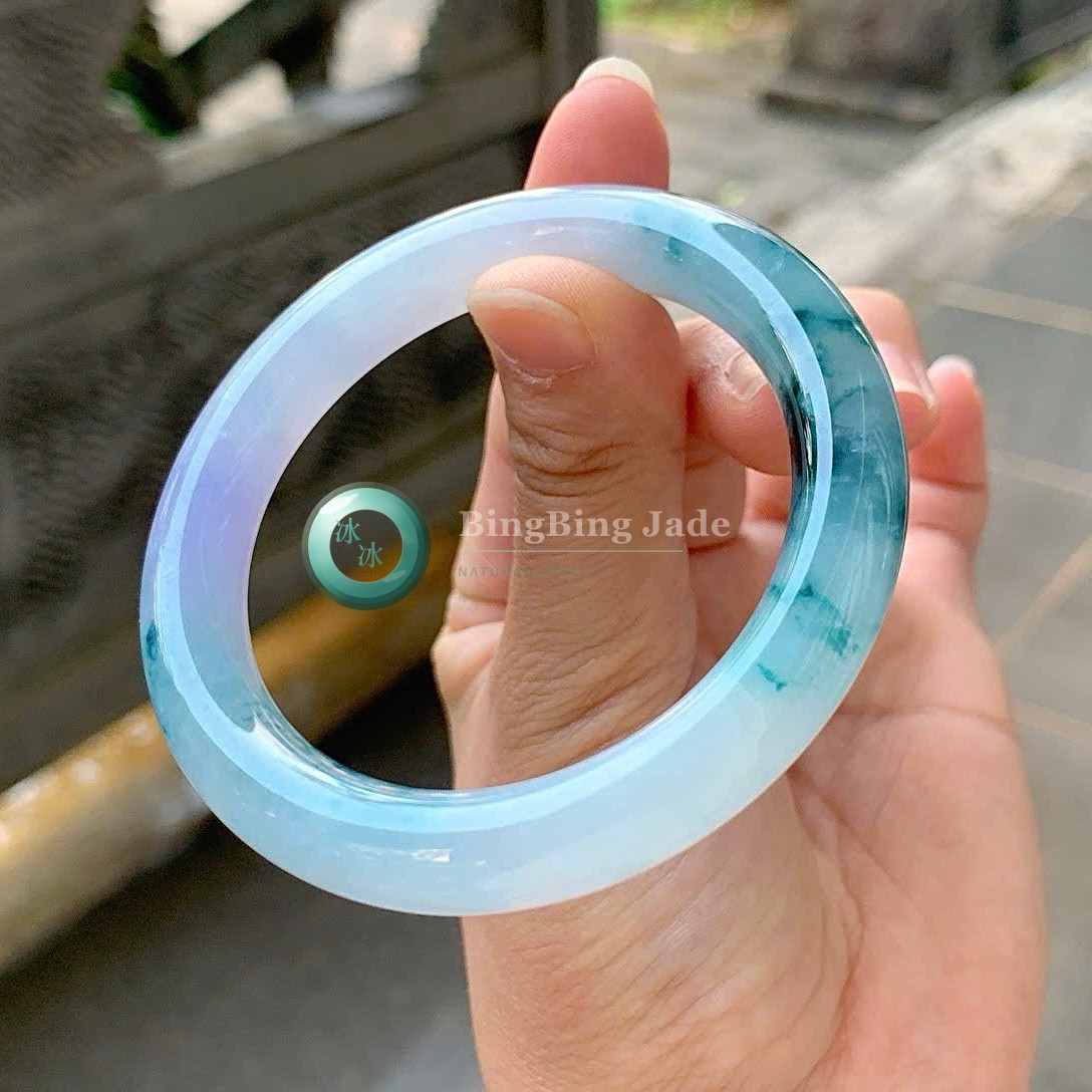 Lavender Mist with Floating Green Kiss — Jadeite Bangle 56.5mm