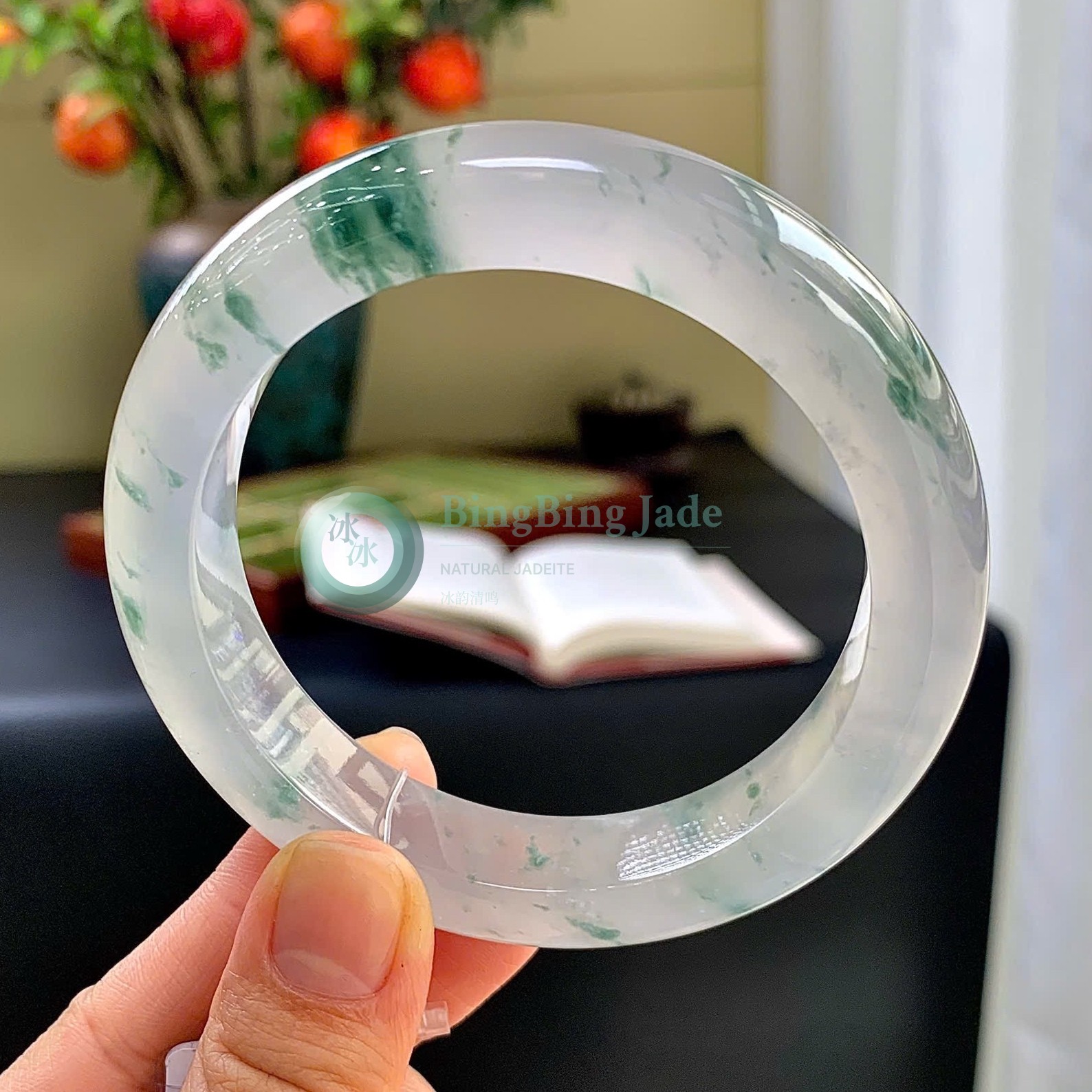 Icy Floating Garden — High Icy/Glassy Tier Jadeite Bangle 57.6mm
