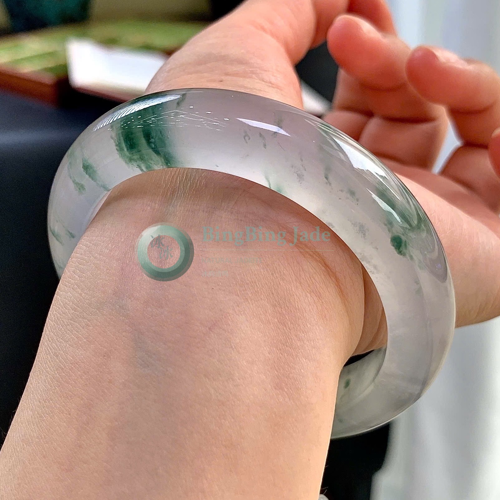 Translucent Bangle with Drifting Emerald Clouds 54mm