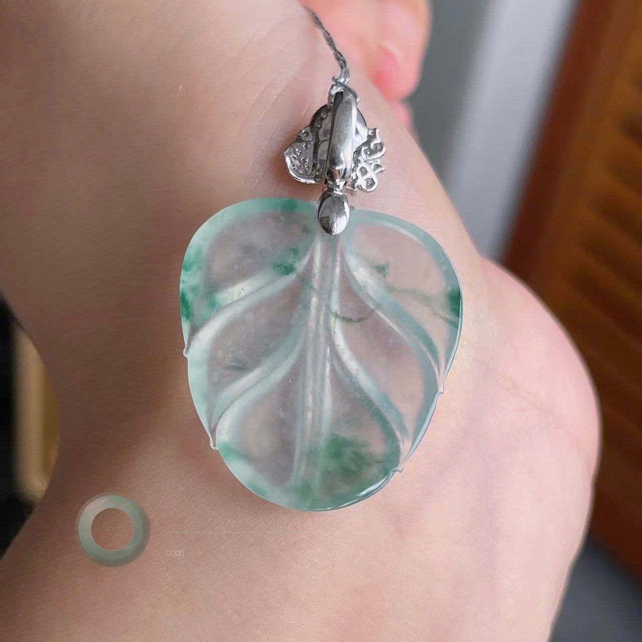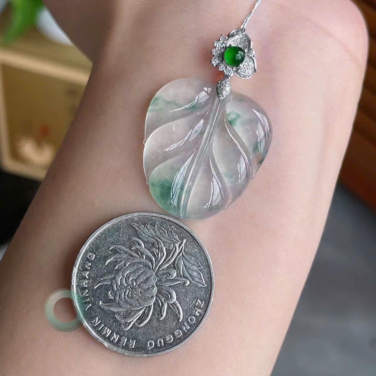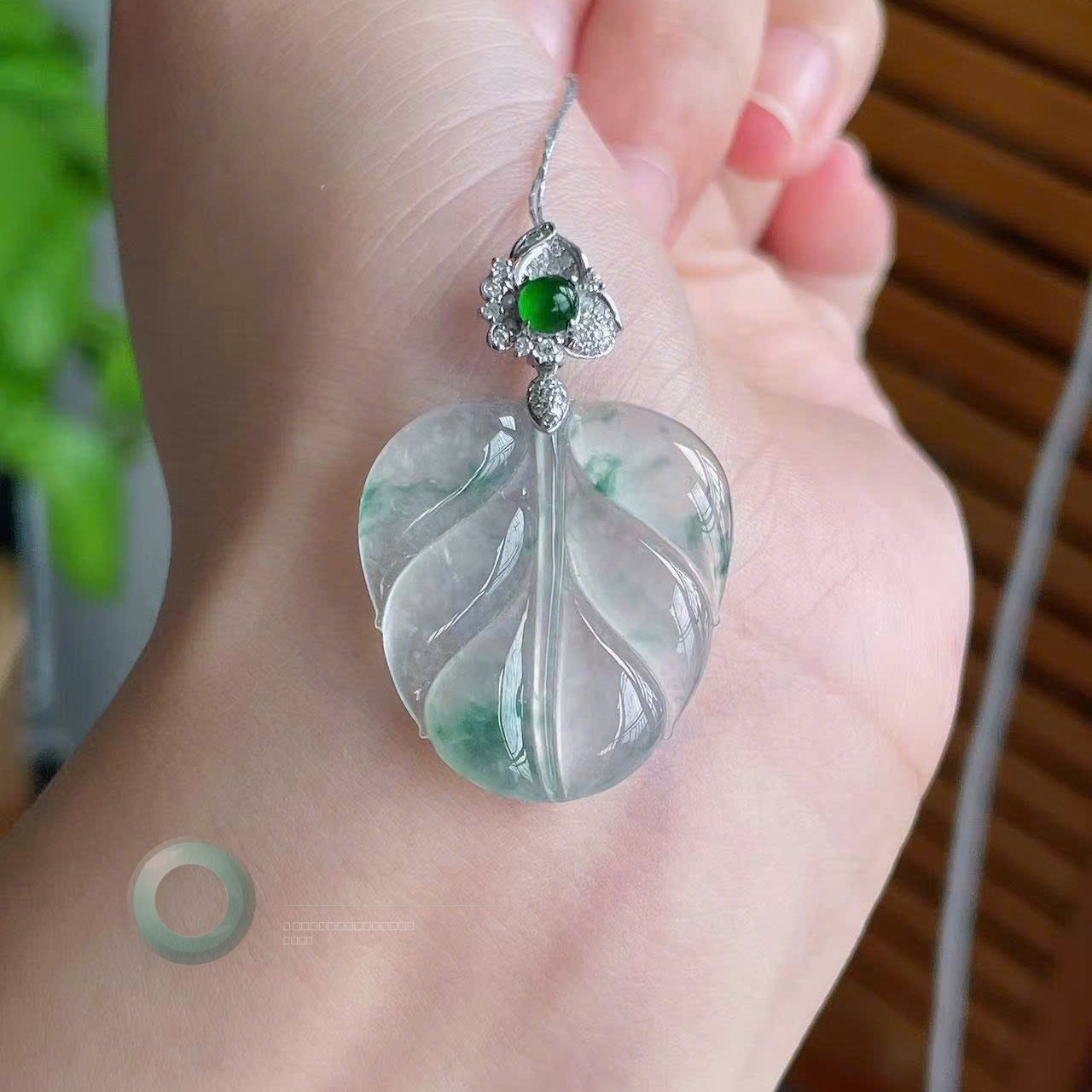 Icy High-Glow Leaf Pendant with Floating Emerald Veins