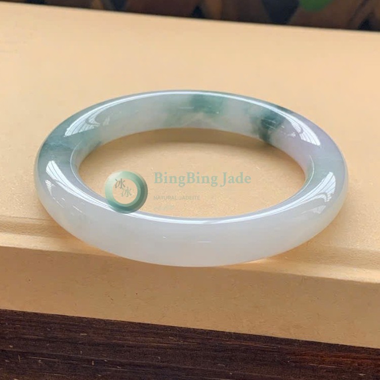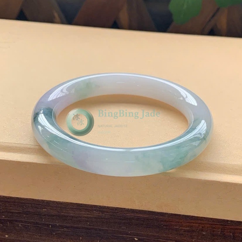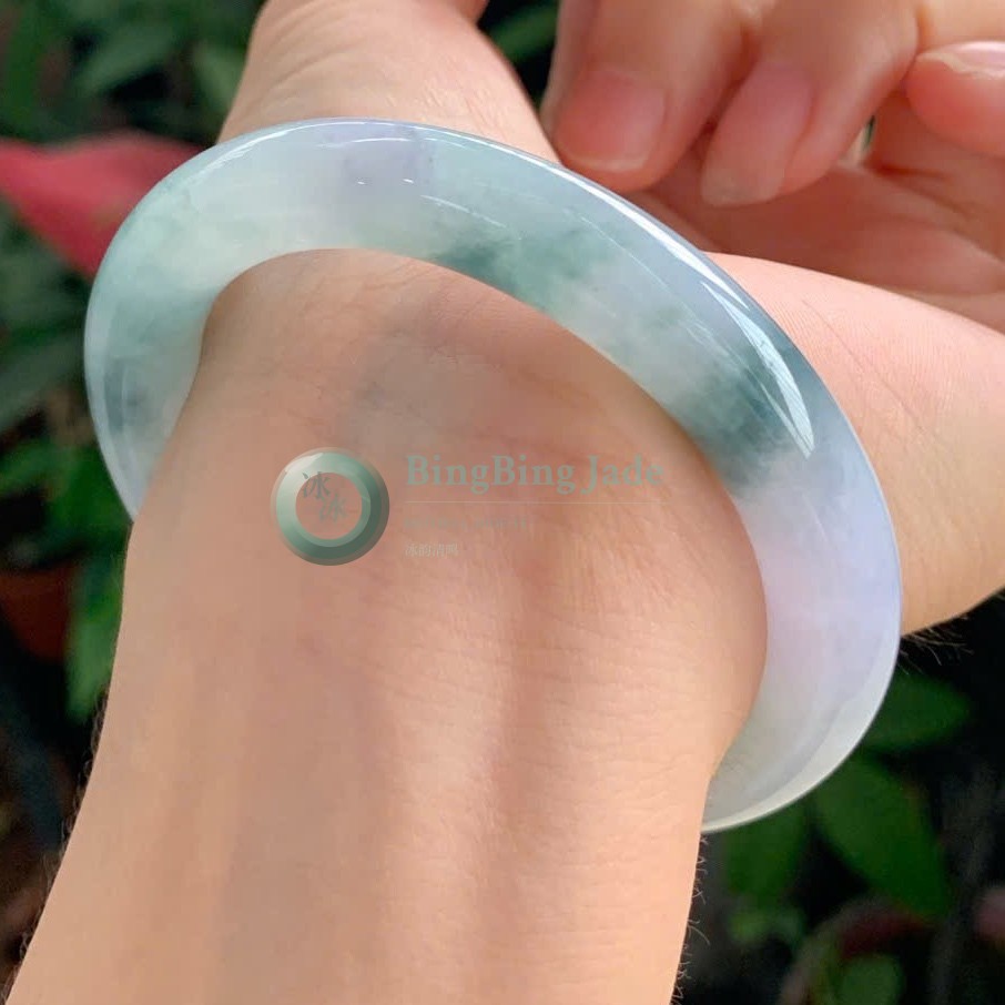 Lavender Mist with Floating Green Kiss — Jadeite Bangle 56.5mm