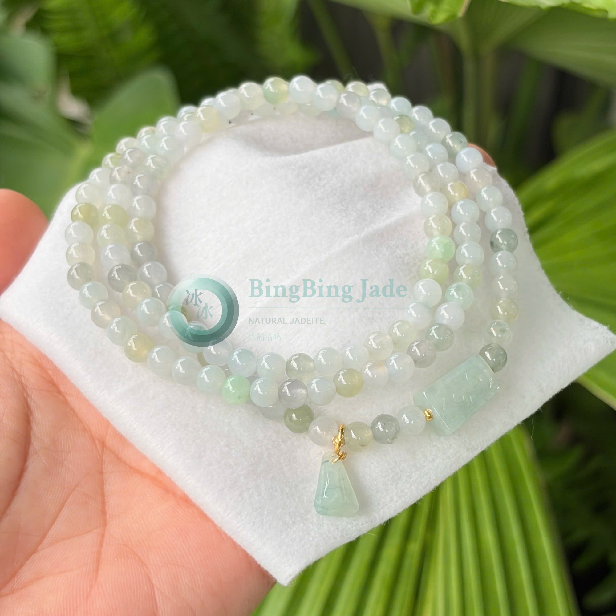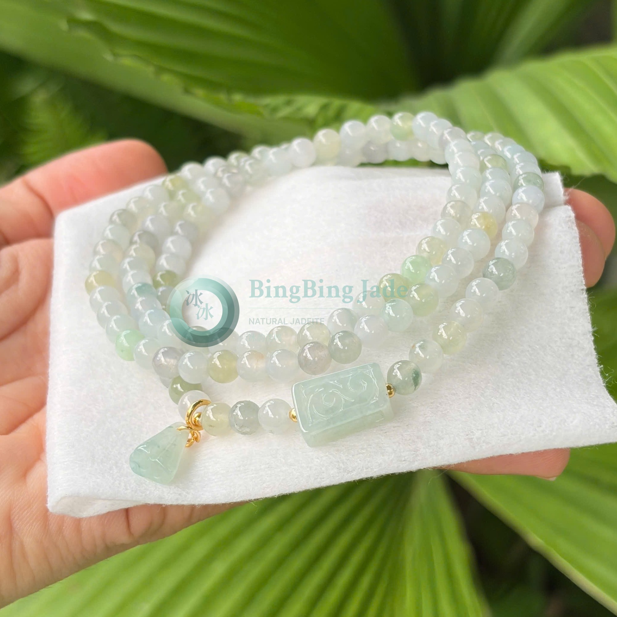 Misty Spring Waters Jadeite Bead Necklace — 6mm Floating Green