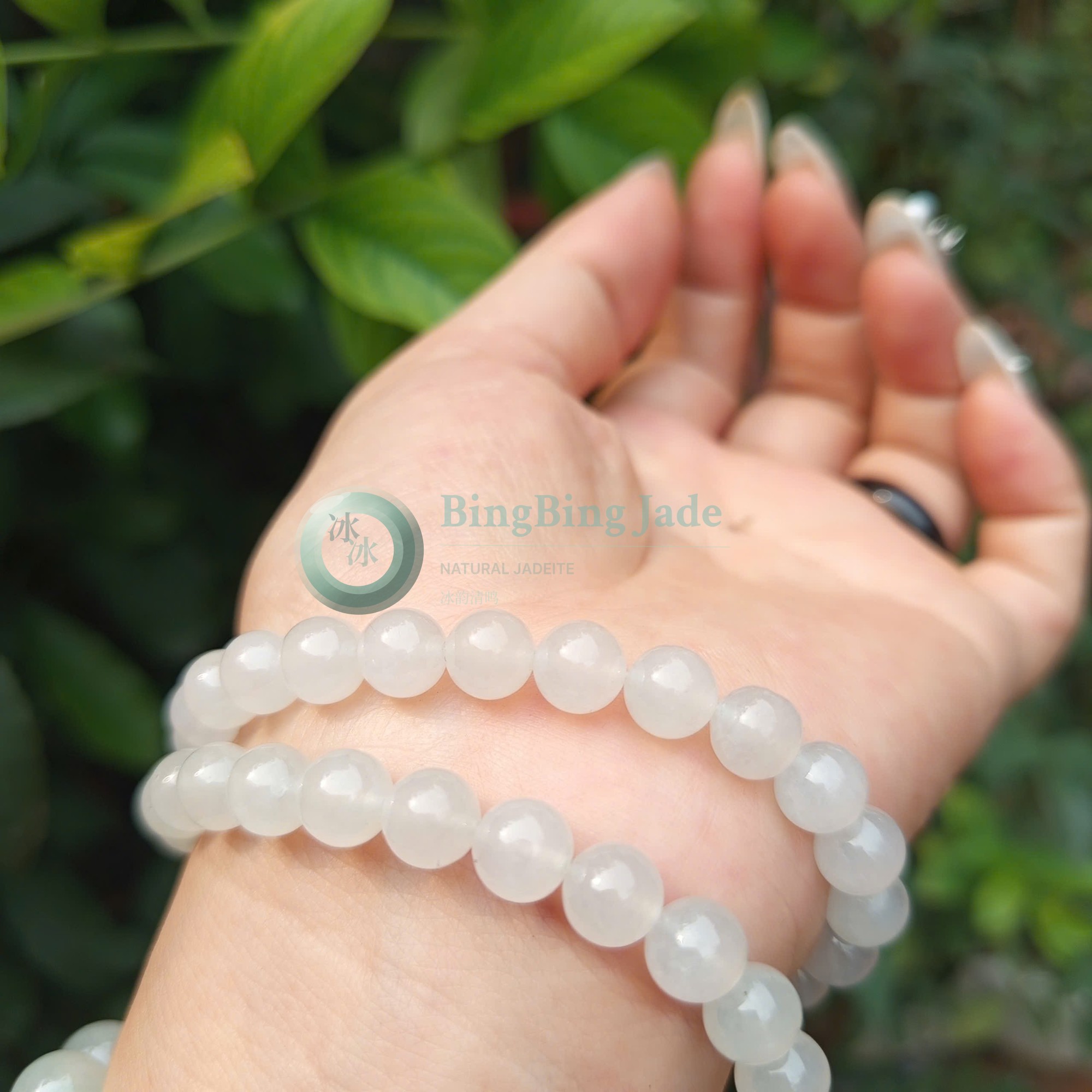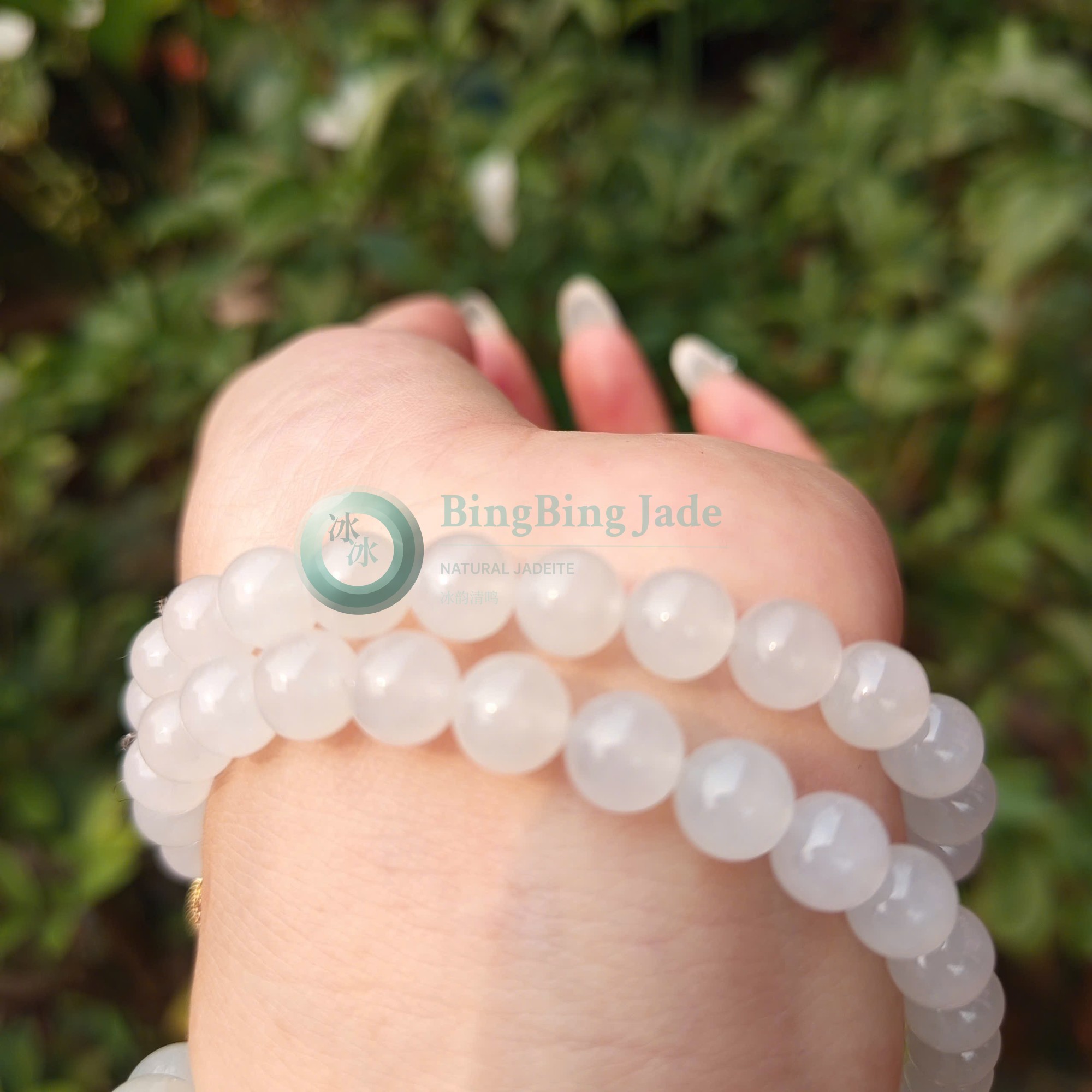 Icy White Jade Long Beaded Strand — Pure Moonlight Translucency, 7.9mm