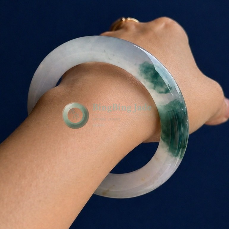 Lavender Drift & Floating Green Jadeite Bangle 56.8mm