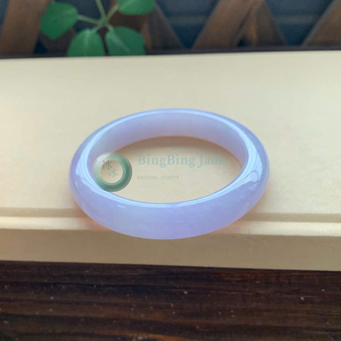 Lavender Mist with Floating Green Kiss — Jadeite Bangle 56.5mm