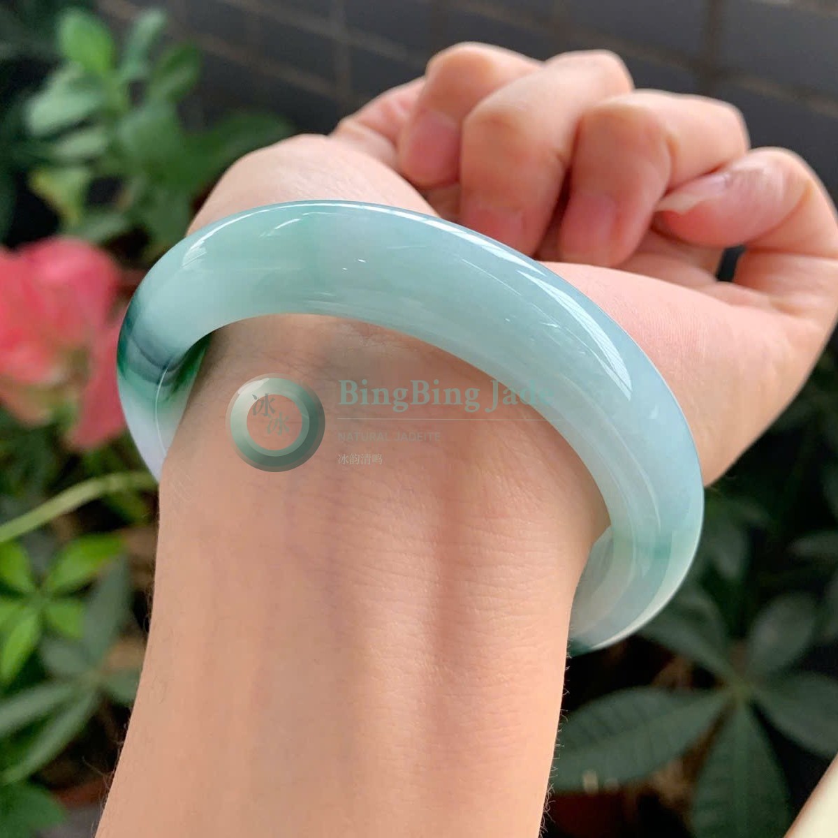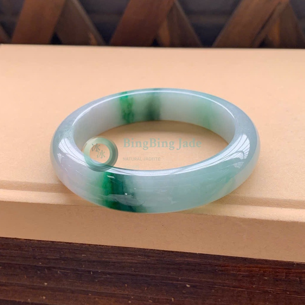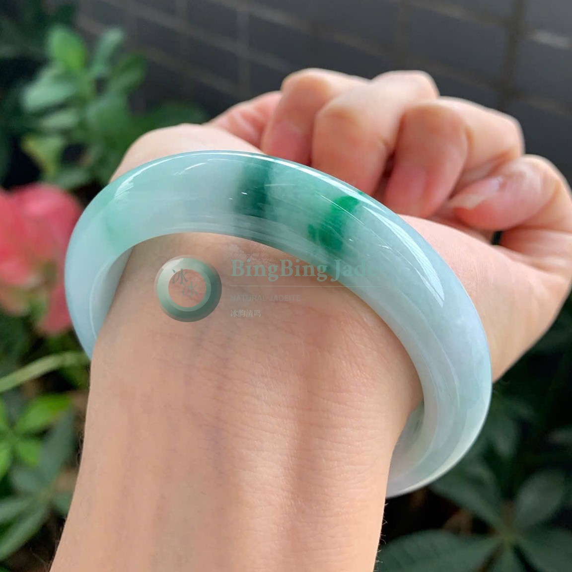Icy Translucent Bangle with Drifting Emerald Blooms 53.5mm