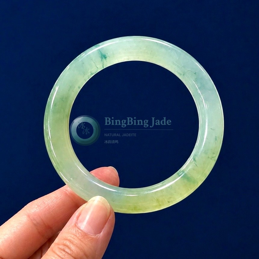 Floating Spring Green Icy Bangle 54mm — Cloud-Washed Emerald on Pristine Glass