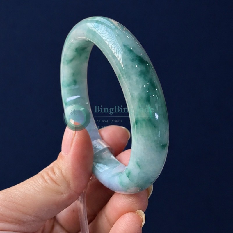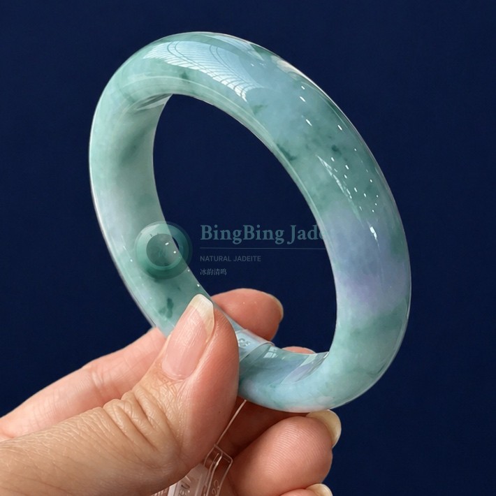 Lavender Drift & Floating Green Jadeite Bangle 56.8mm