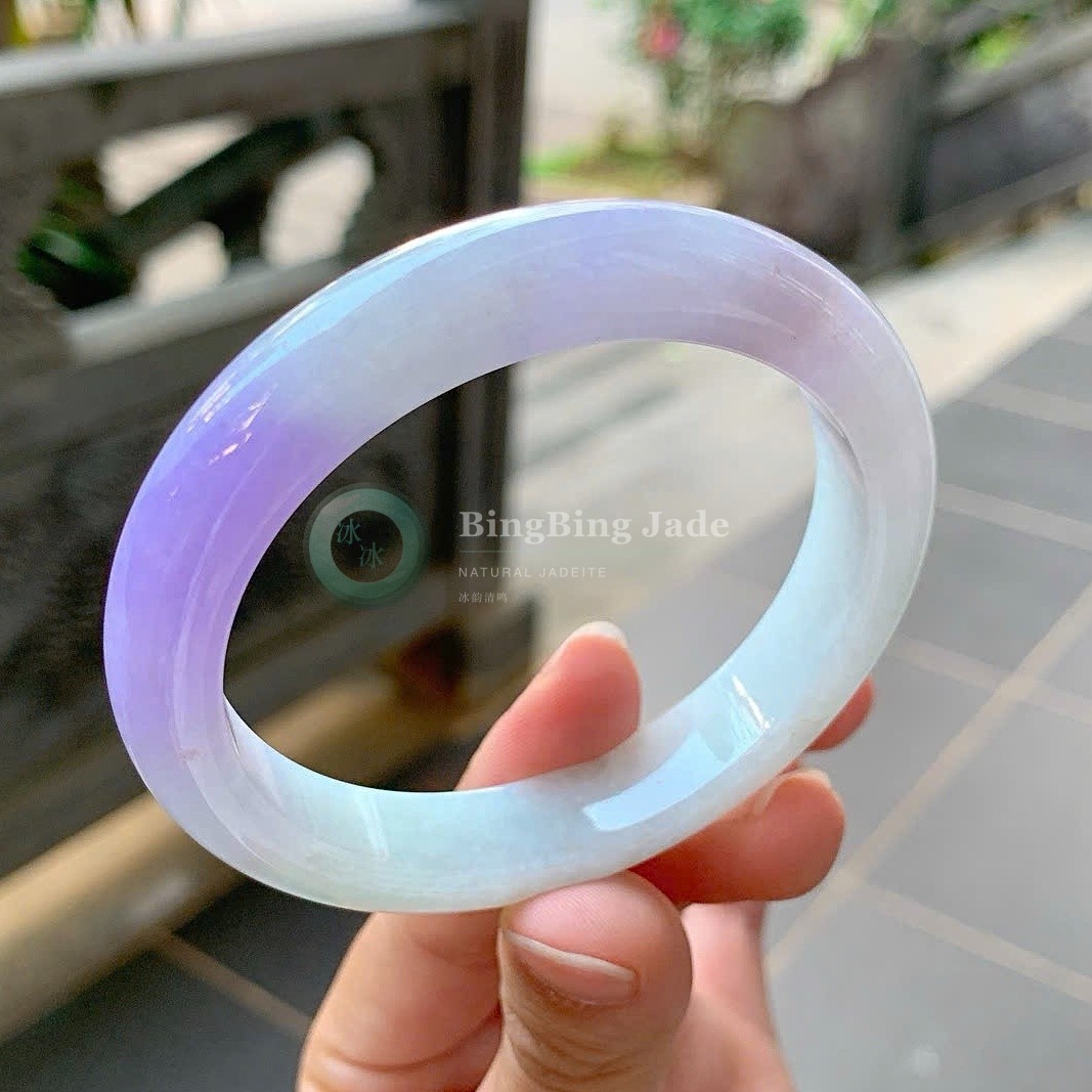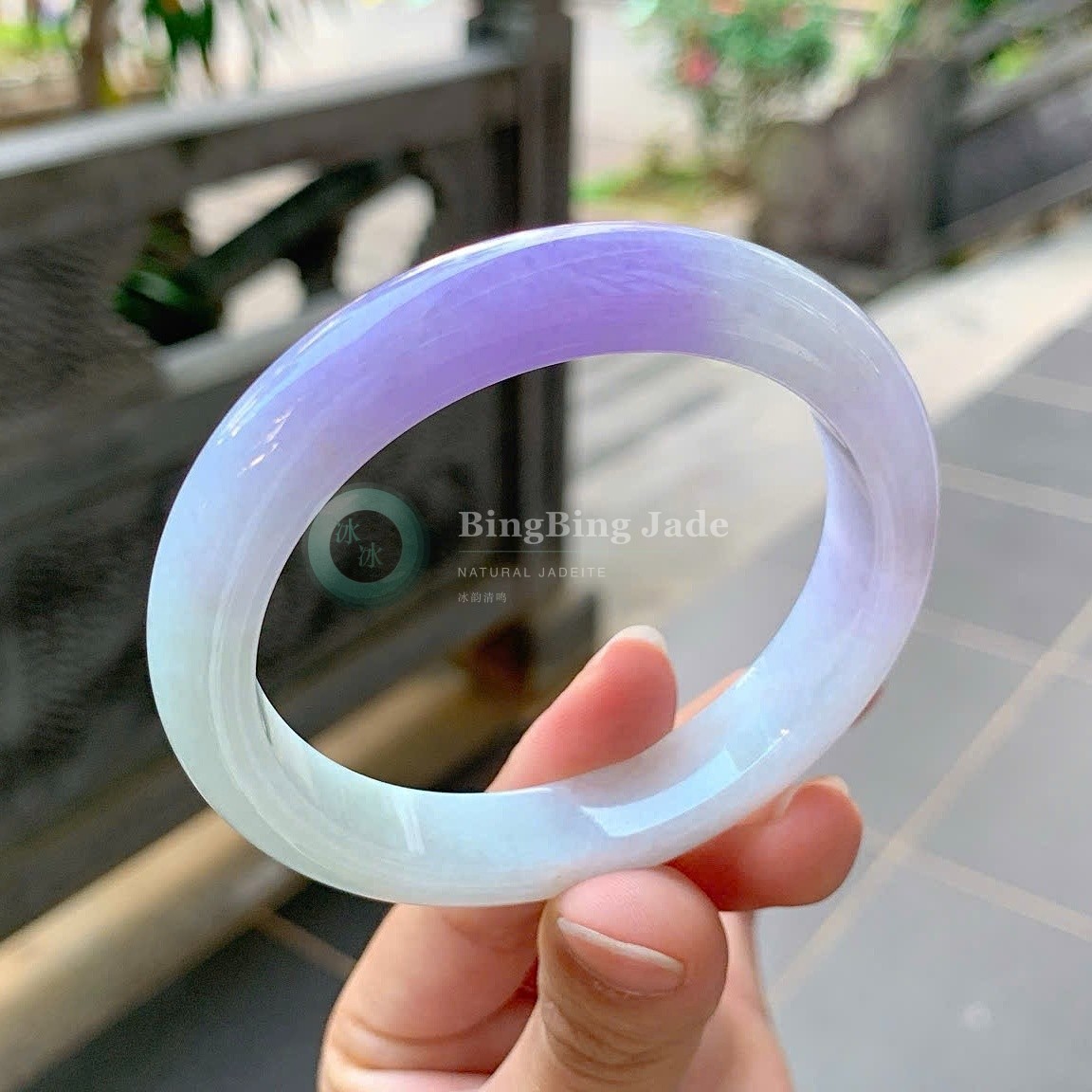 Lavender Mist with Floating Green Kiss — Jadeite Bangle 56.5mm