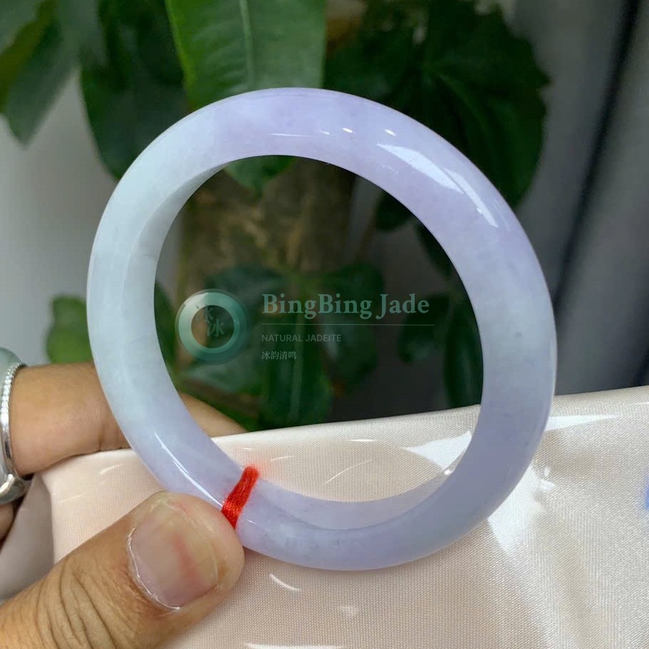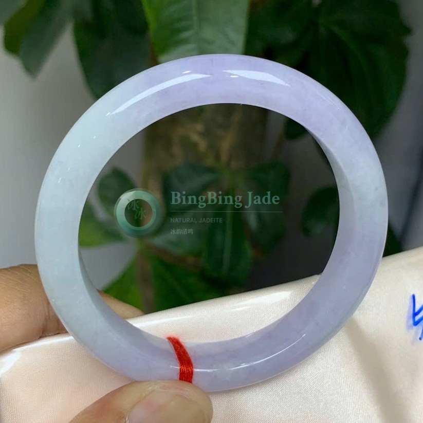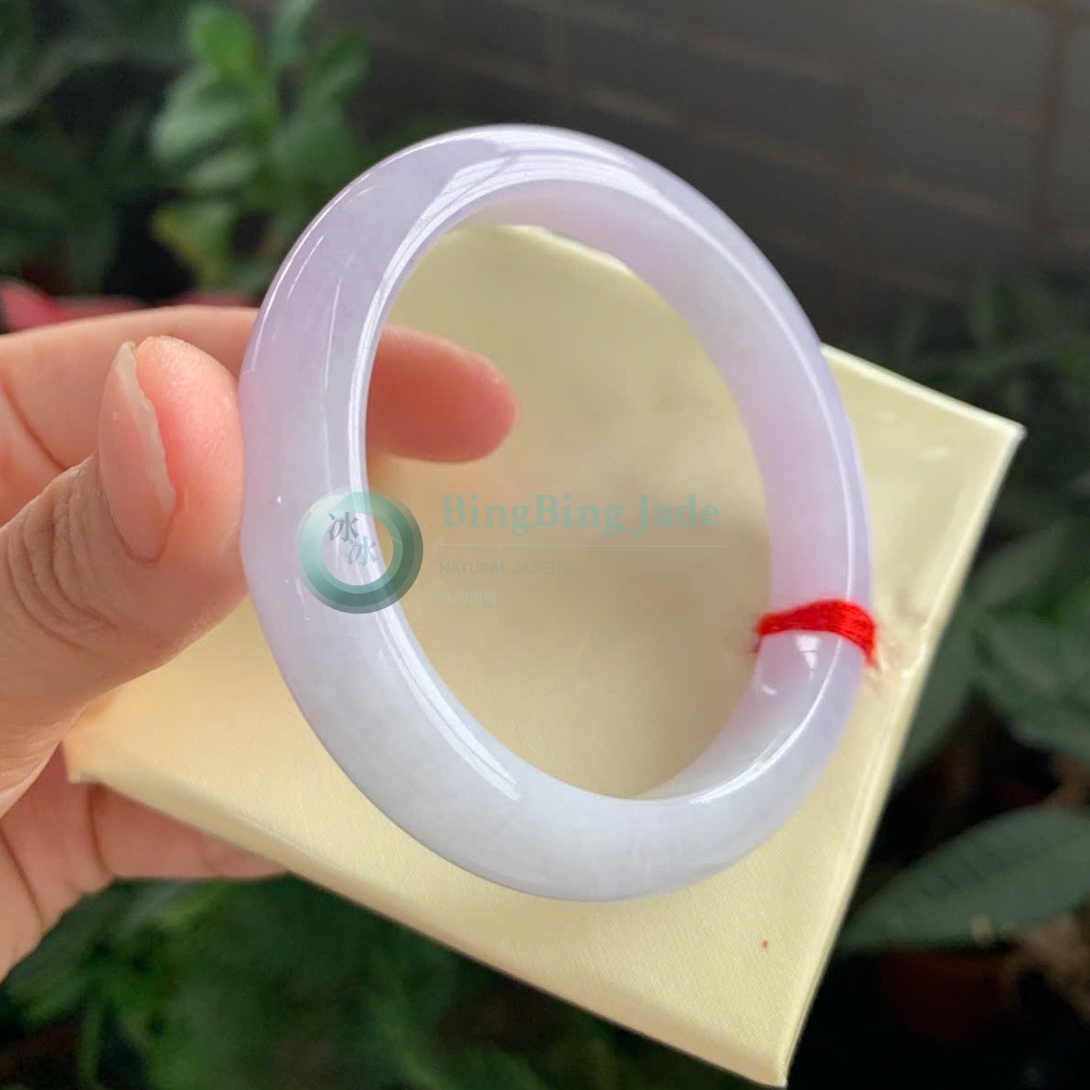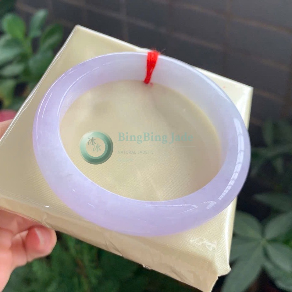 Lavender Mist with Floating Green Kiss — Jadeite Bangle 56.5mm
