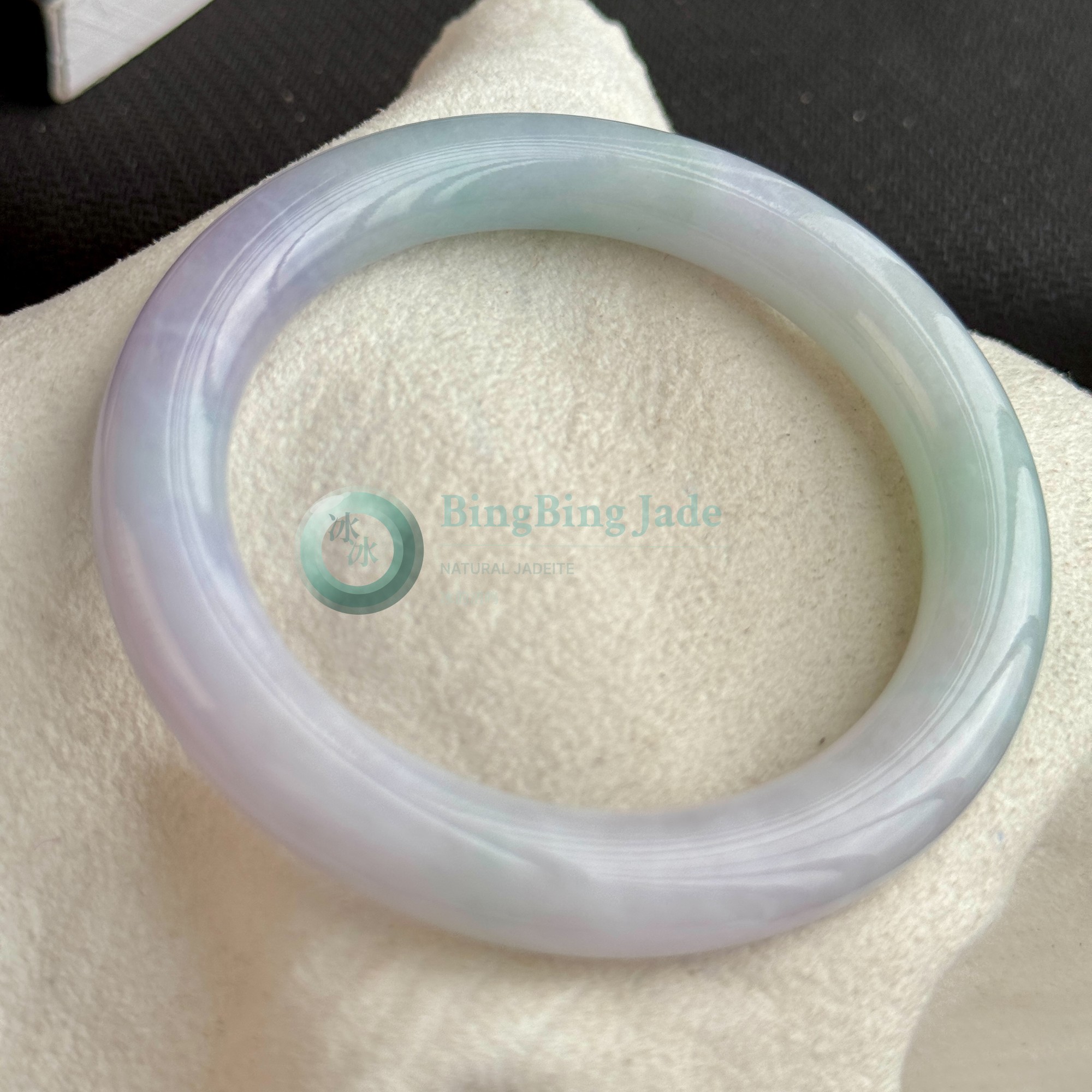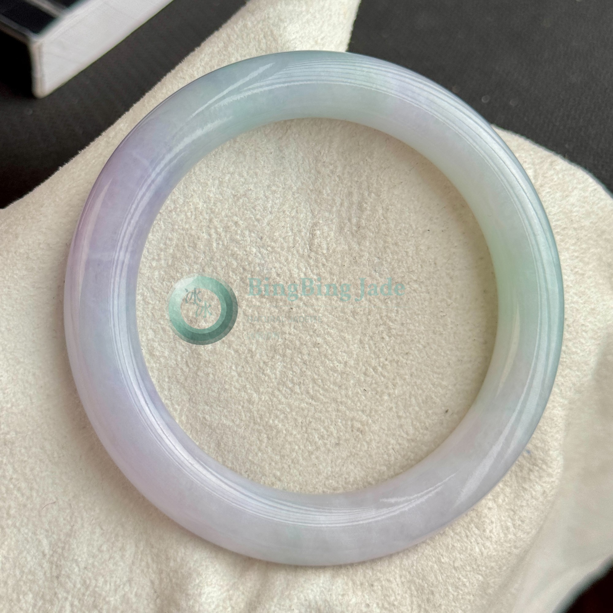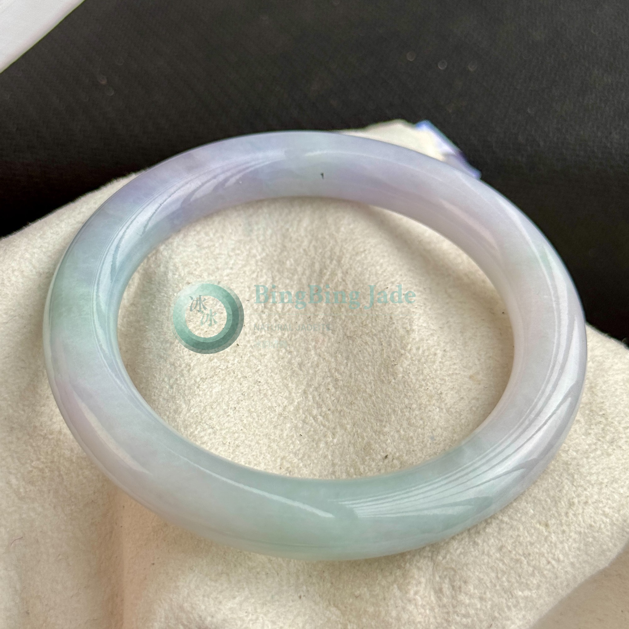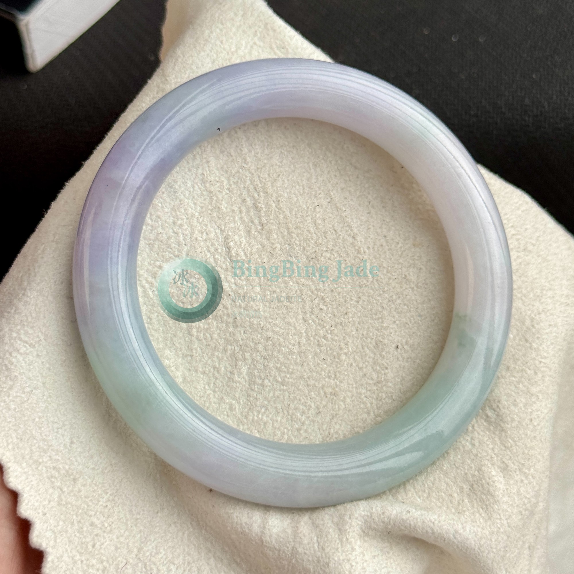 Lavender Mist over Spring Green — Round-Bar Jadeite Bangle 55.5mm