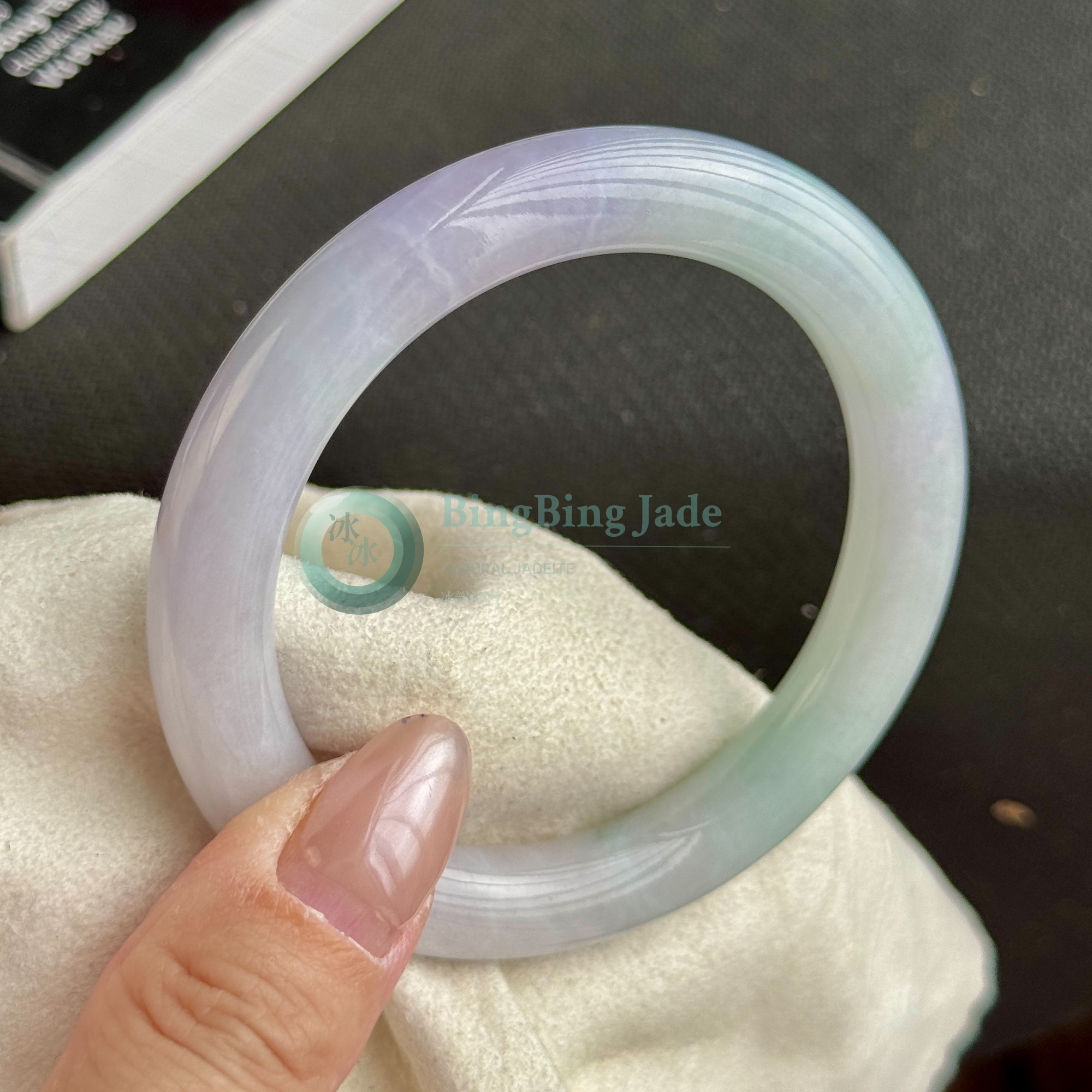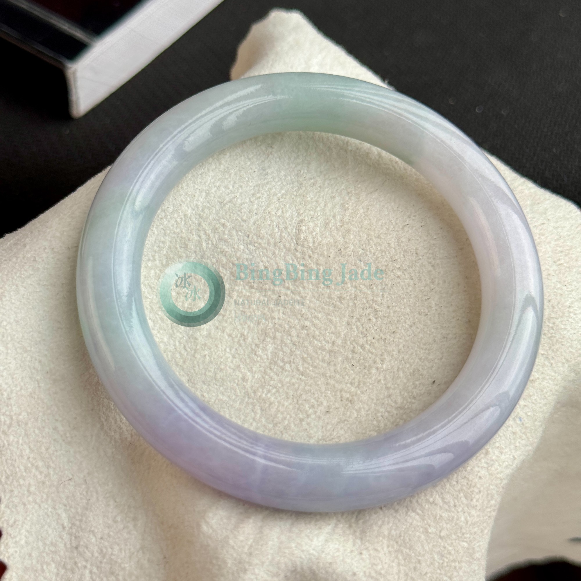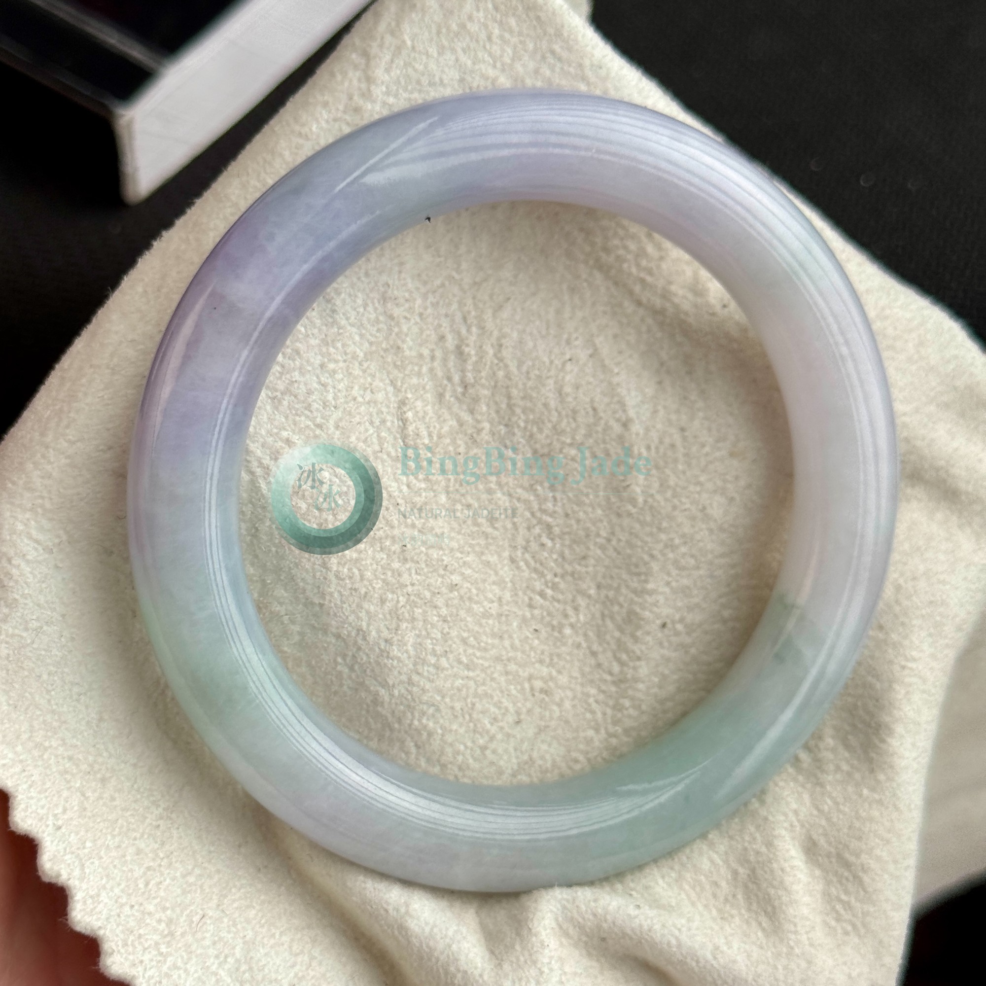 Lavender Mist over Spring Green — Round-Bar Jadeite Bangle 55.5mm