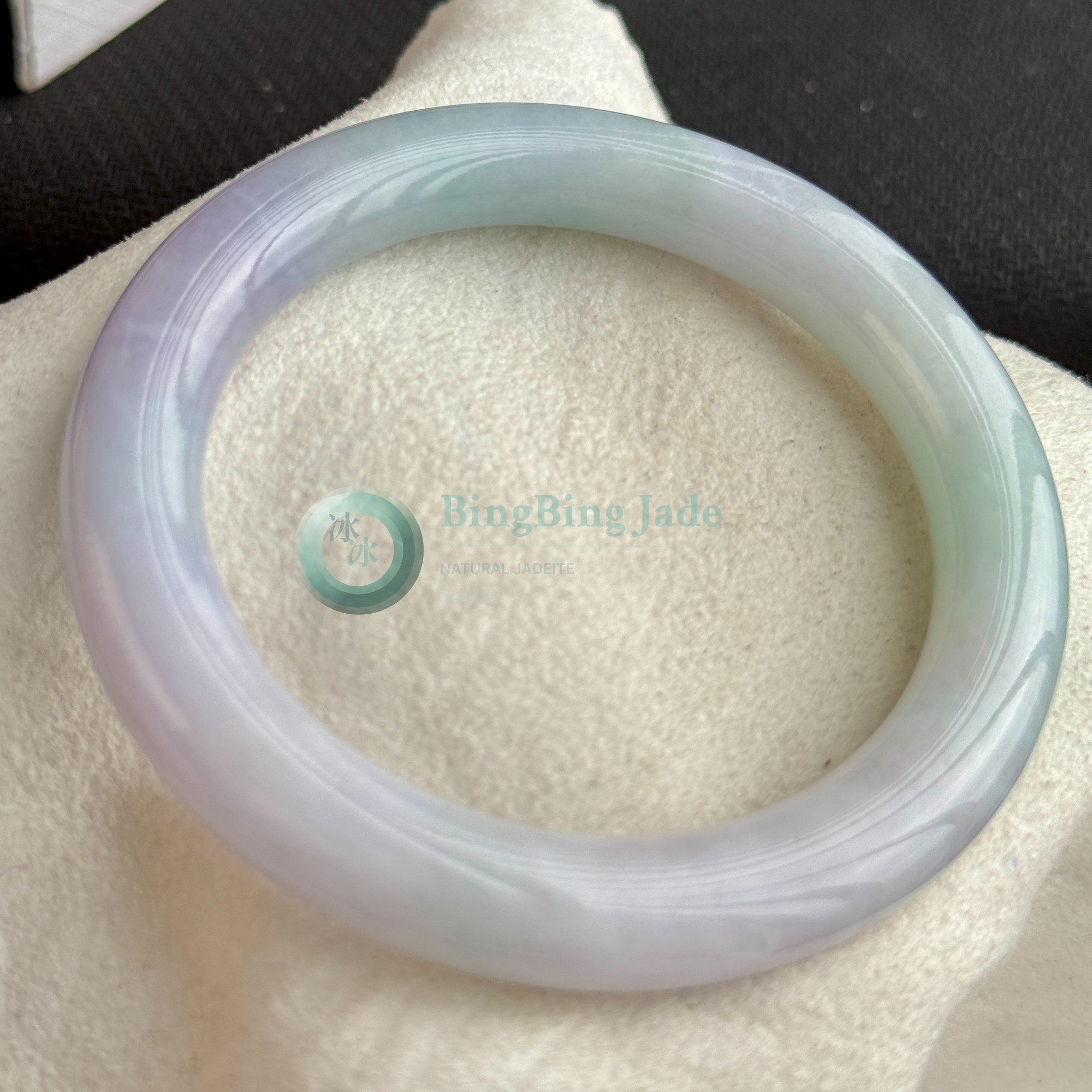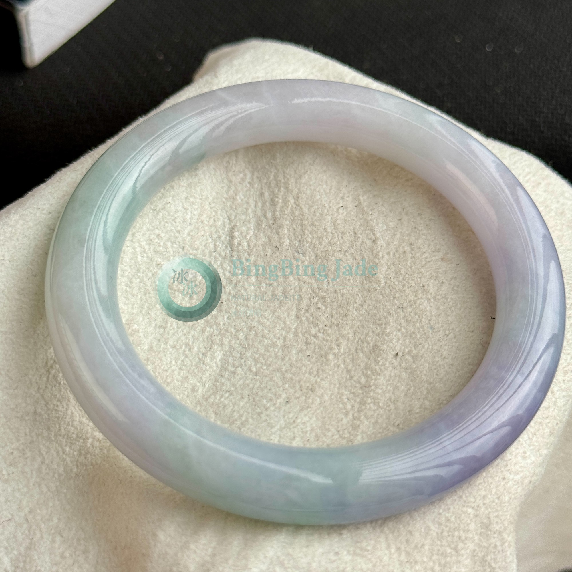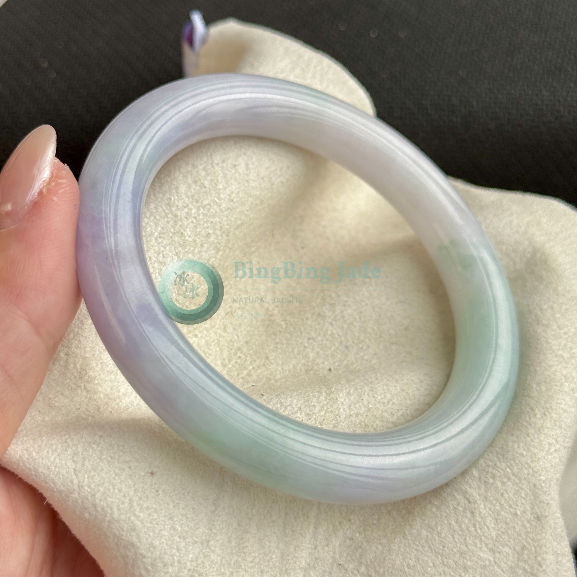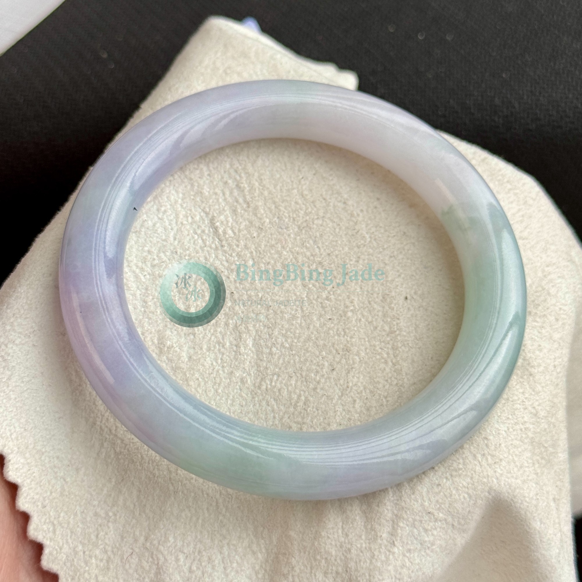 Lavender Mist over Spring Green — Round-Bar Jadeite Bangle 55.5mm