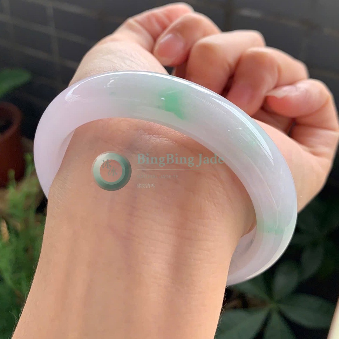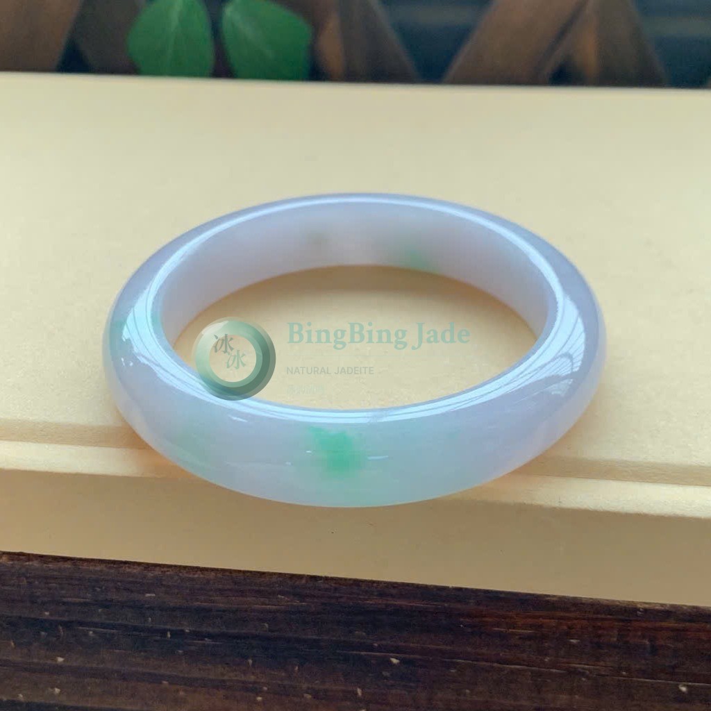 Lavender Mist with Floating Green Kiss — Jadeite Bangle 56.5mm