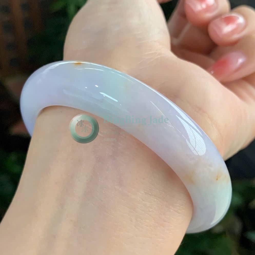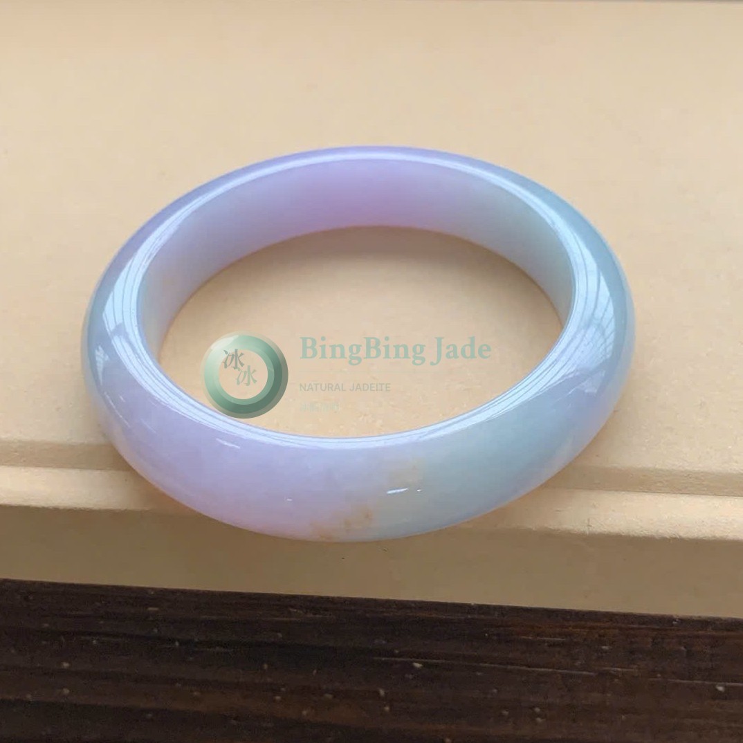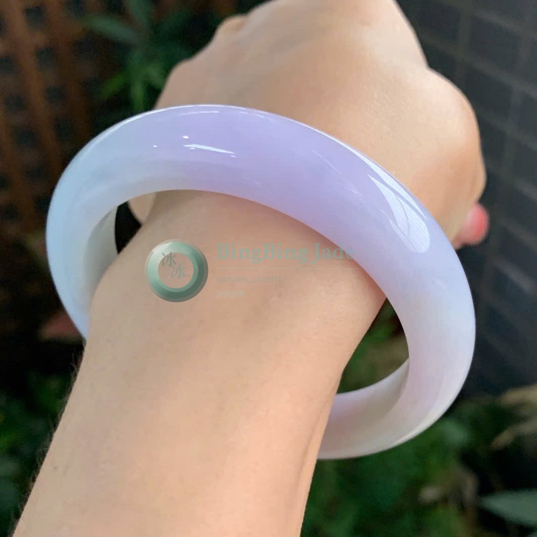 Lavender Mist with Floating Green Kiss — Jadeite Bangle 56.5mm