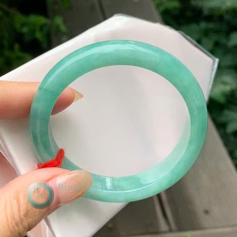 Light Green Glow Jadeite Bangle 52.7mm — Lush Minty Translucence