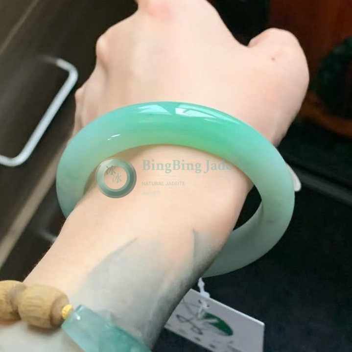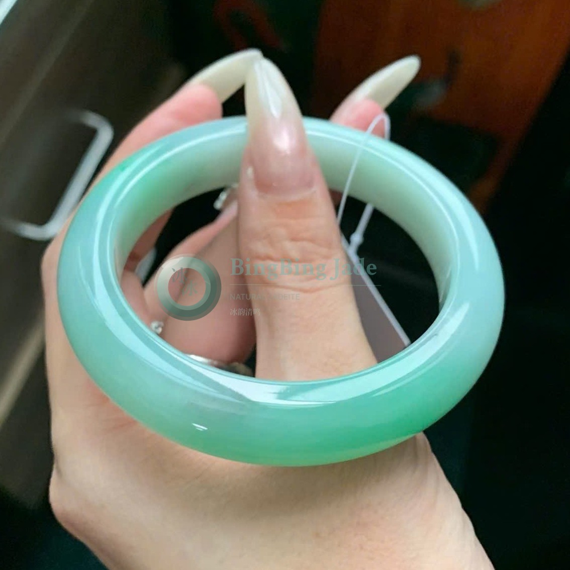 Floating Spring Green Icy Bangle 54mm — Cloud-Washed Emerald on Pristine Glass
