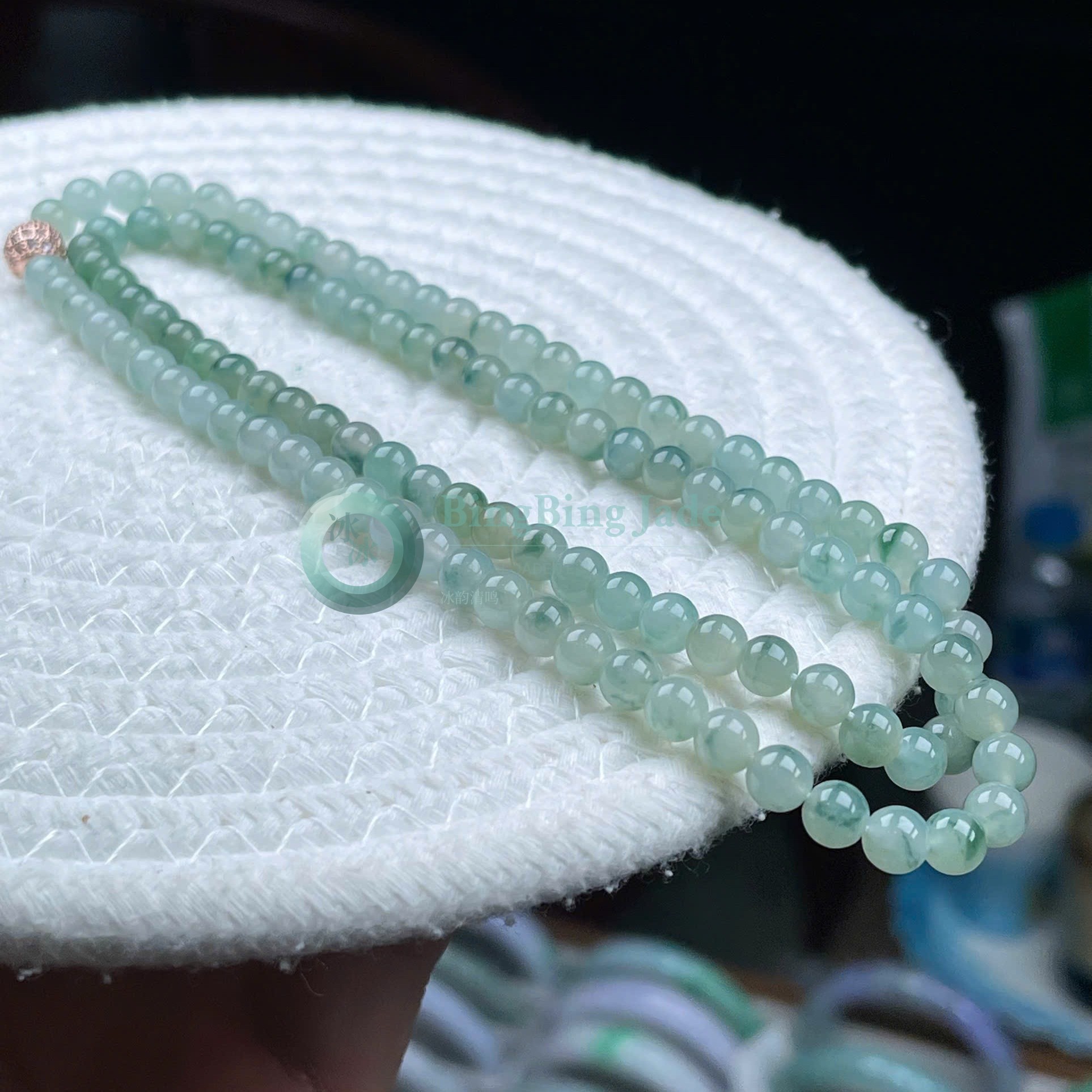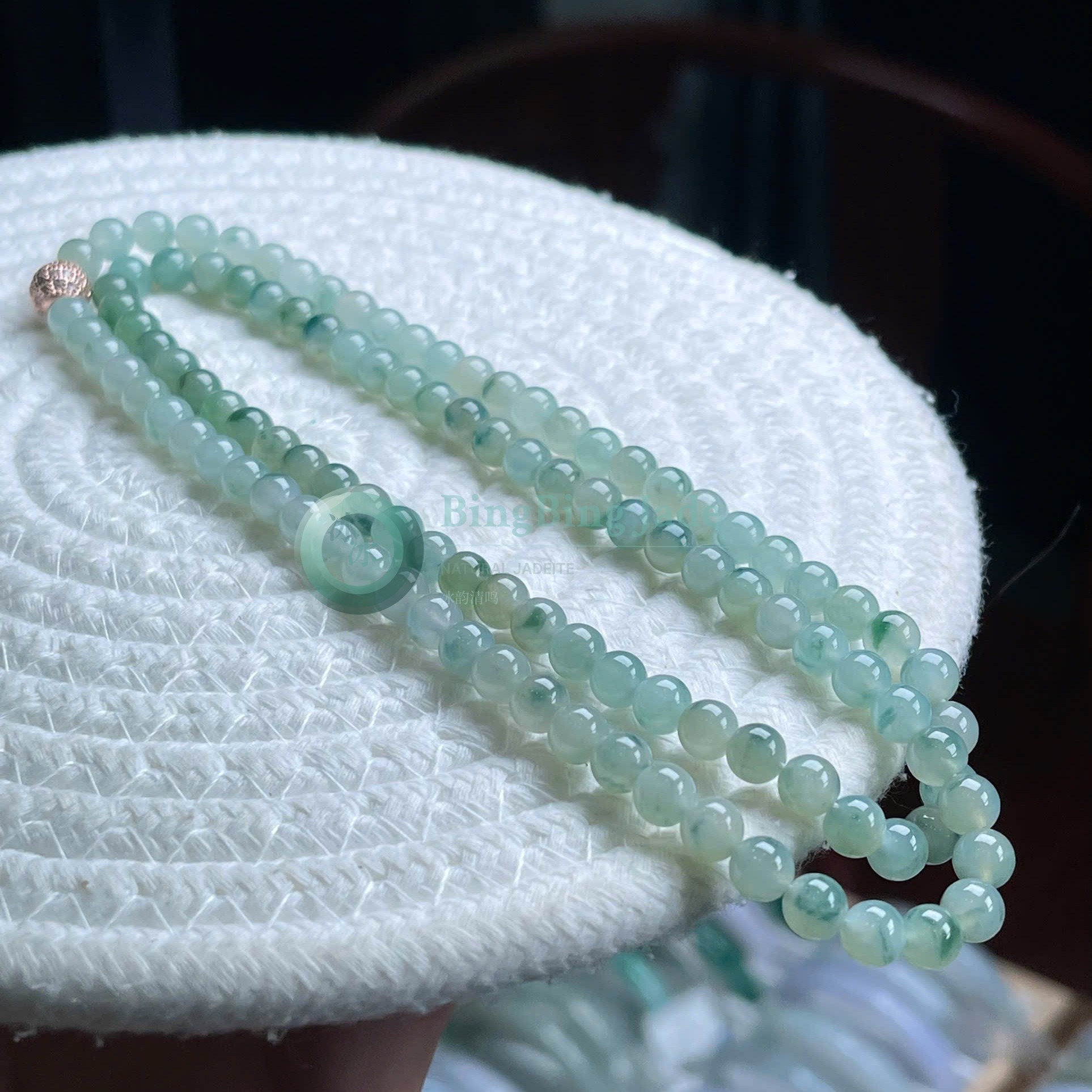 Misty Spring Waters Jadeite Bead Necklace — 6mm Floating Green