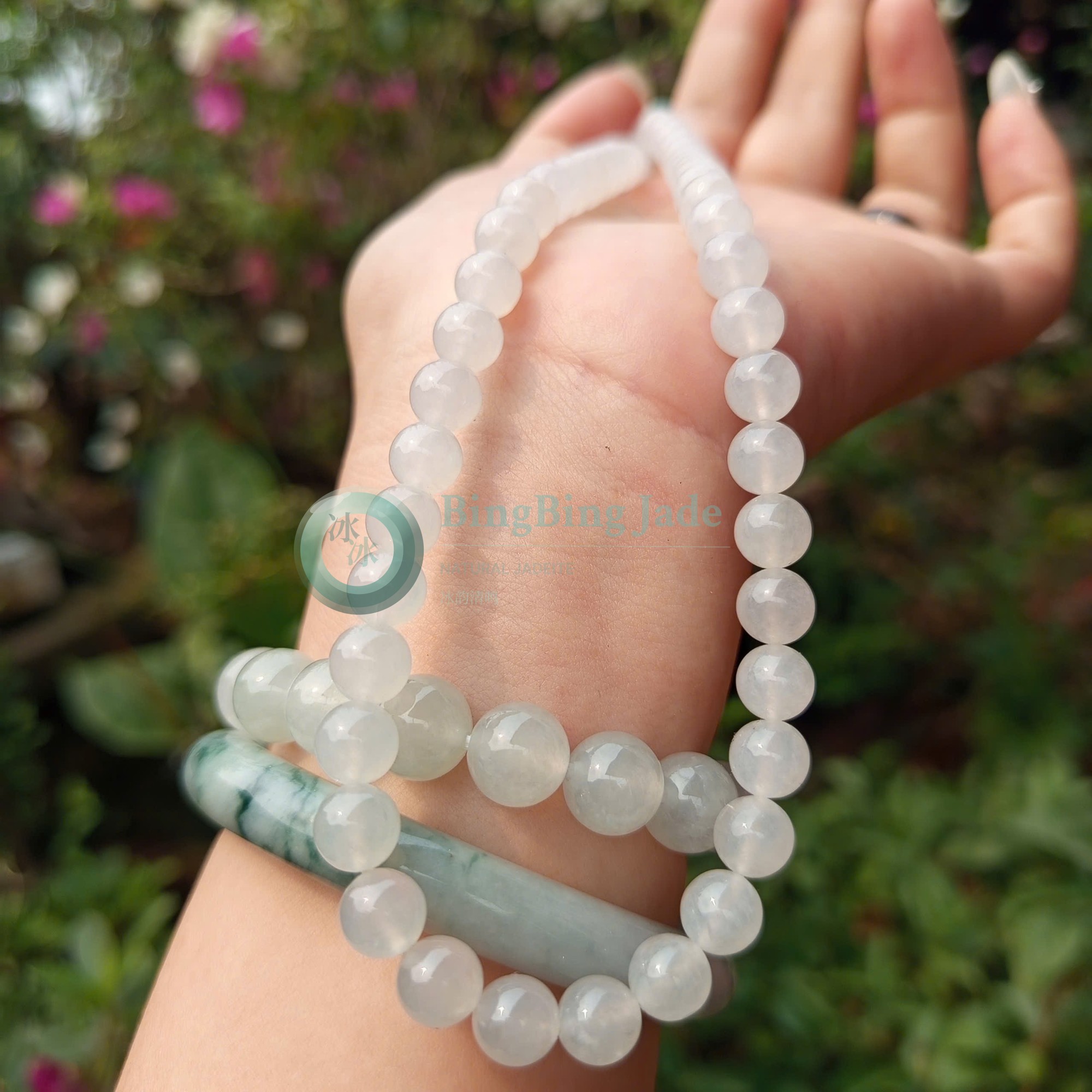 Icy White Jade Long Beaded Strand — Pure Moonlight Translucency, 7.9mm