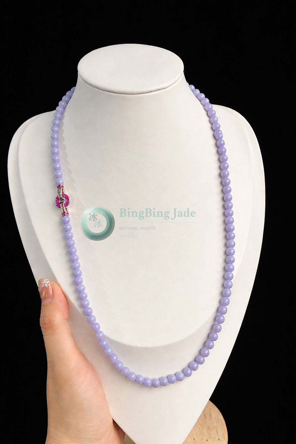 Violet Mist Lavender with Pink Hue Jadeite Bead Necklace — 6mm Strand