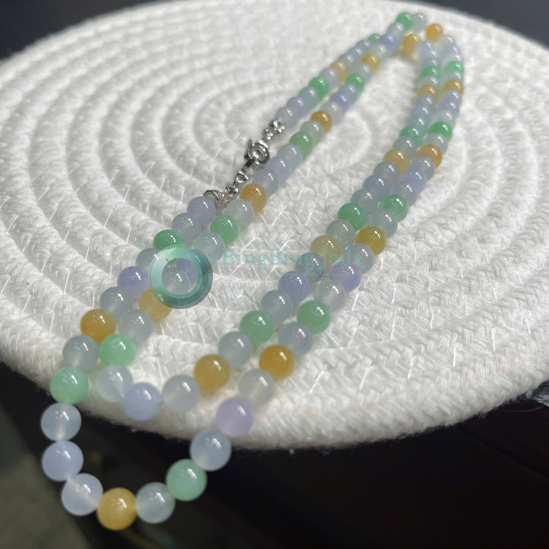 Pastel Candy Multicolor Jadeite Bead Necklace — Lavender, Green, Yellow & Icy White
