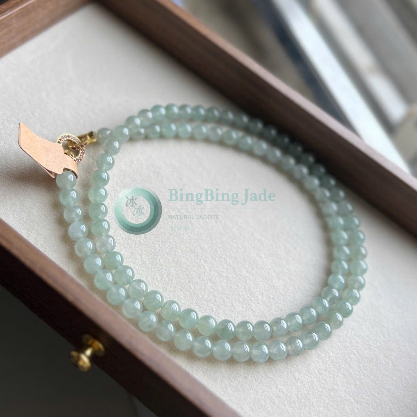 Misty Spring Waters Jadeite Bead Necklace — 6mm Floating Green