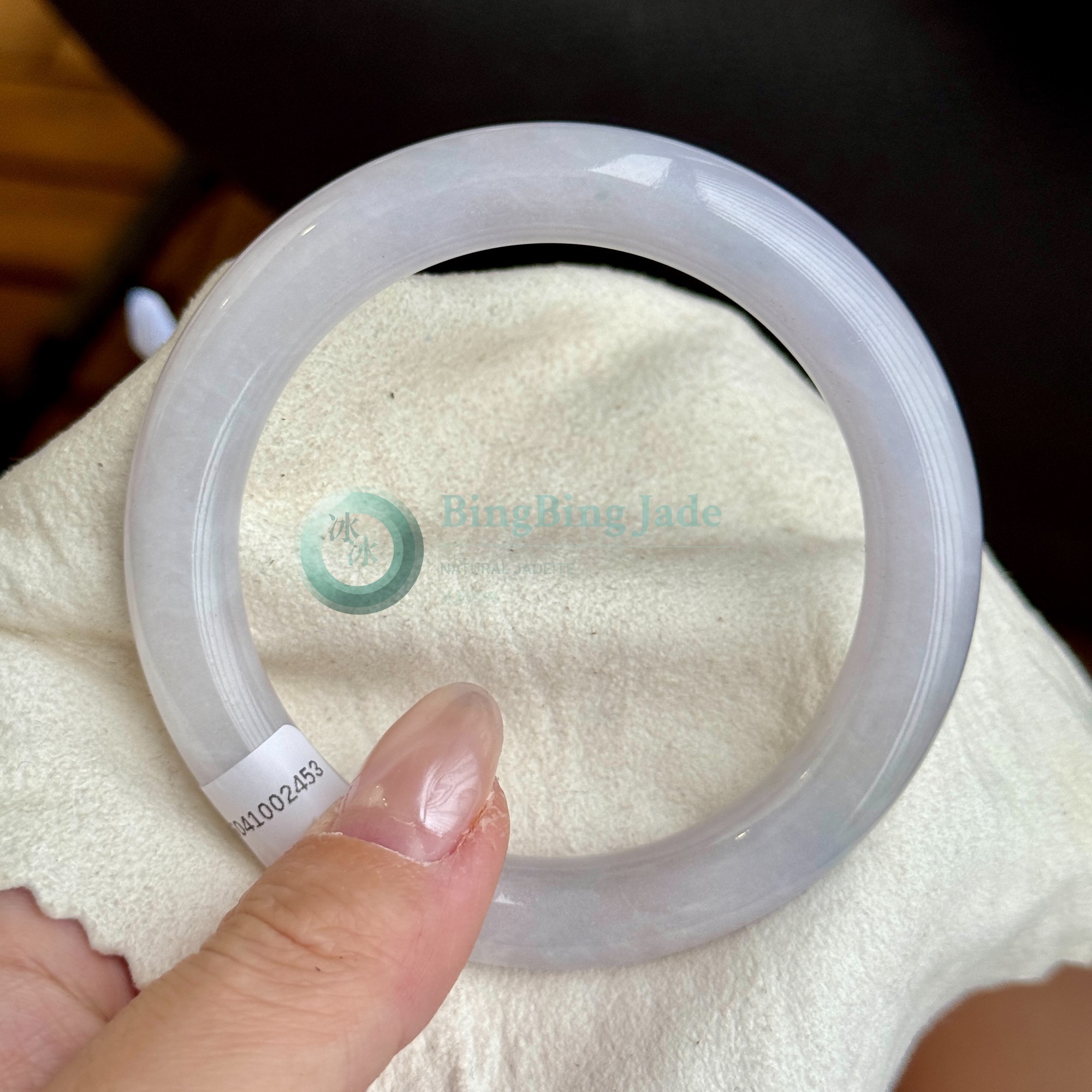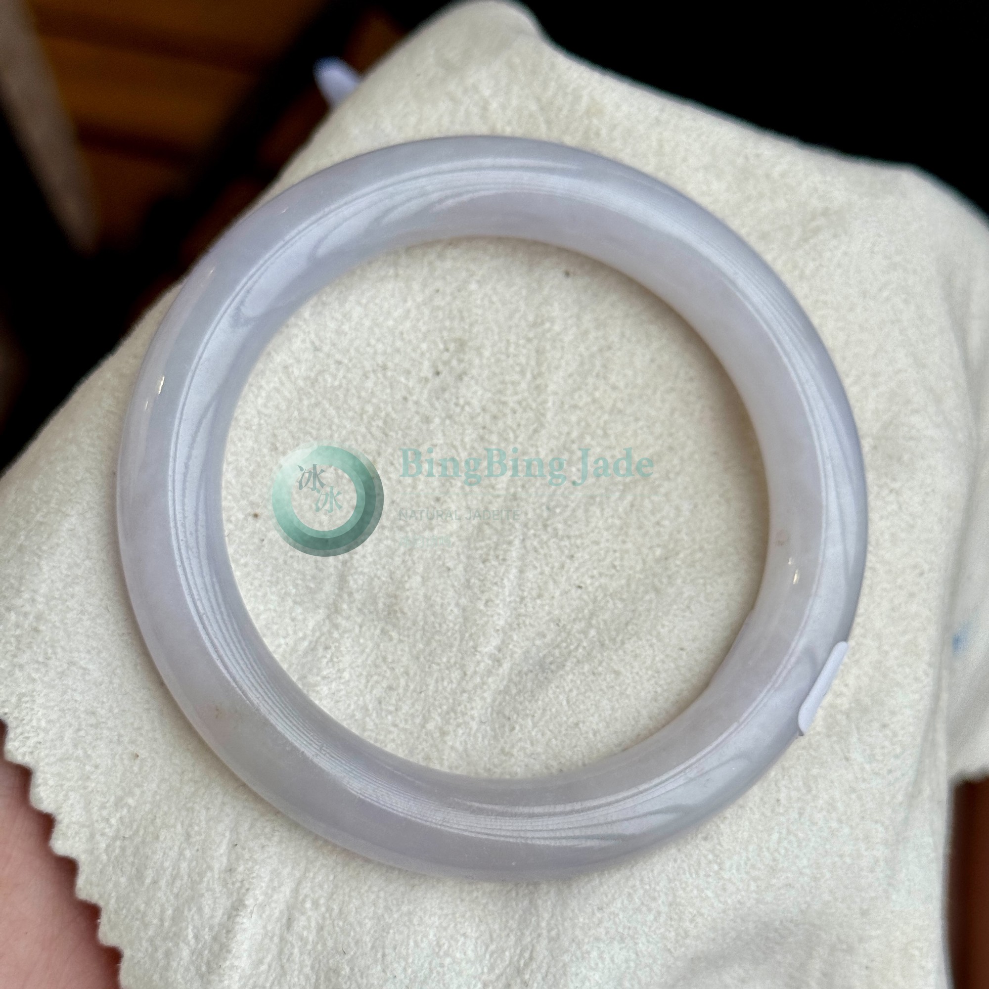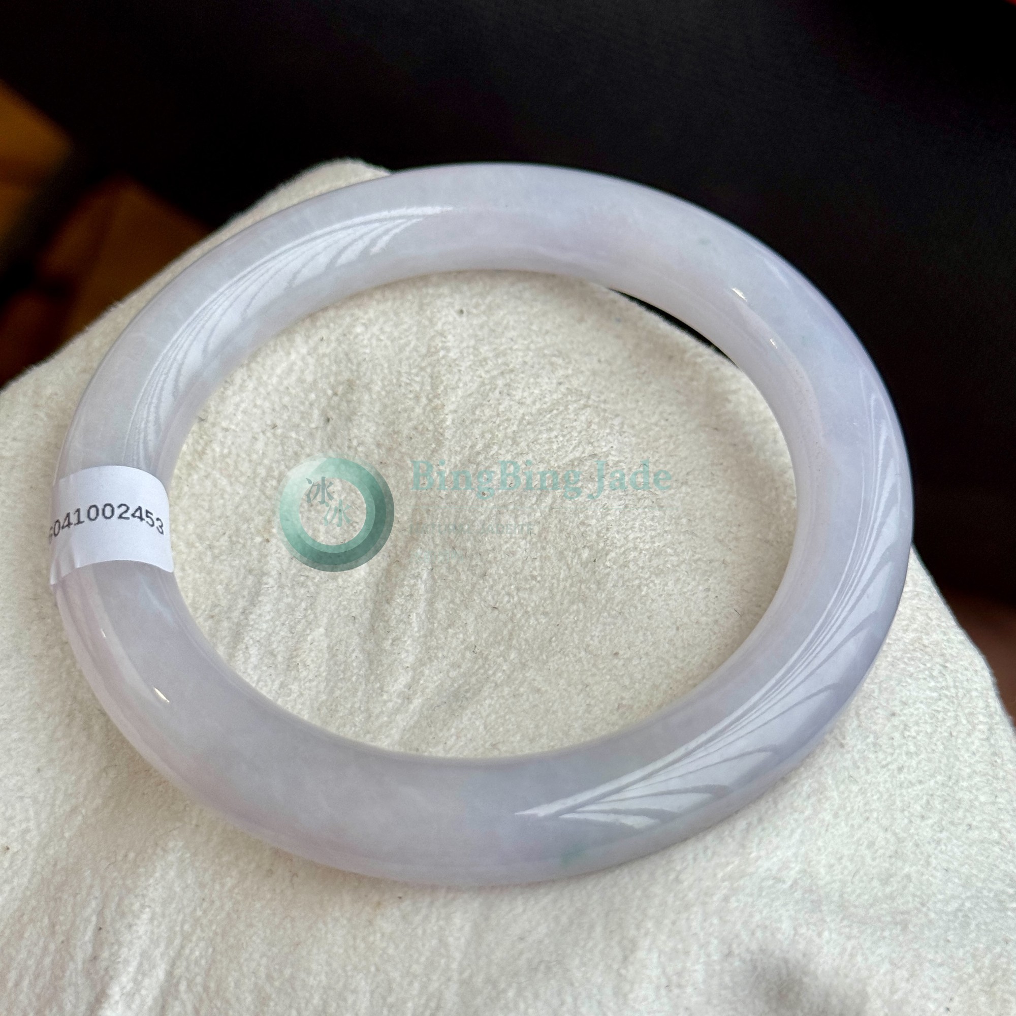 Pale Lilac Carved Jelly Bangle 55mm — Whispered Lavender with Feathered Motif