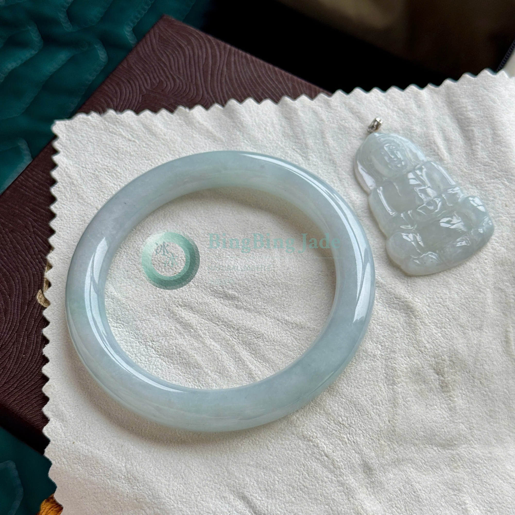 Pastel Blue Celadon Jadeite Bangle 55.5mm