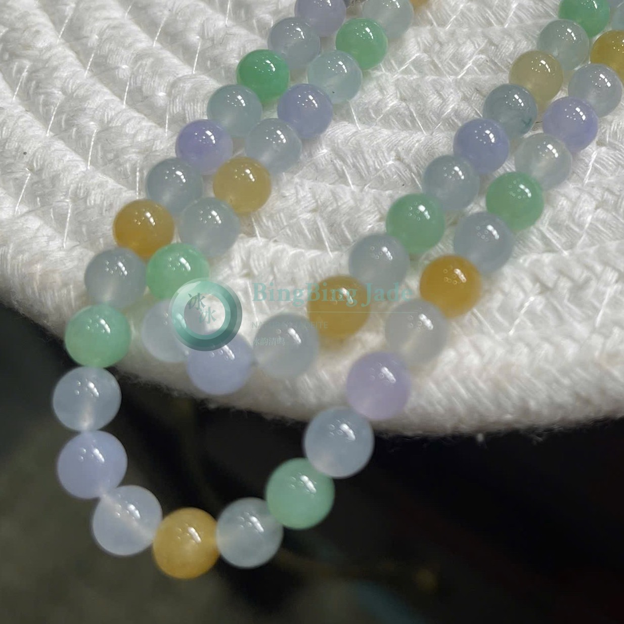 Pastel Candy Multicolor Jadeite Bead Necklace — Lavender, Green, Yellow & Icy White