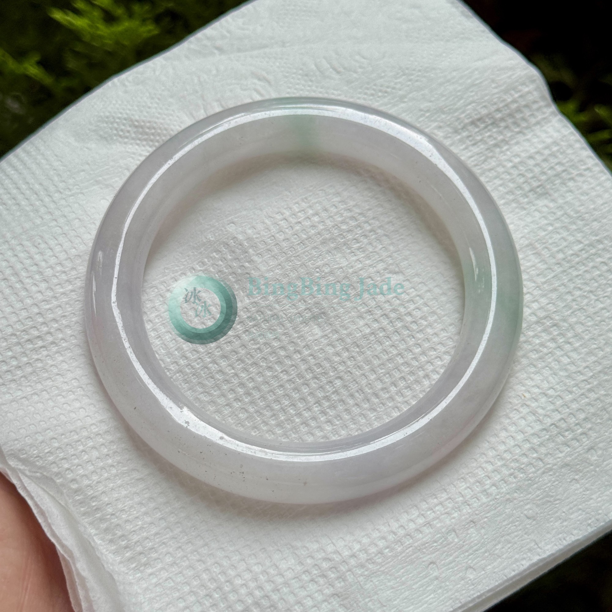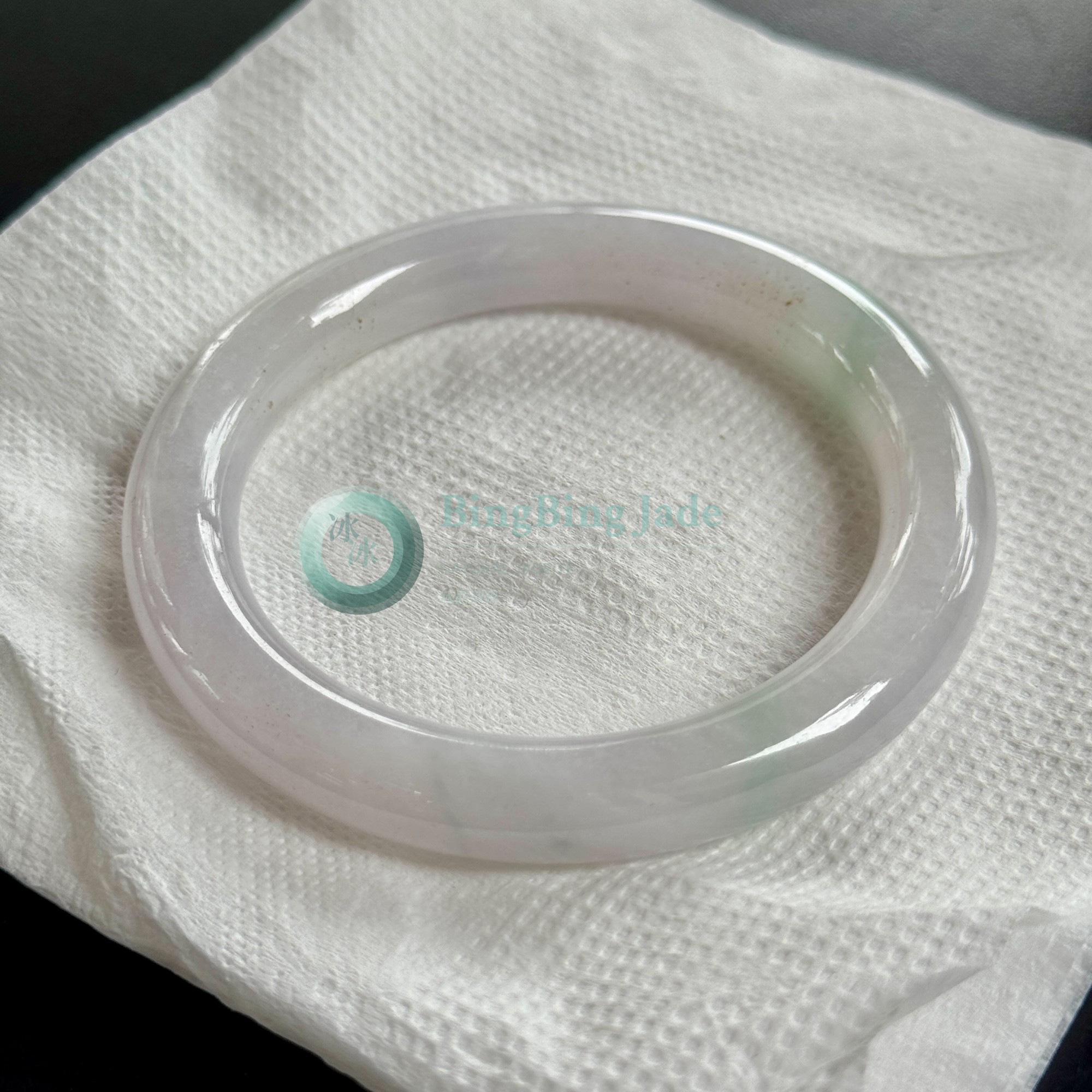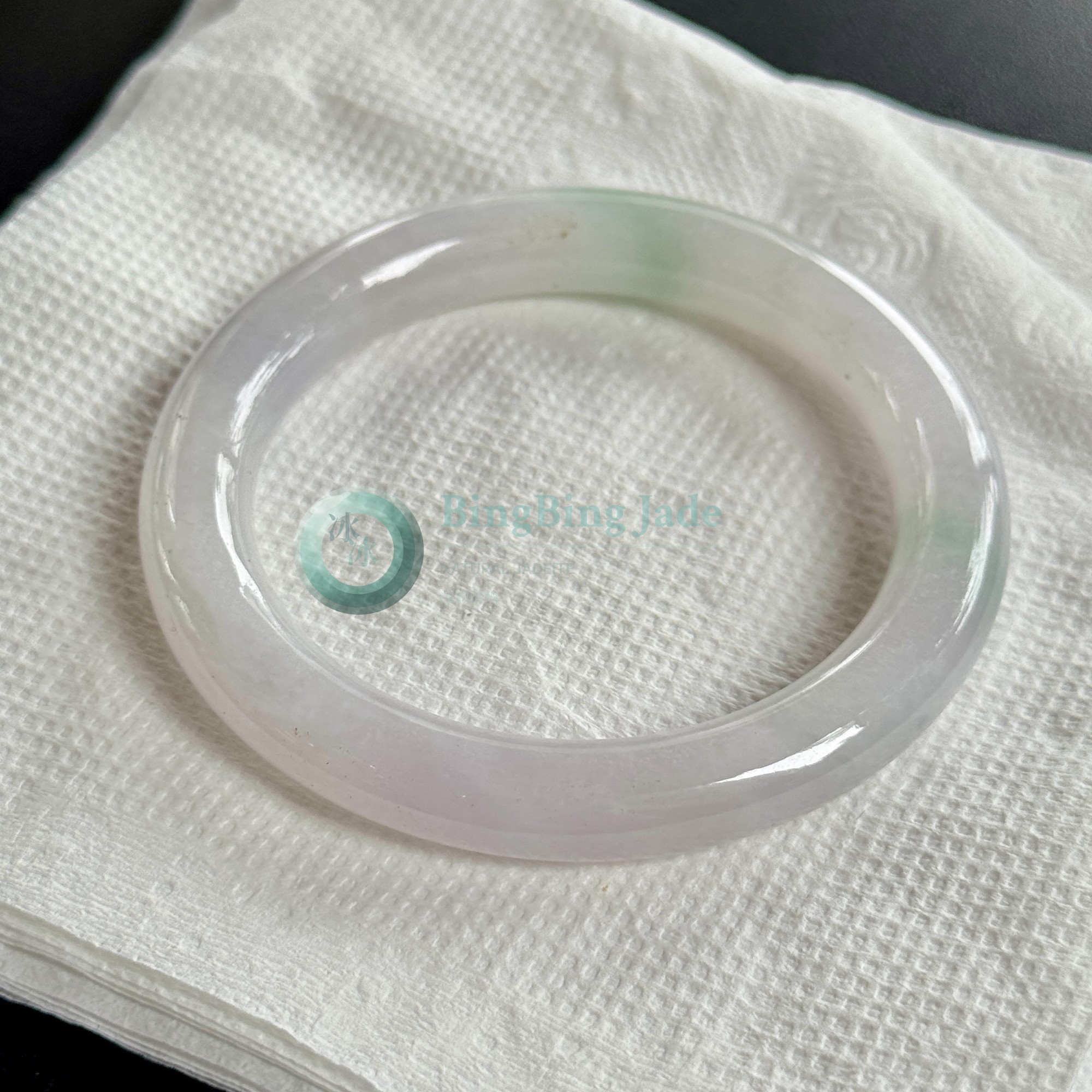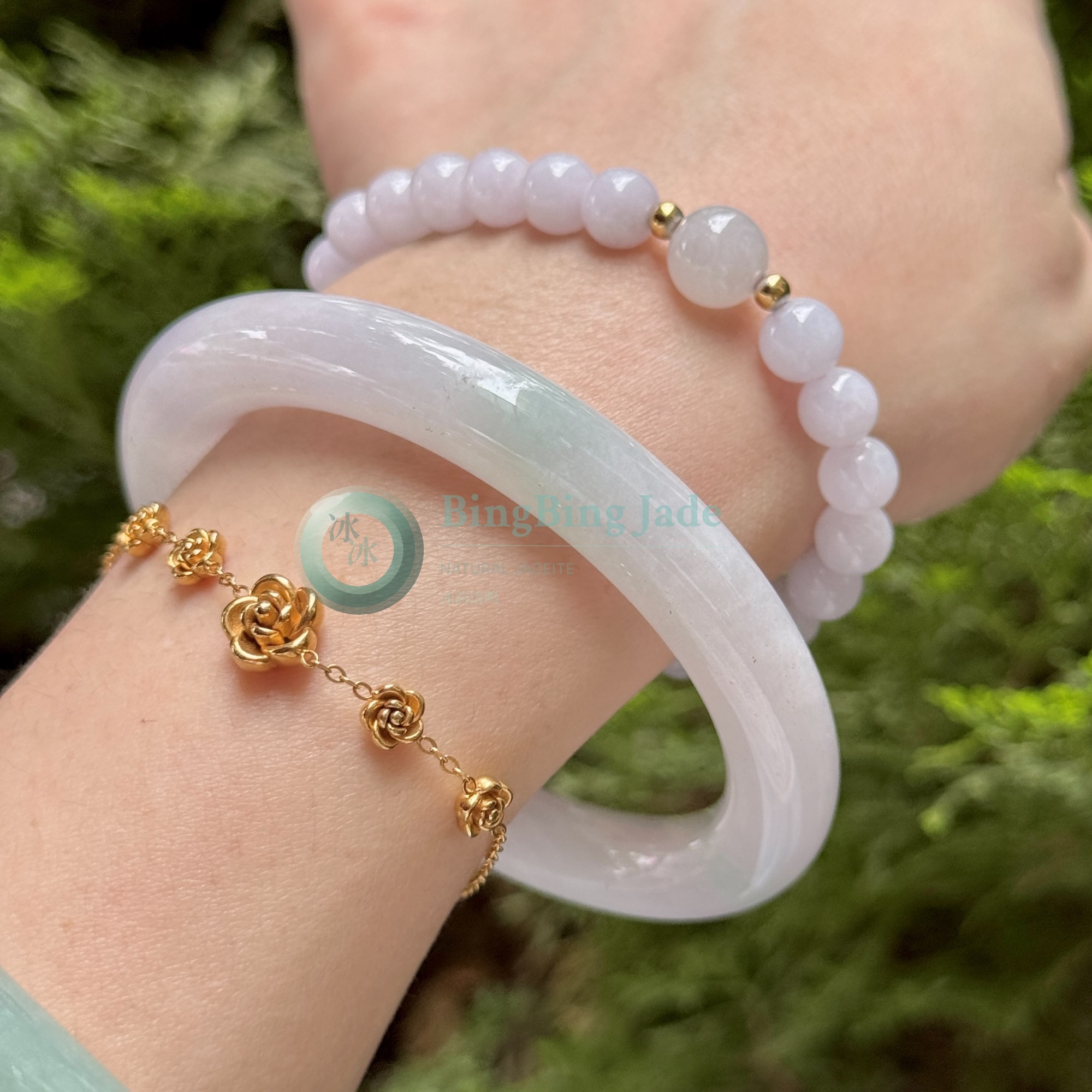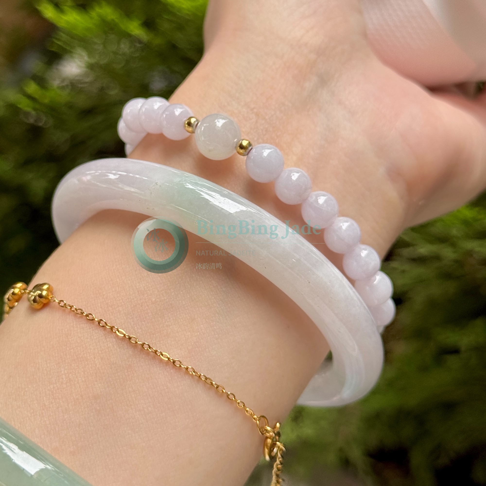 Pastel Rose Mist Icy Jadeite Bangle 54mm — Beaded Strand Combo