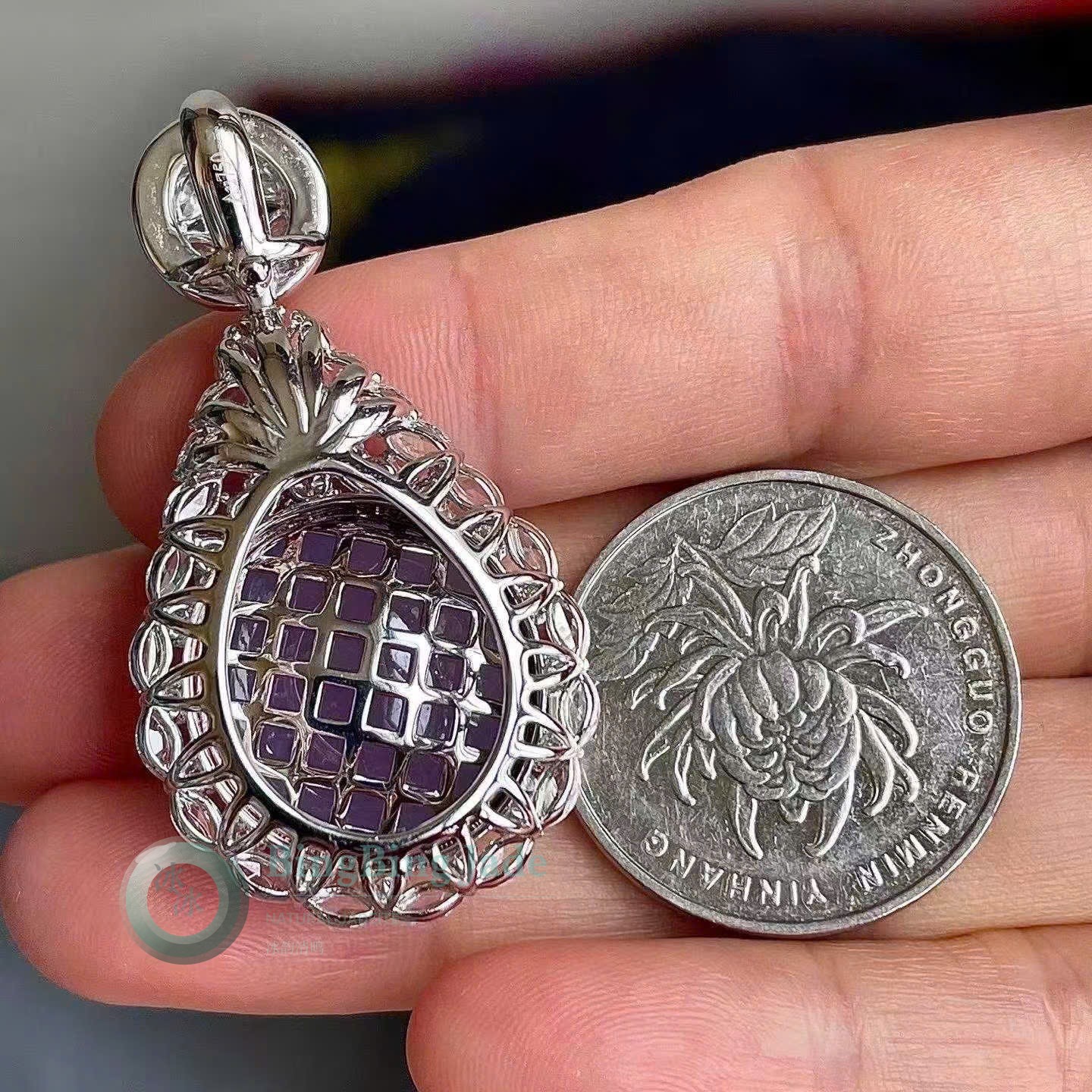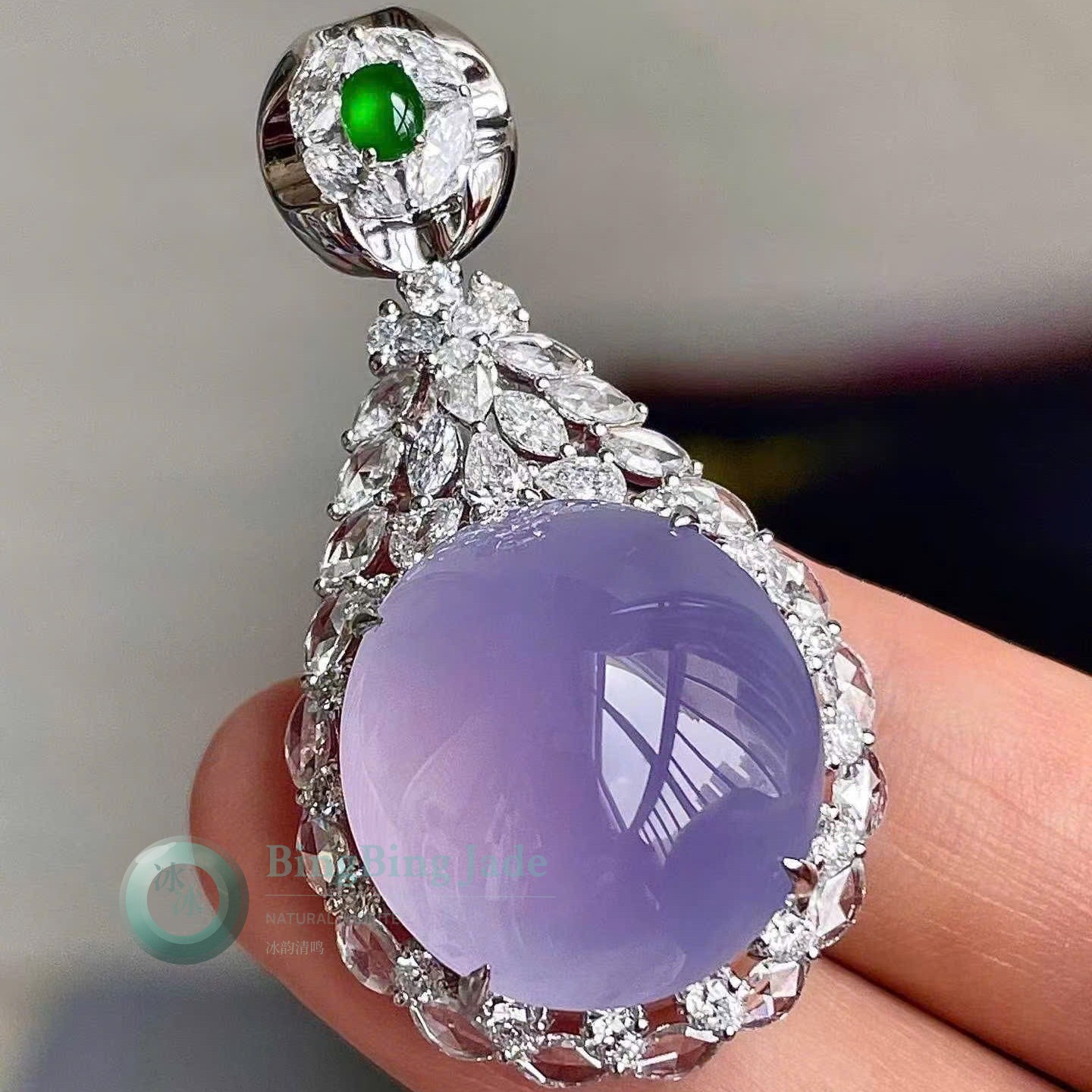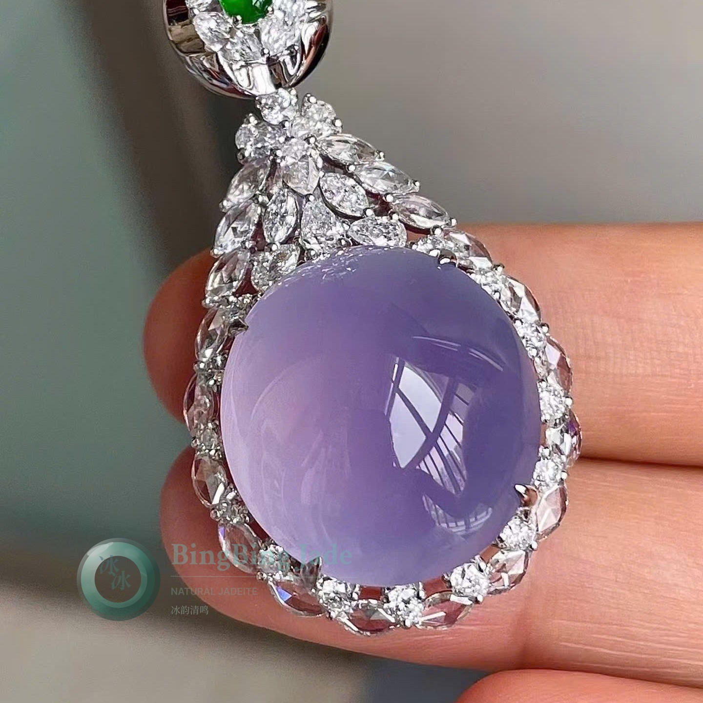 Pigeon Egg Violet Cabochon Pendant with Imperial Green Accent