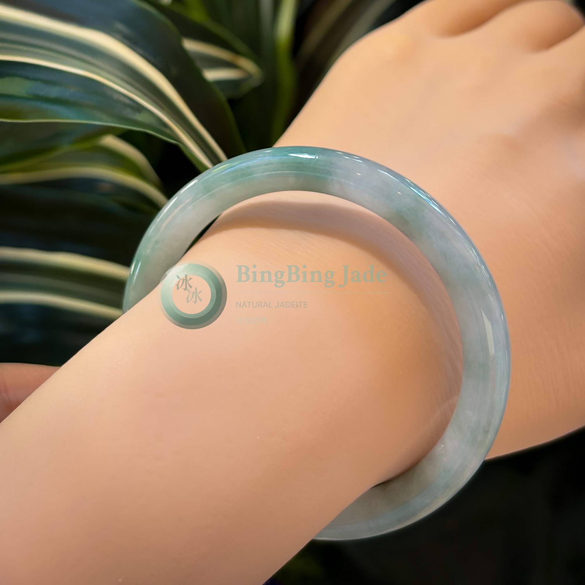 Icy Floating Garden — High Icy/Glassy Tier Jadeite Bangle 57.6mm